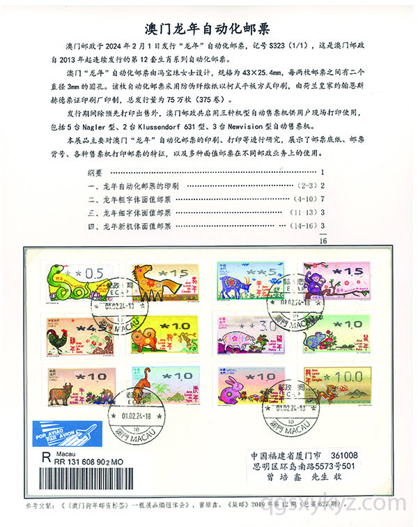 澳门Newvision版龙年生肖电子邮票在邮政业务上的使用