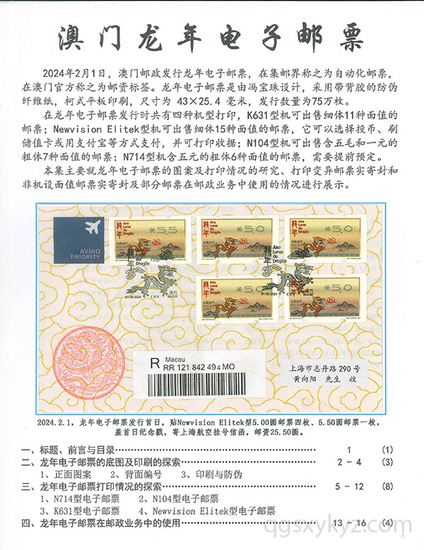 澳门Nagler、Klussendorf版龙年生肖电子邮票在邮政业务上的应用