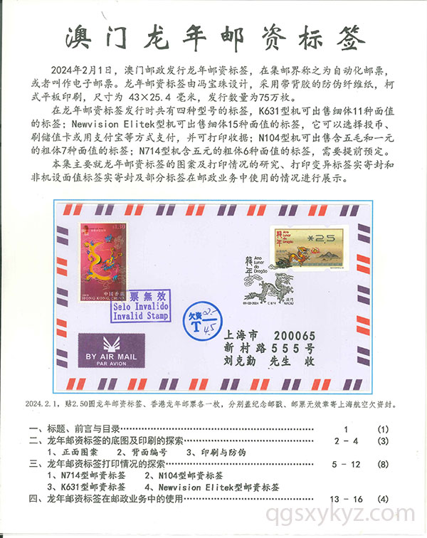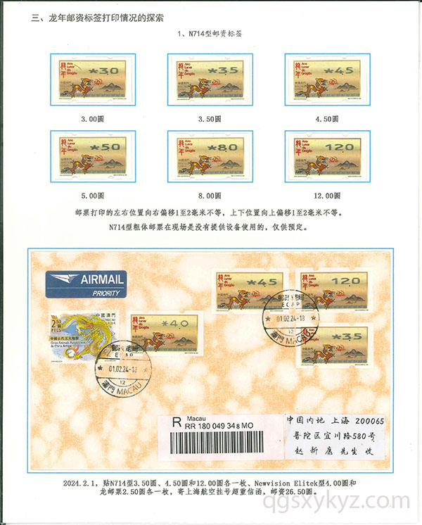 澳门龙年邮资标签