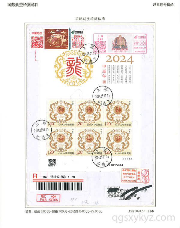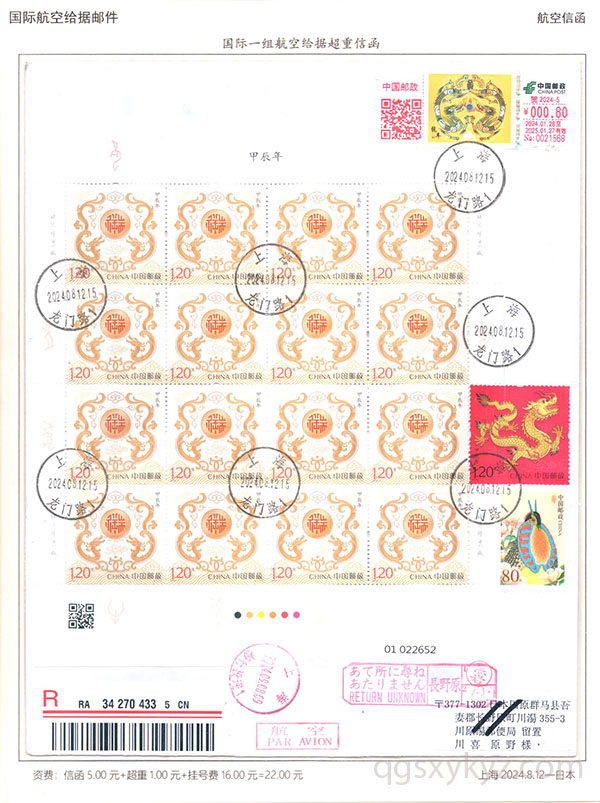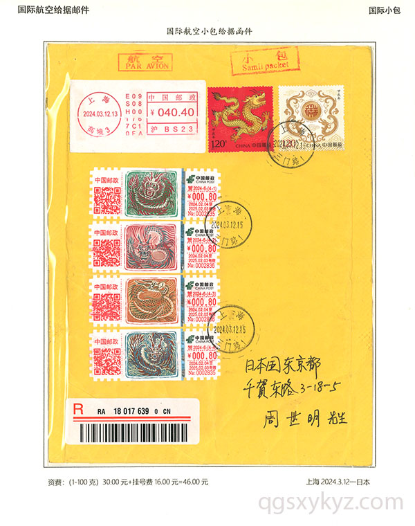 甲辰龙年邮资机自助型标签应用(国际给据邮件)