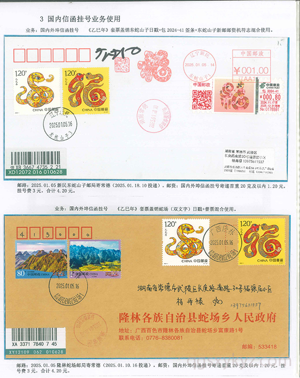 《乙巳年》邮票的邮政业务的使用