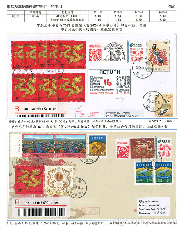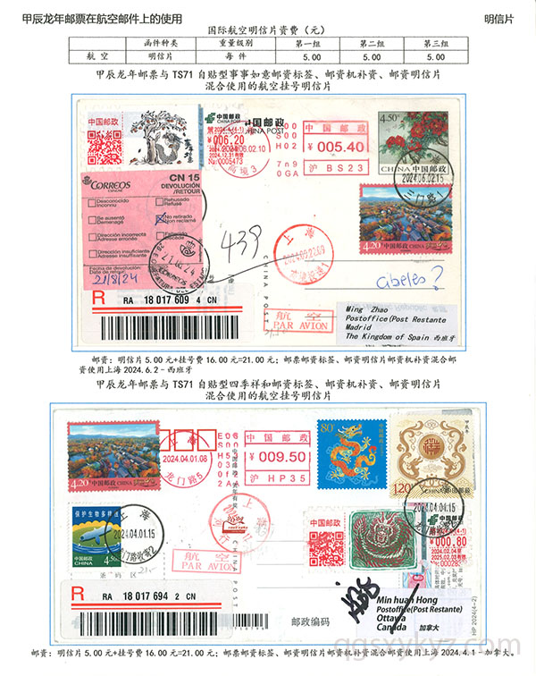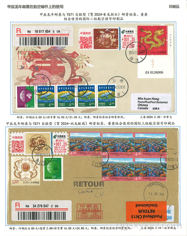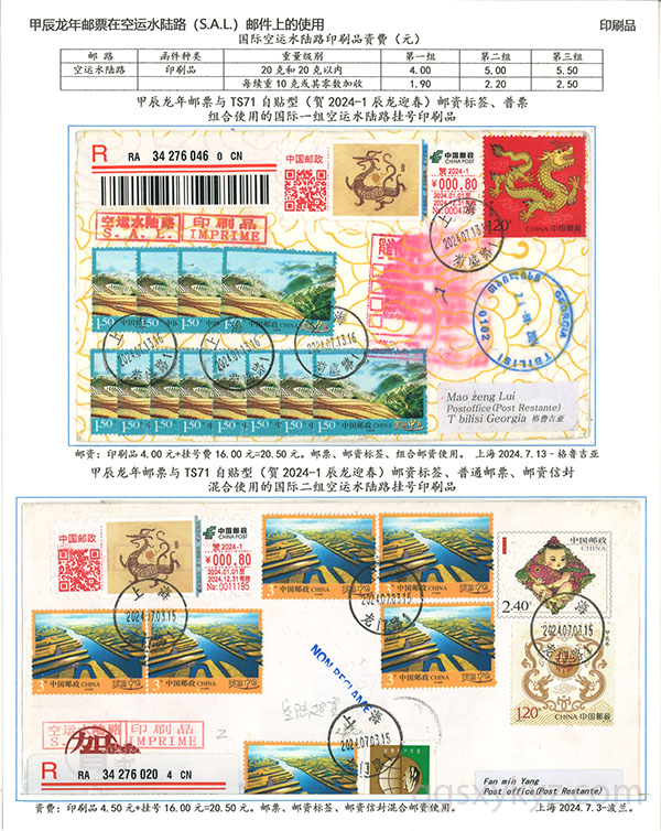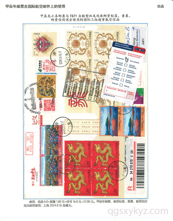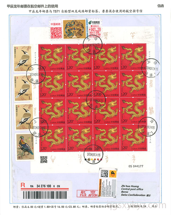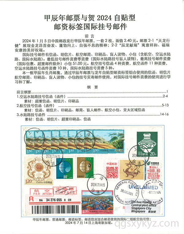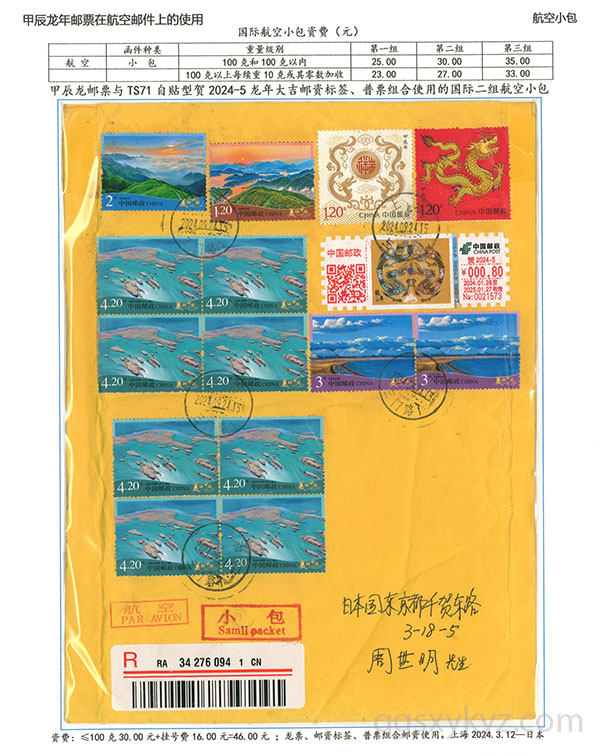 甲辰年邮票与贺2024自贴型邮资标签国际挂号邮件
