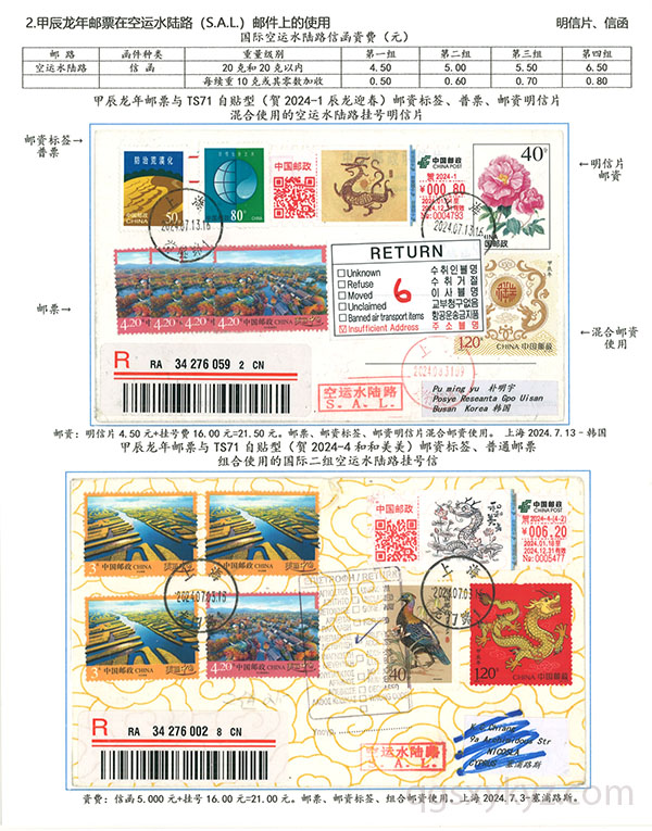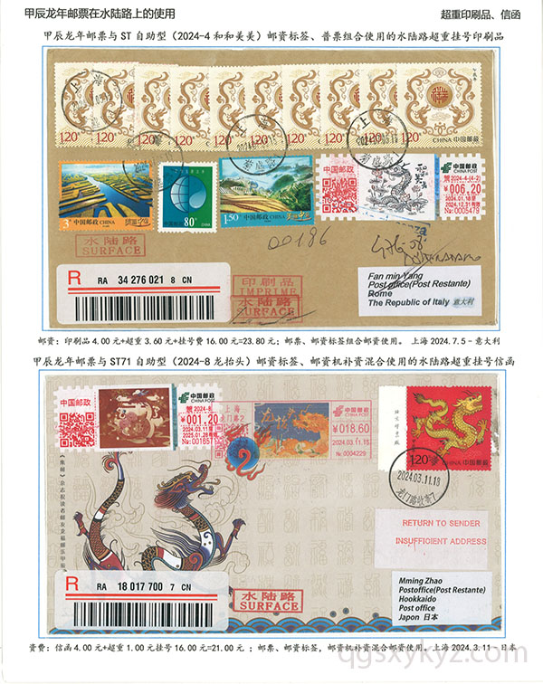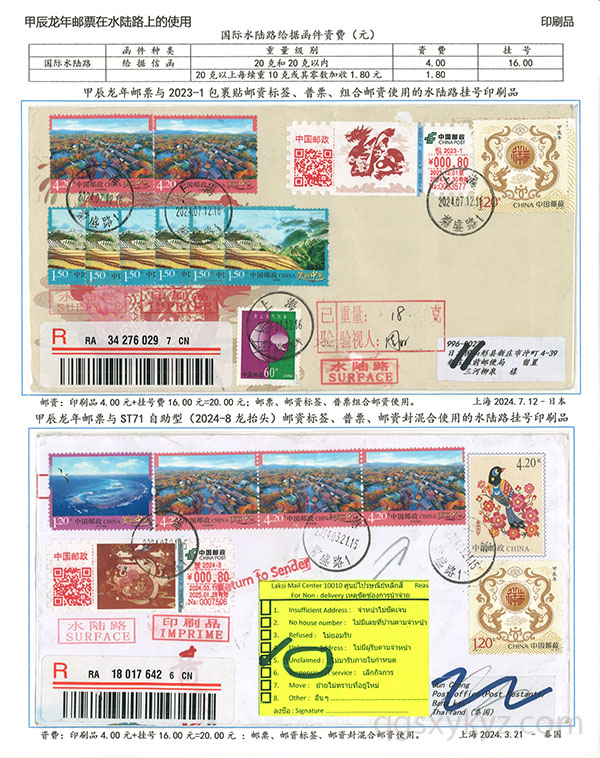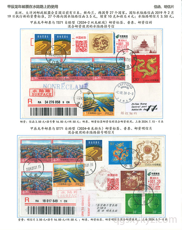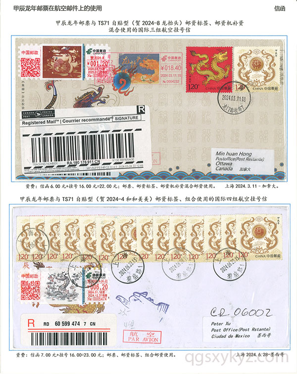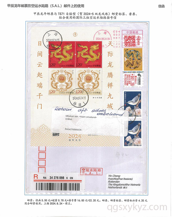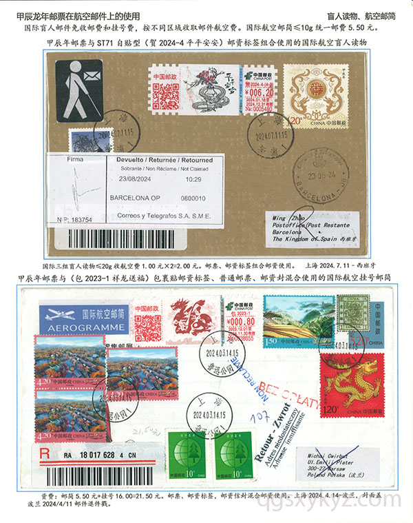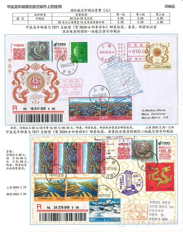 甲辰年邮票与贺2024自贴型邮资标签国际挂号邮件