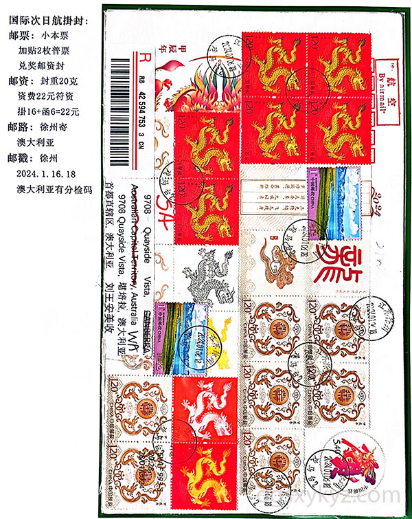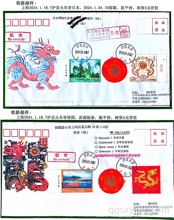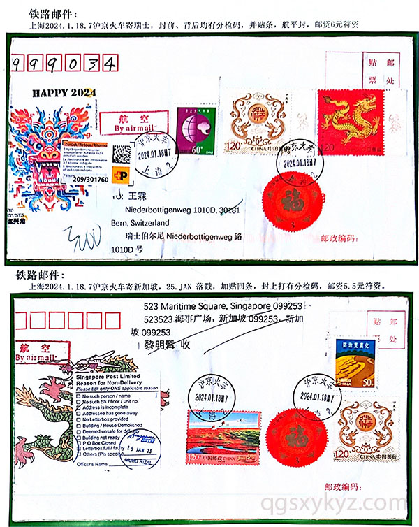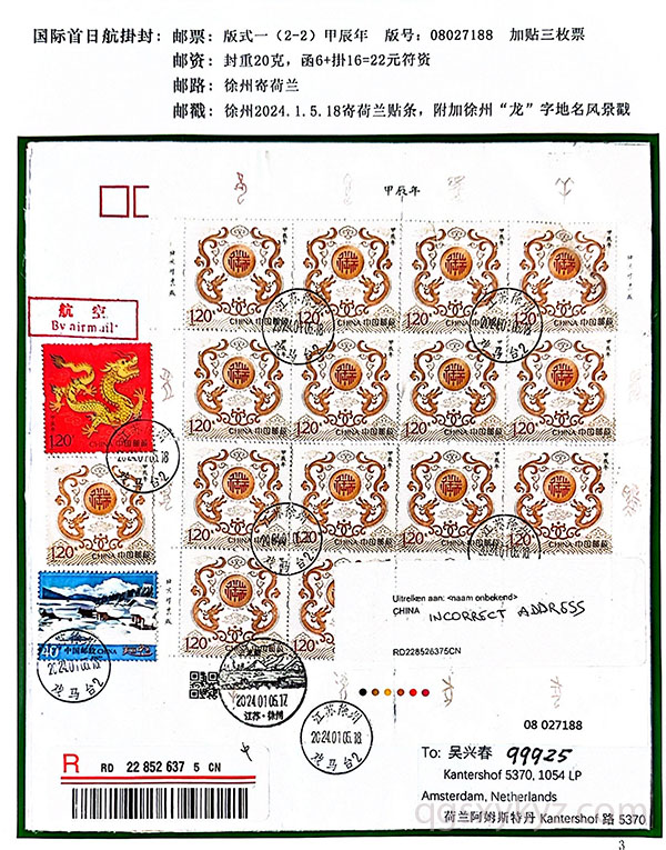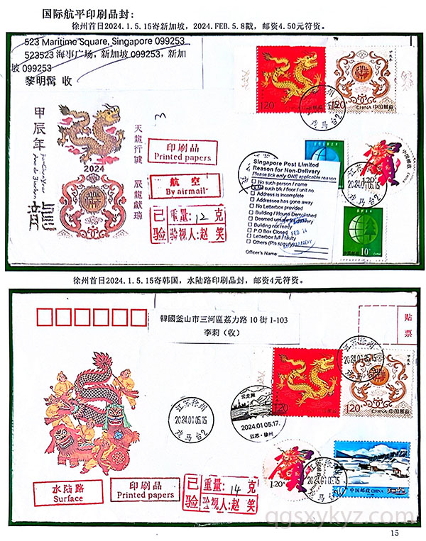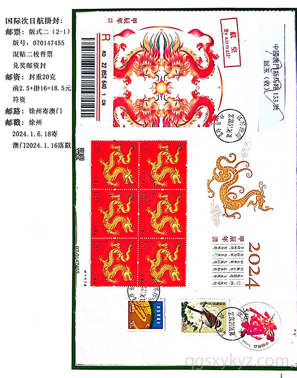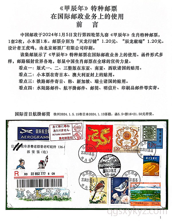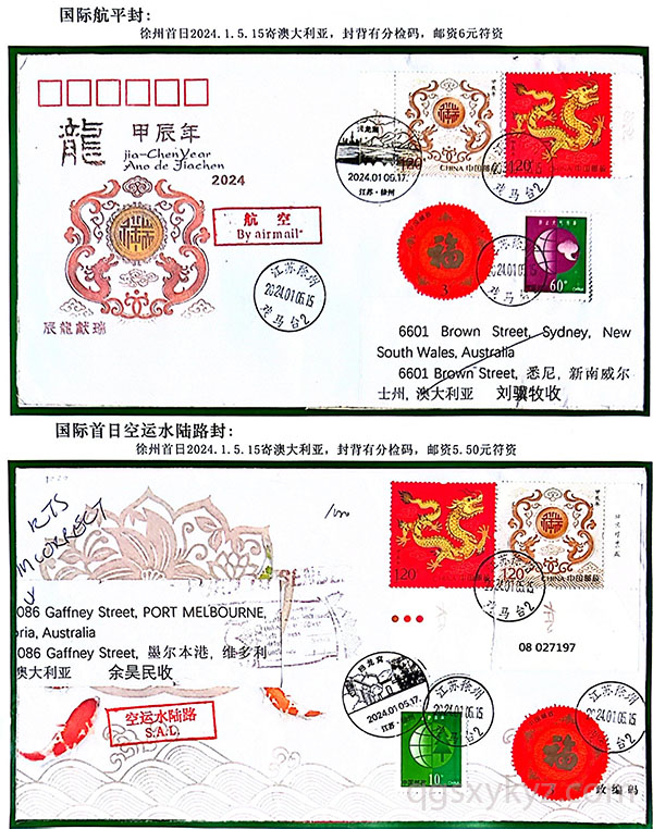 《甲辰年》特种邮票在国际邮政业务上的使用