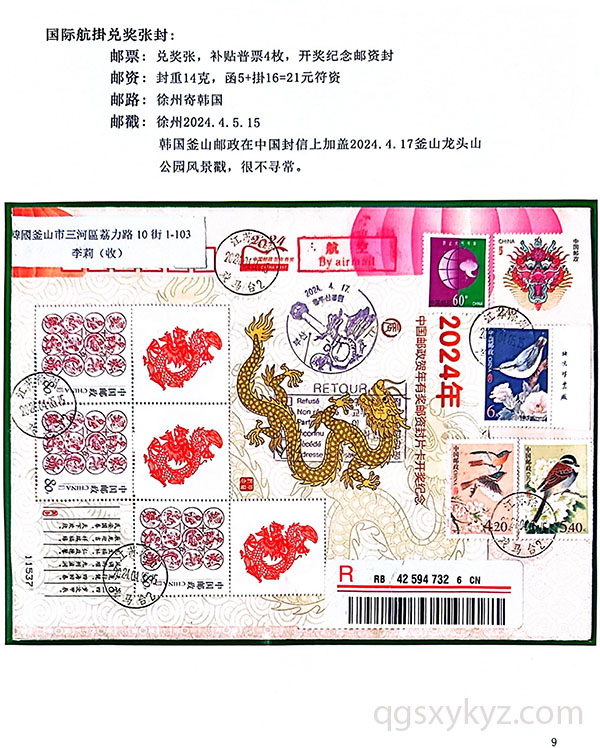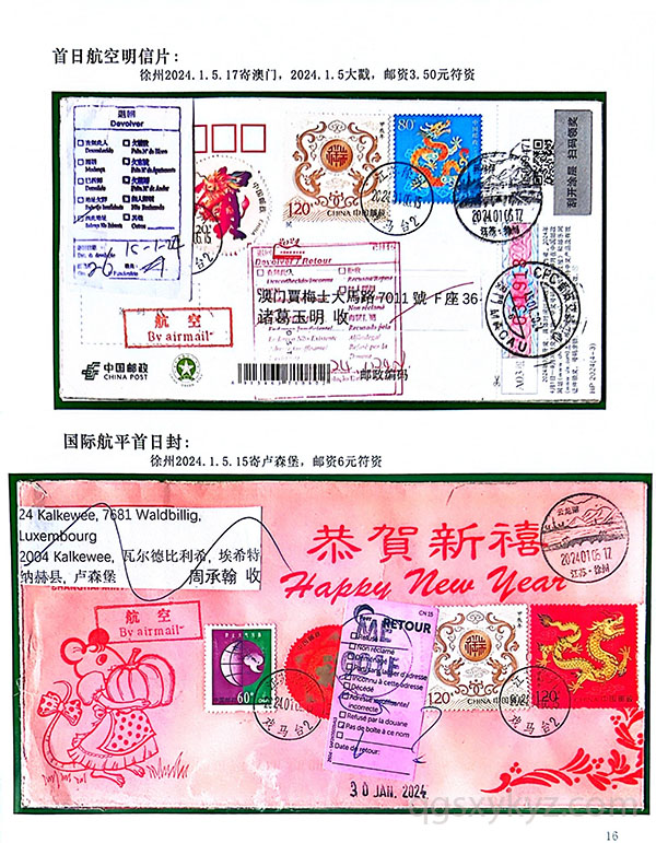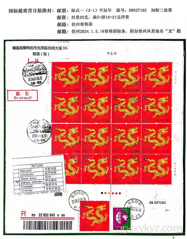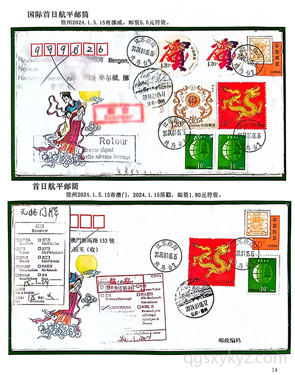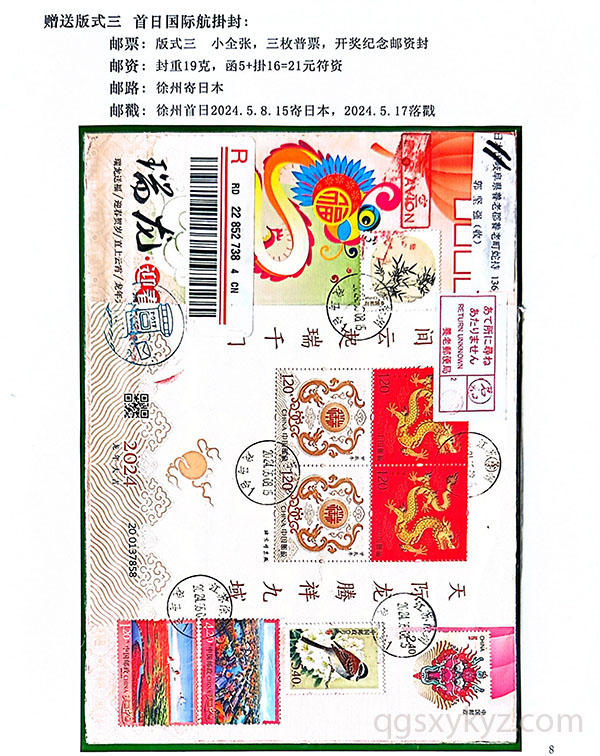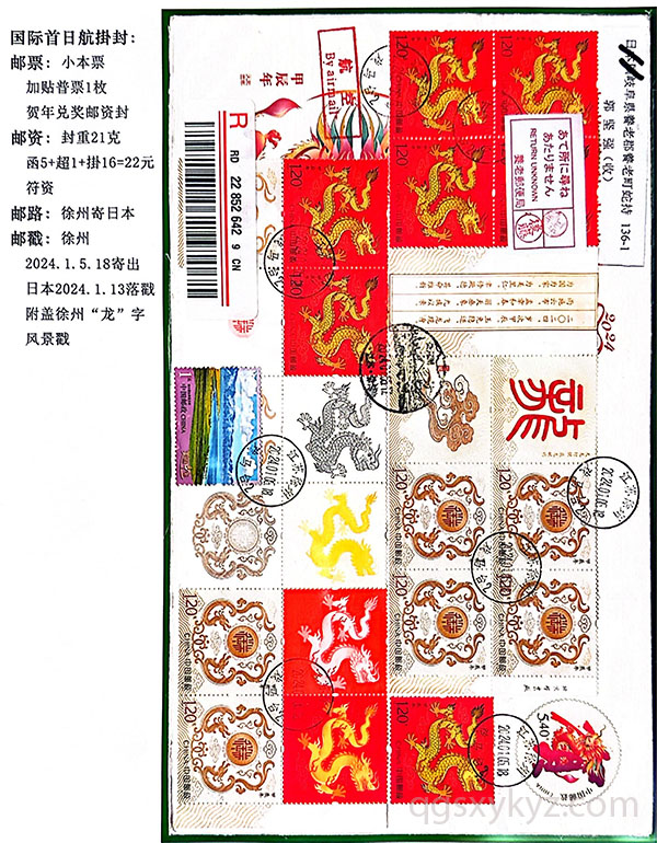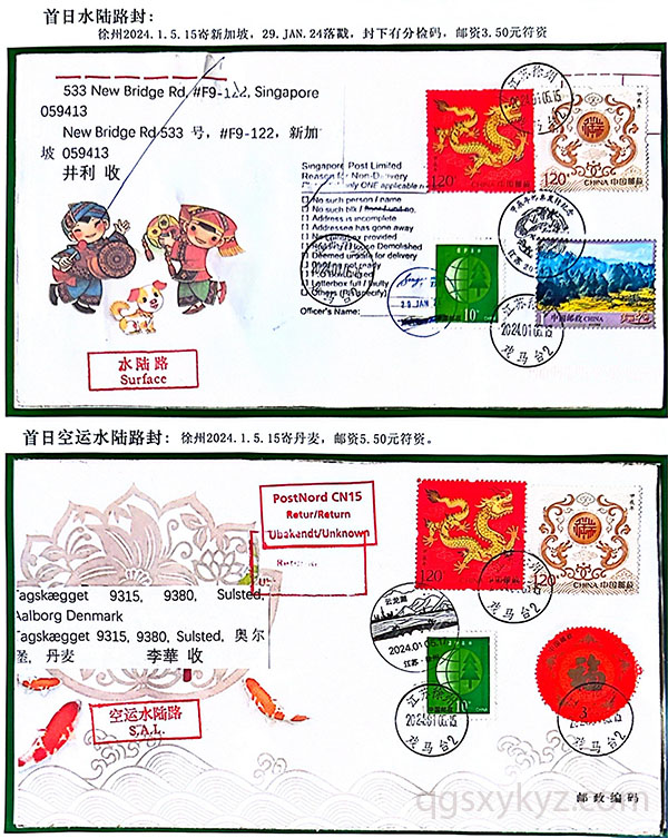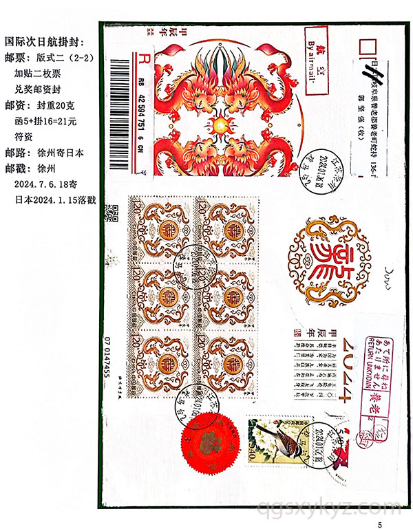 《甲辰年》特种邮票在国际邮政业务上的使用