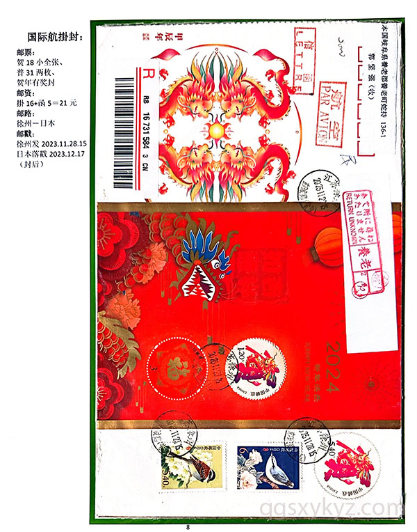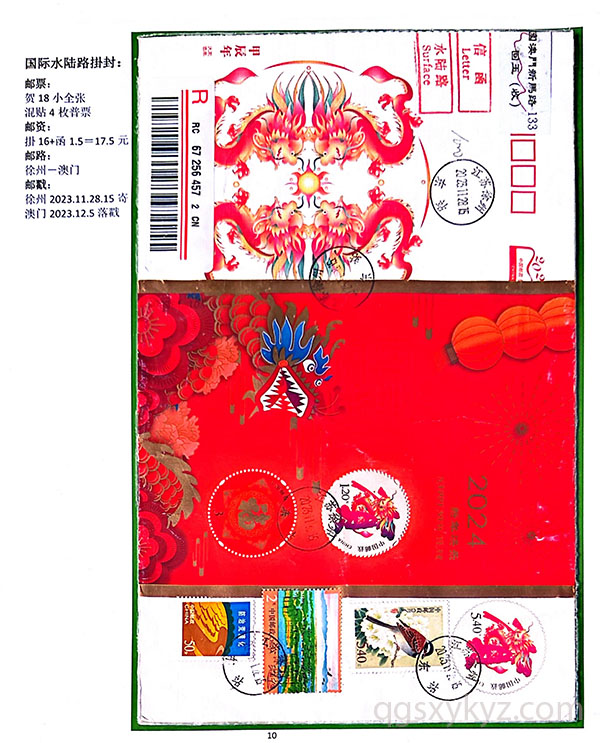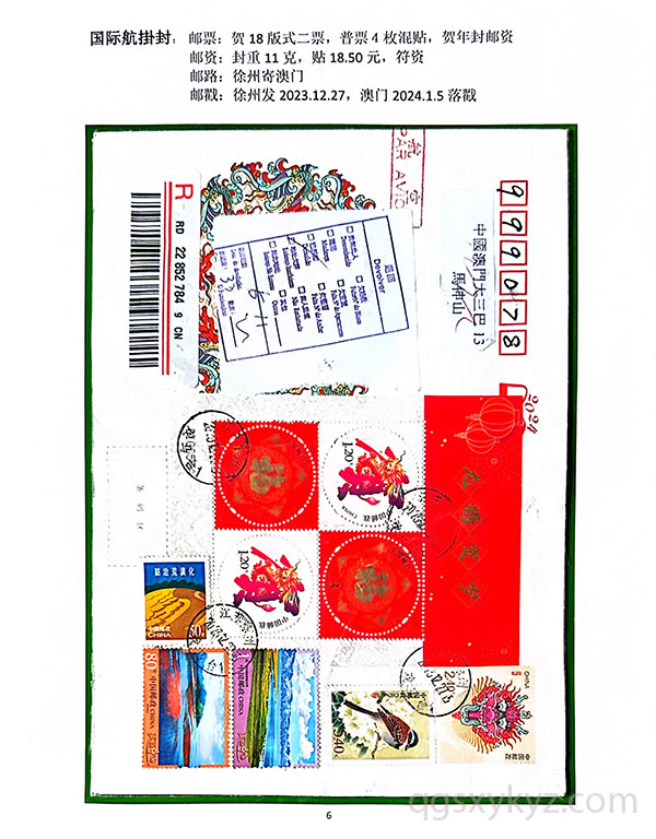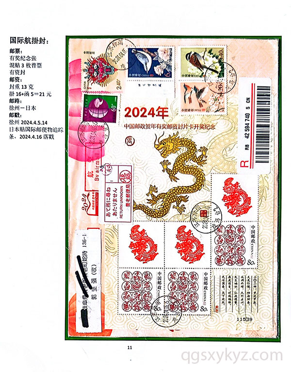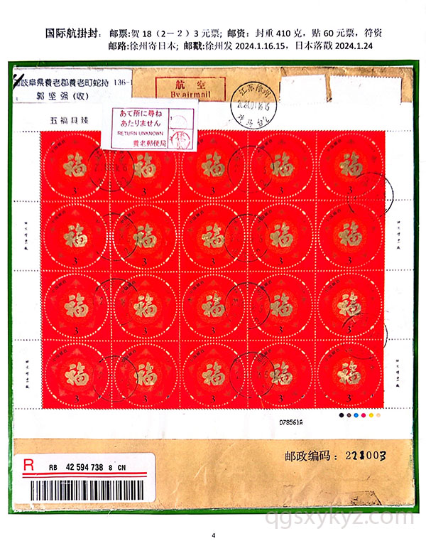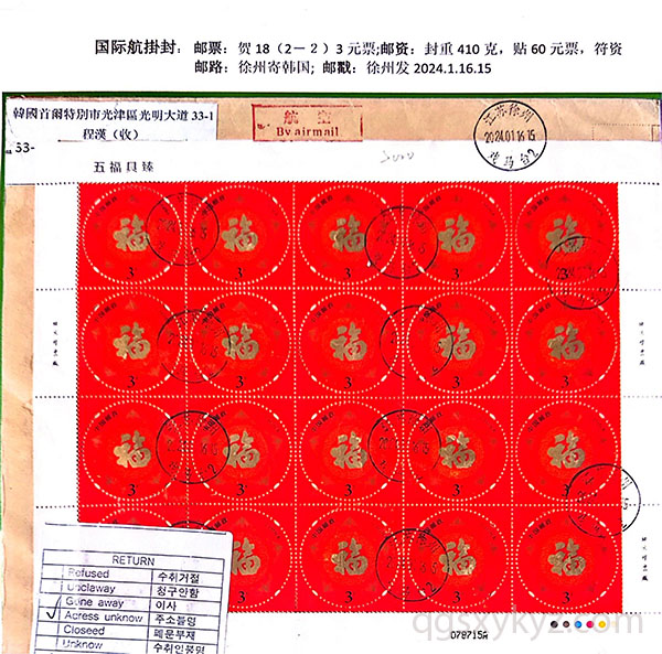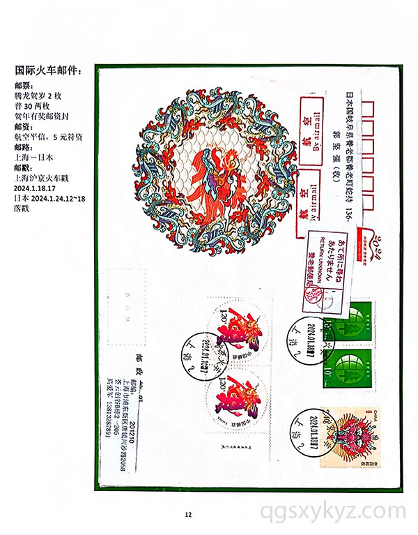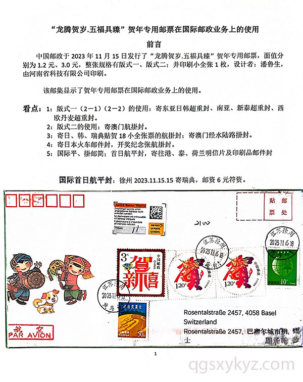 “龙腾贺岁.五福具臻”贺年专用邮票在国际邮政业务上的使用