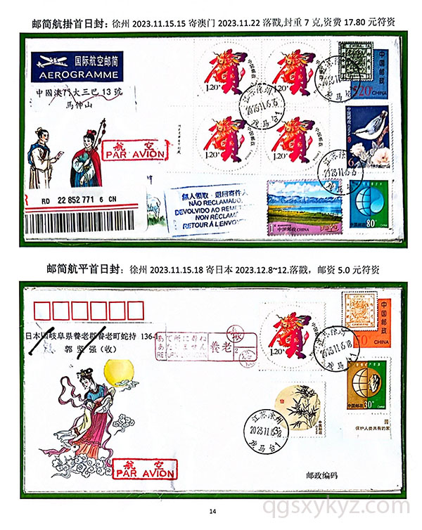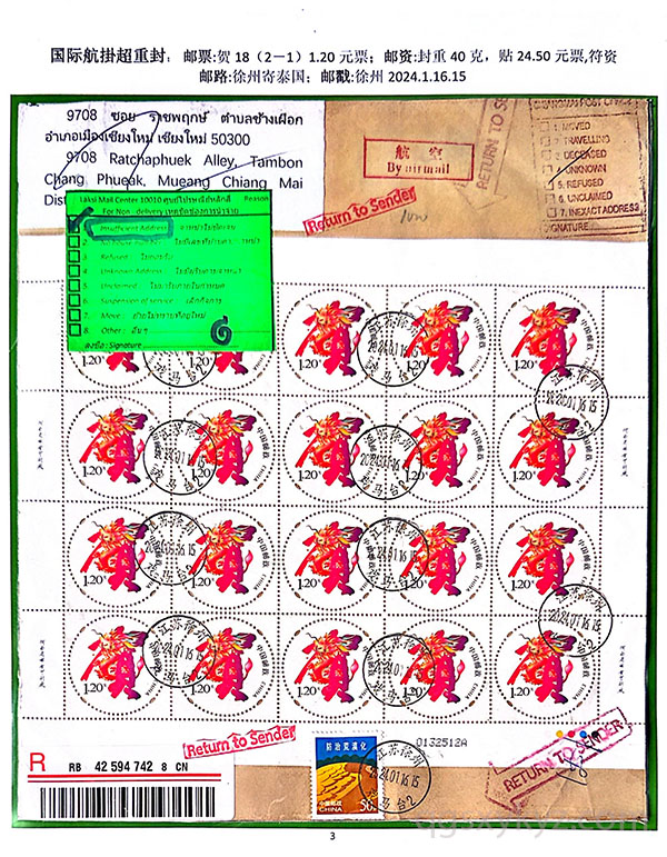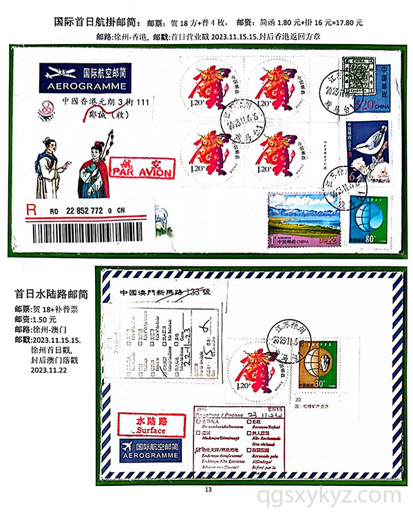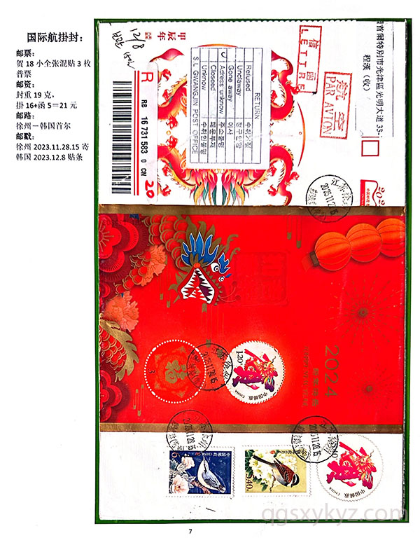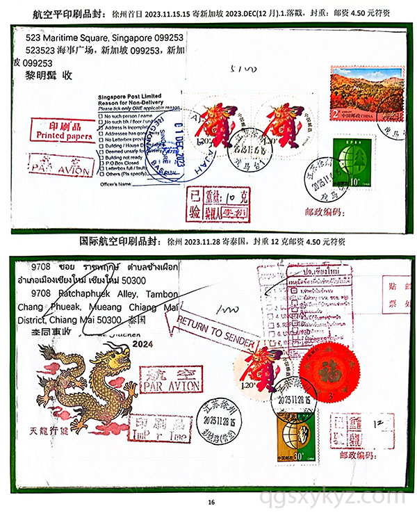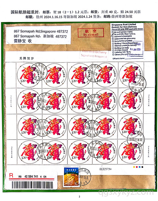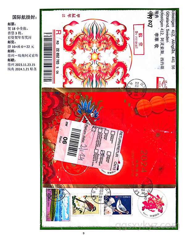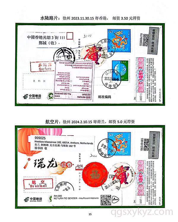 “龙腾贺岁.五福具臻”贺年专用邮票在国际邮政业务上的使用