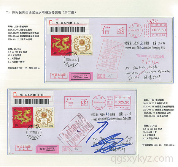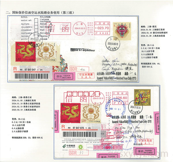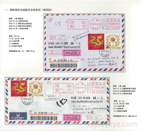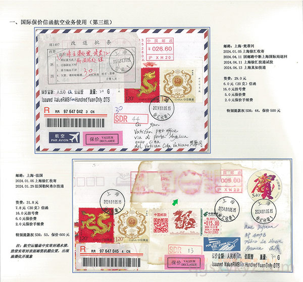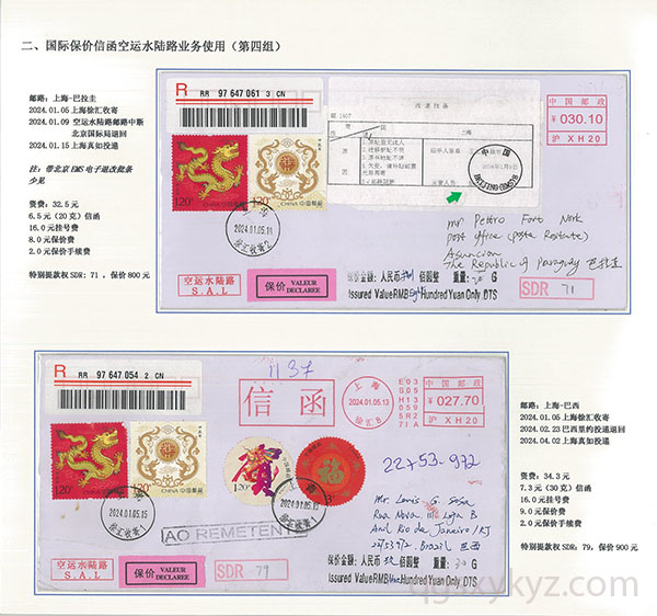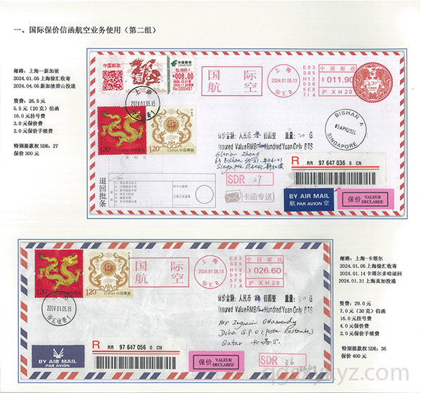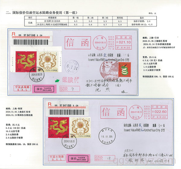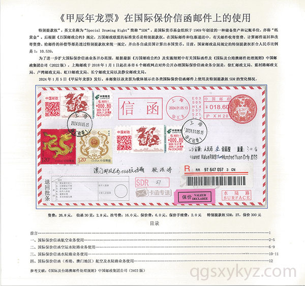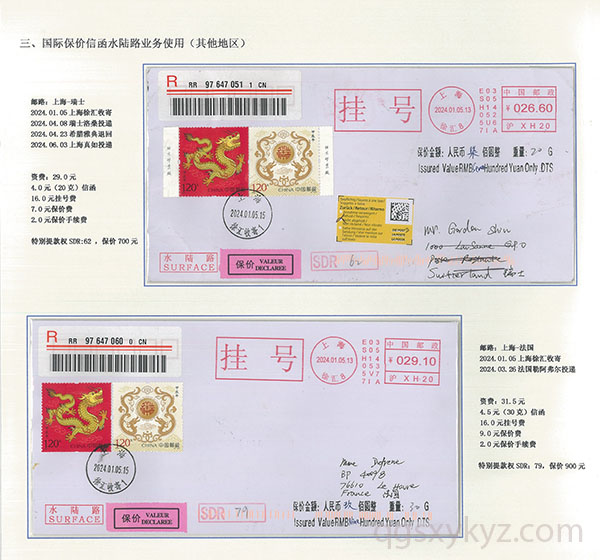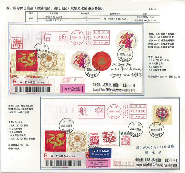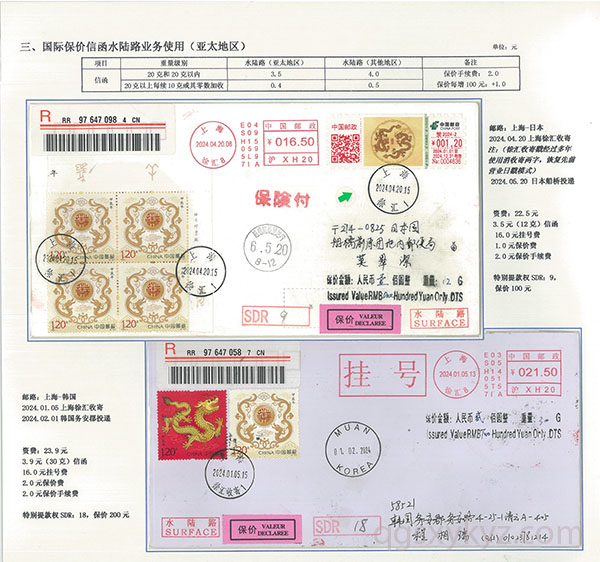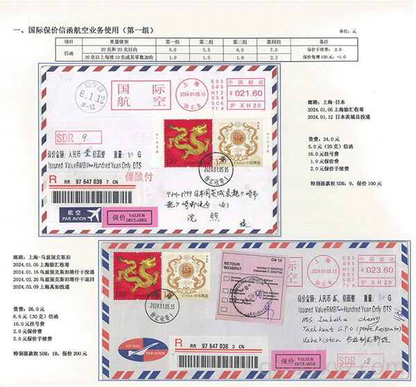 《甲辰年龙票》在国际保价信函邮件上的使用
