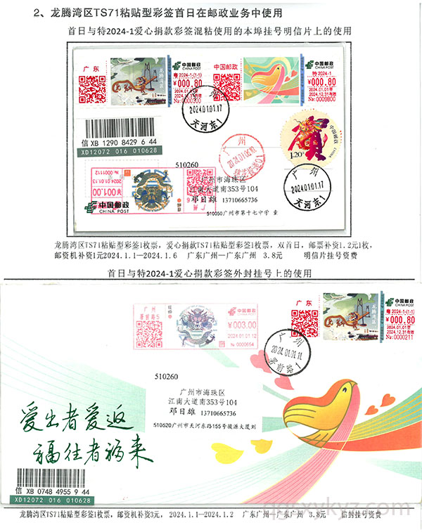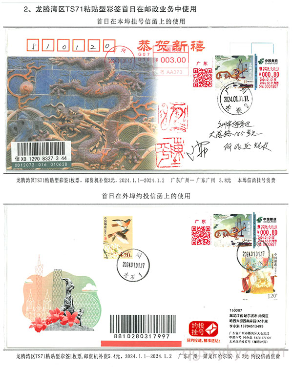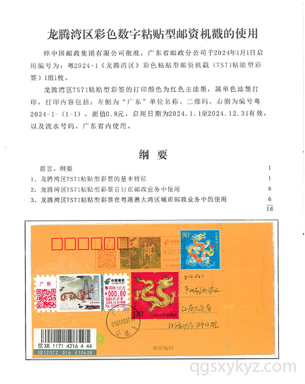 龙腾湾区彩色数字粘贴型邮资机戳的使用