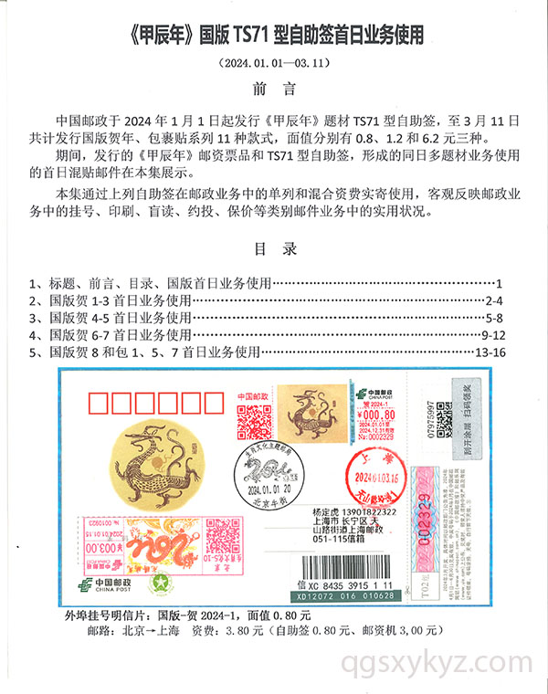 《甲辰年》国版TS71型自助签首日业务使用(2024.01.01-03.11)