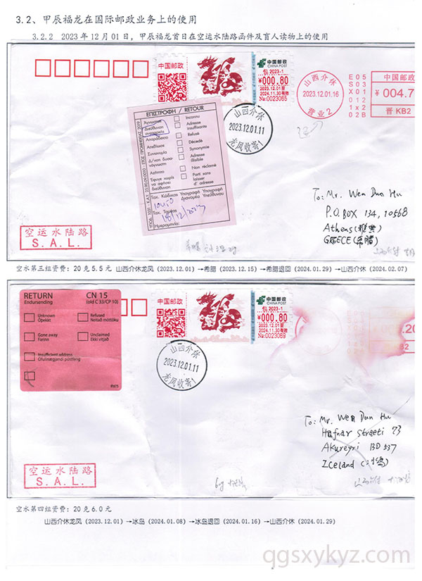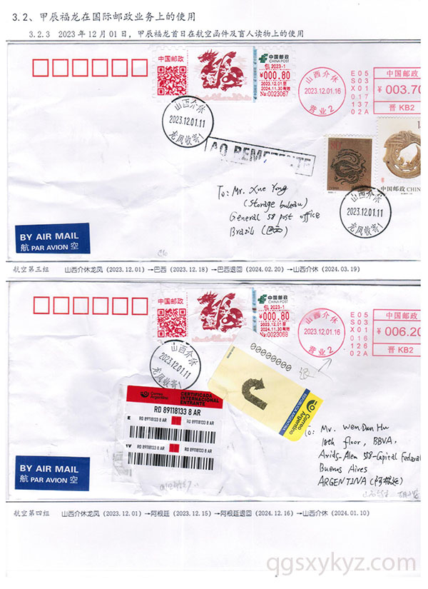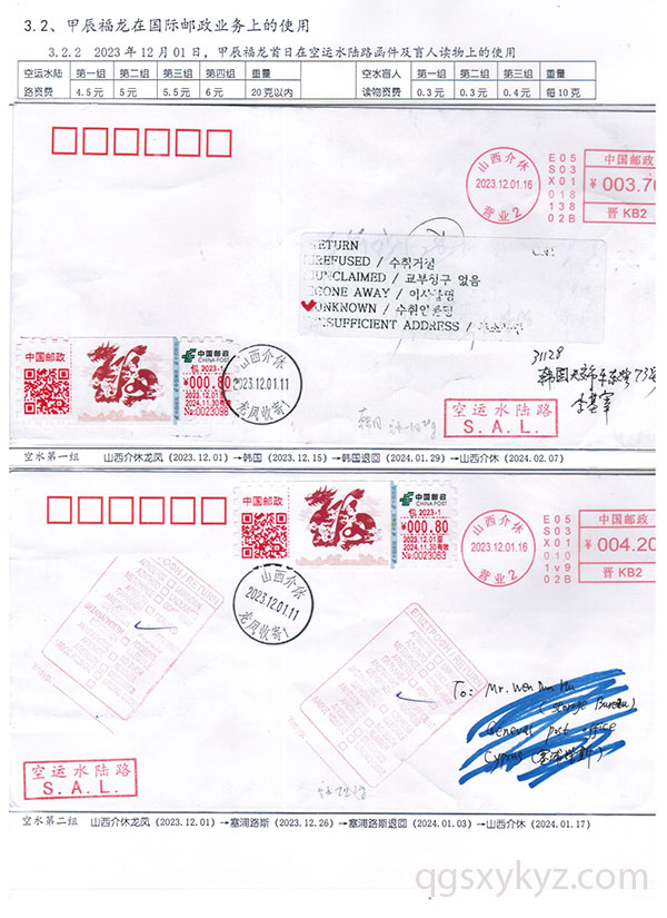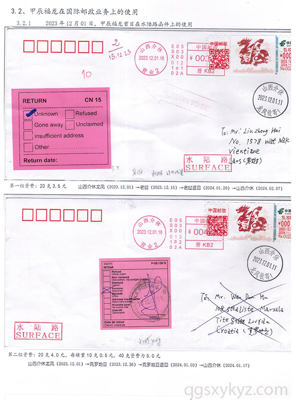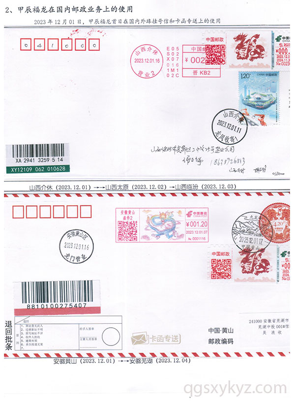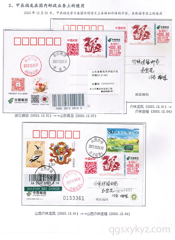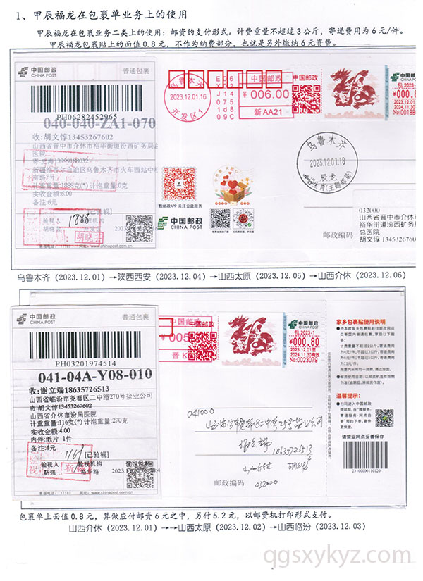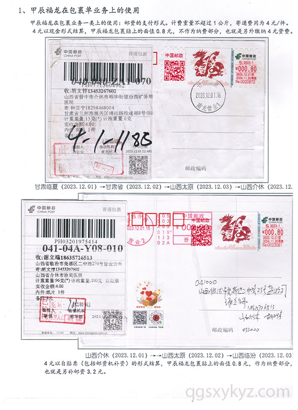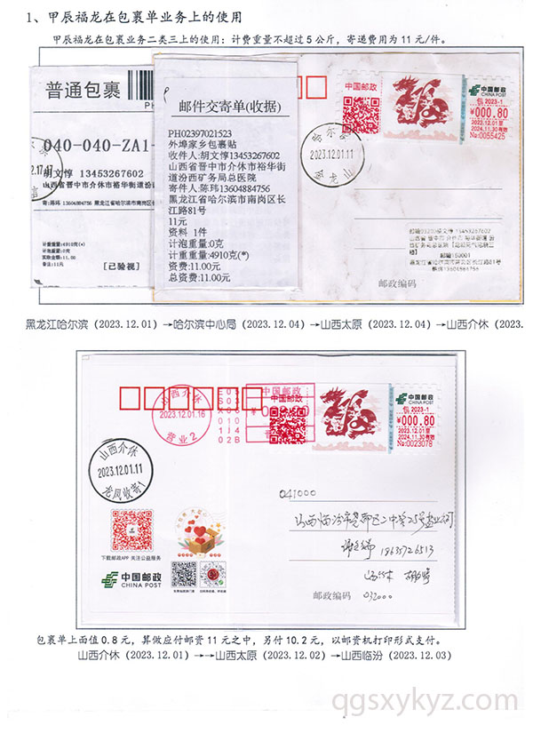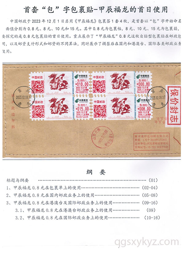 首套“包”字包裹贴--甲辰福龙的首日使用