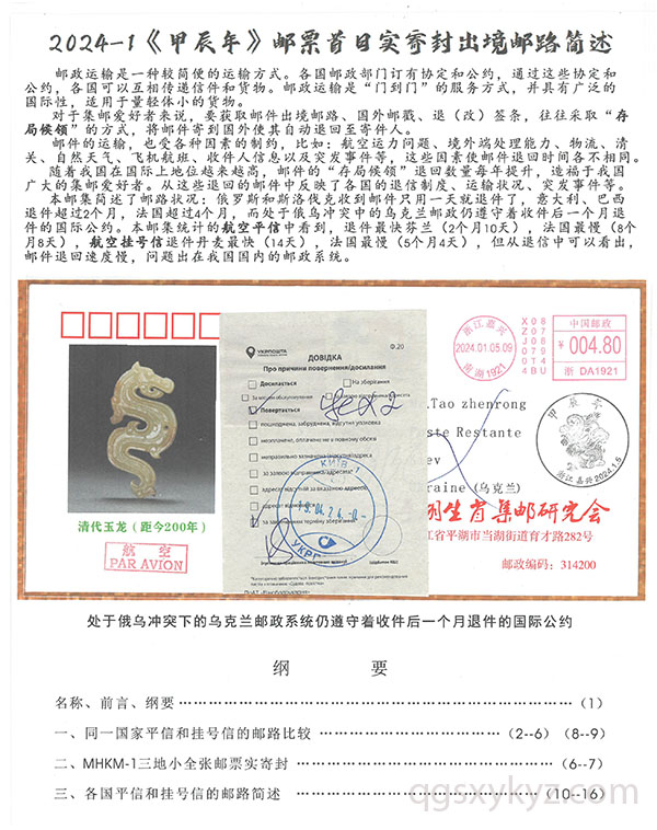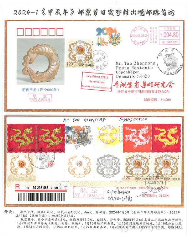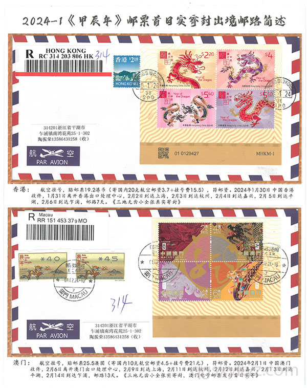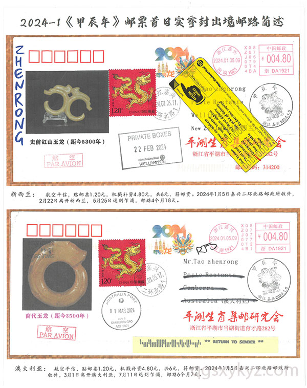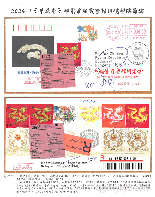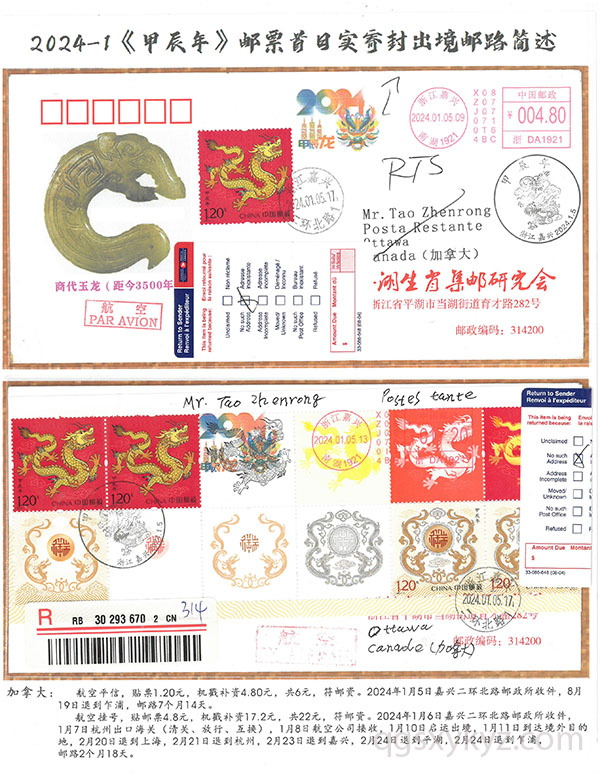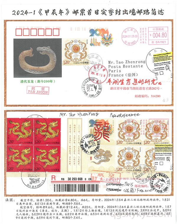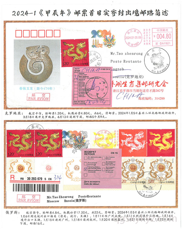2024-1《甲辰年》邮票首日实寄封出境邮路简述