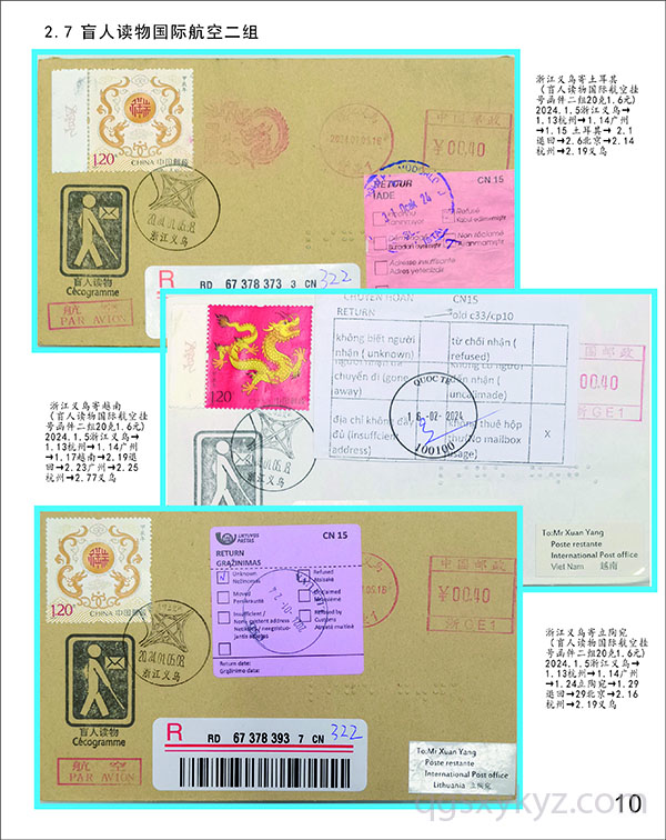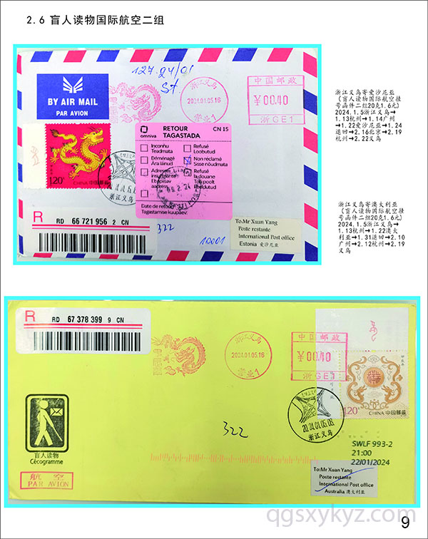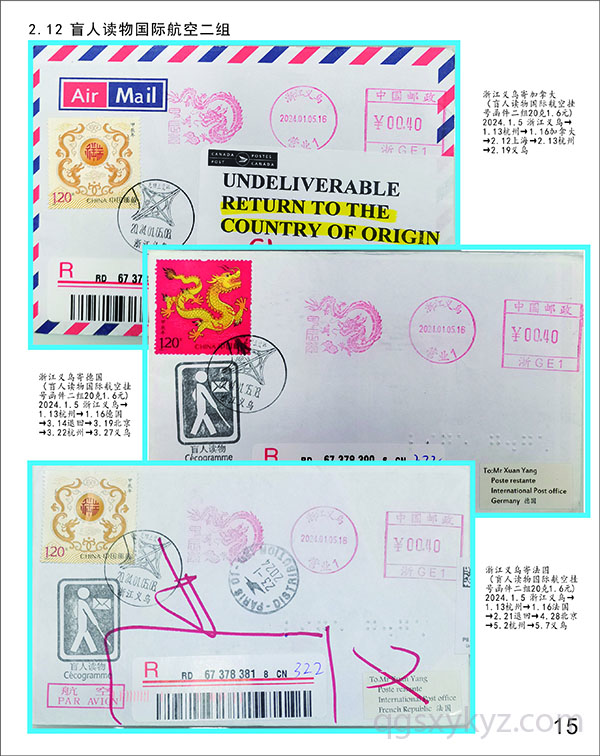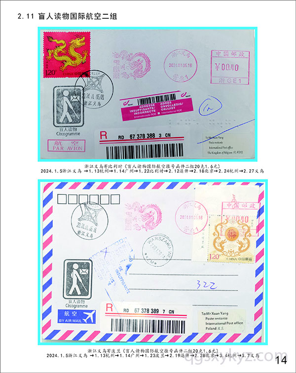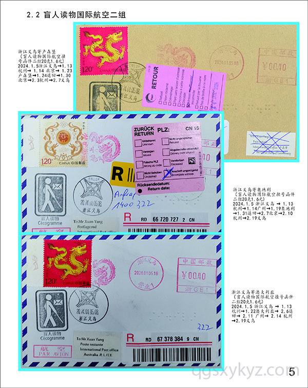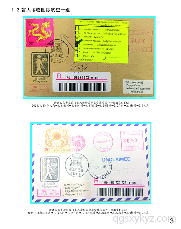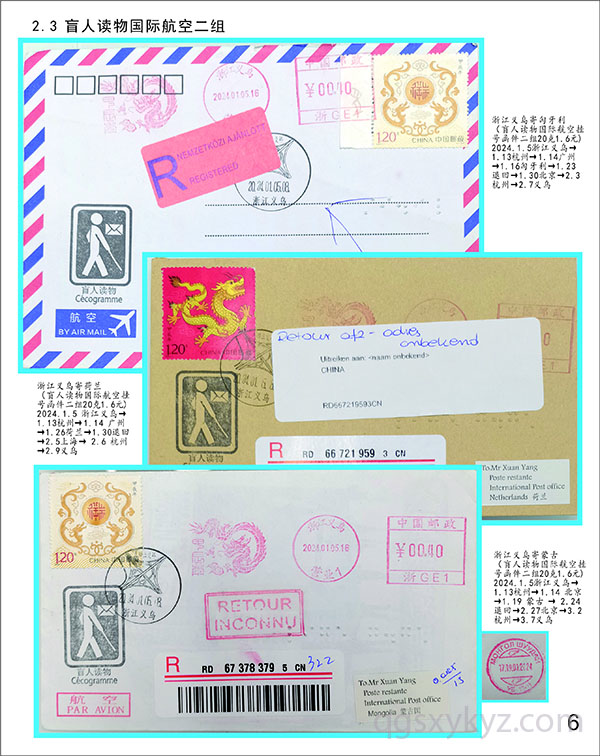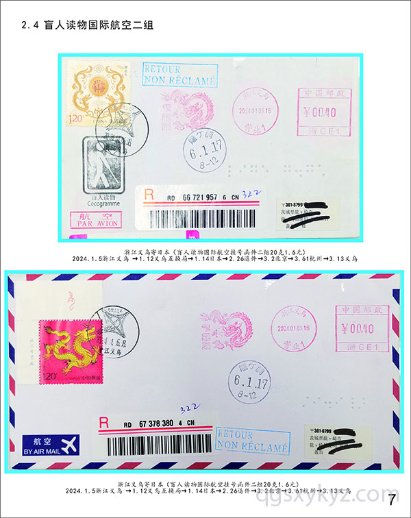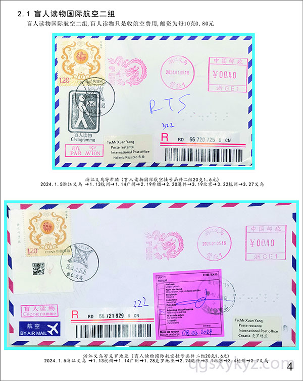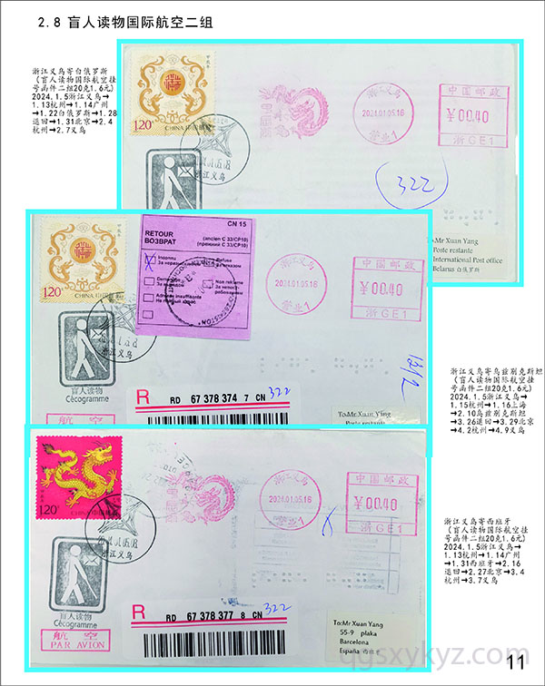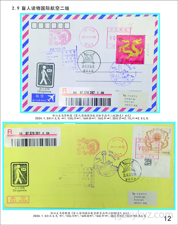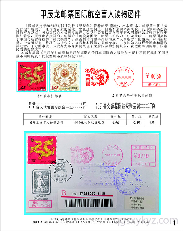 甲辰龙邮票国际航空盲人读物函件