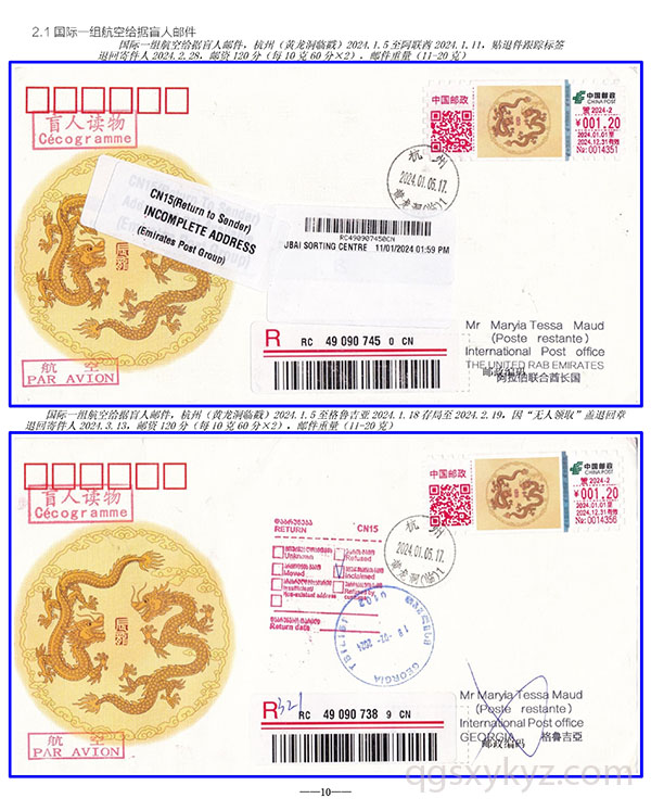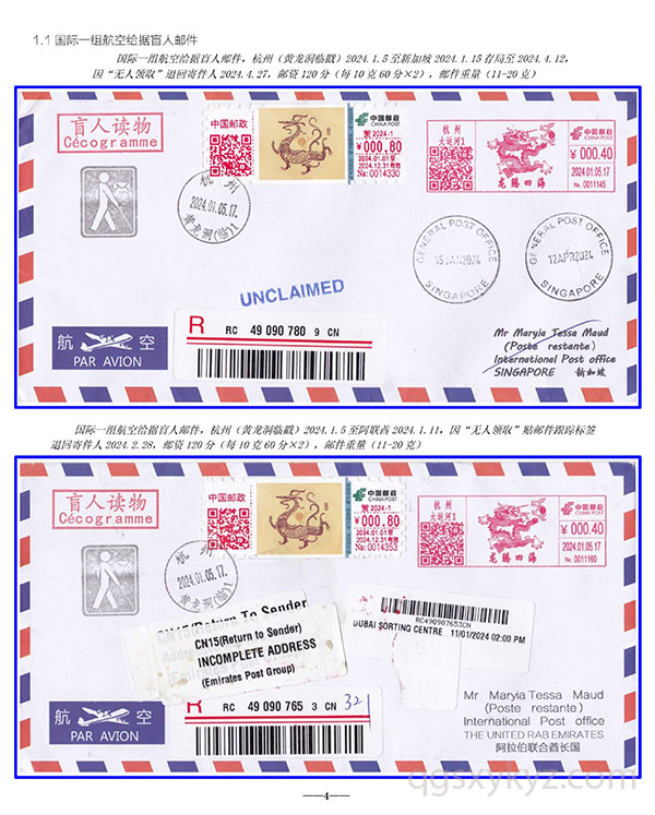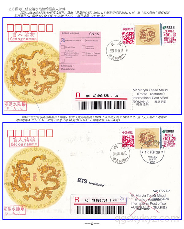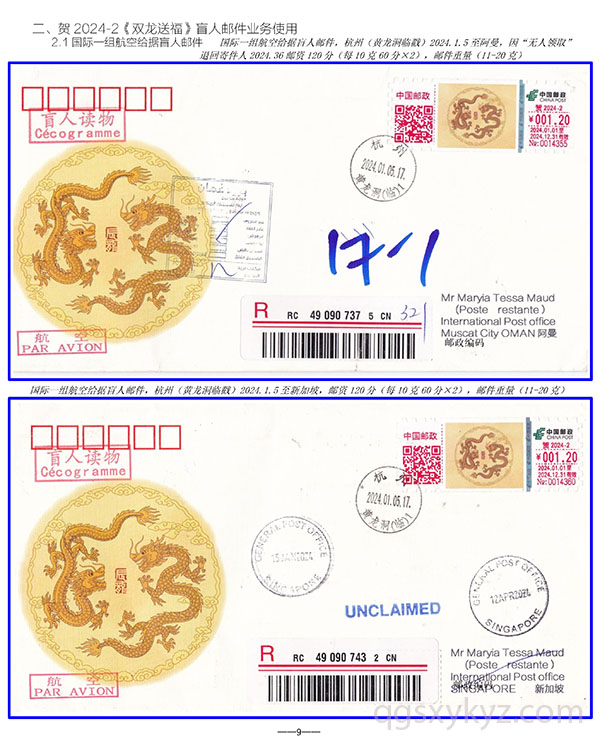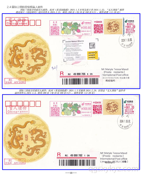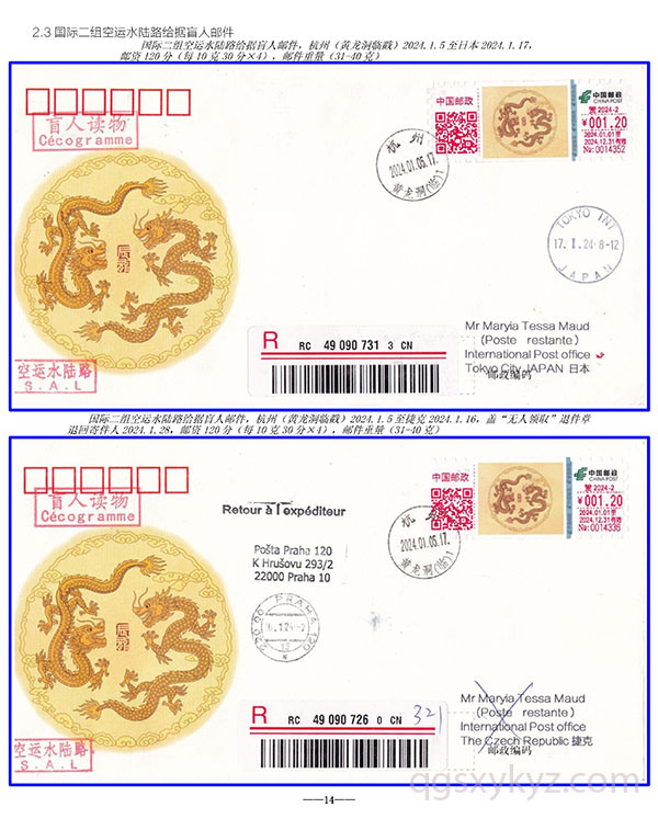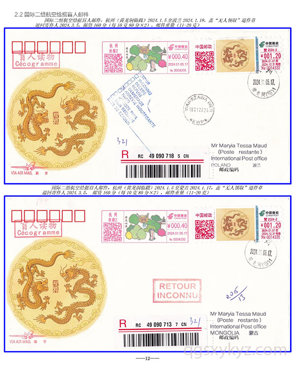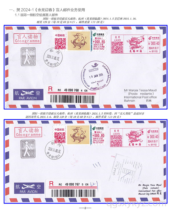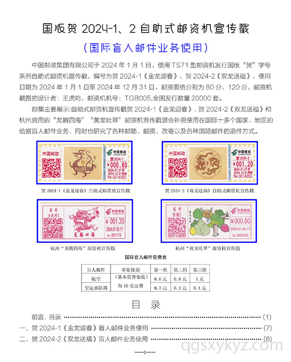 国版贺2024-1/2自助式邮资机宣传戳(国际盲人邮件业务使用)