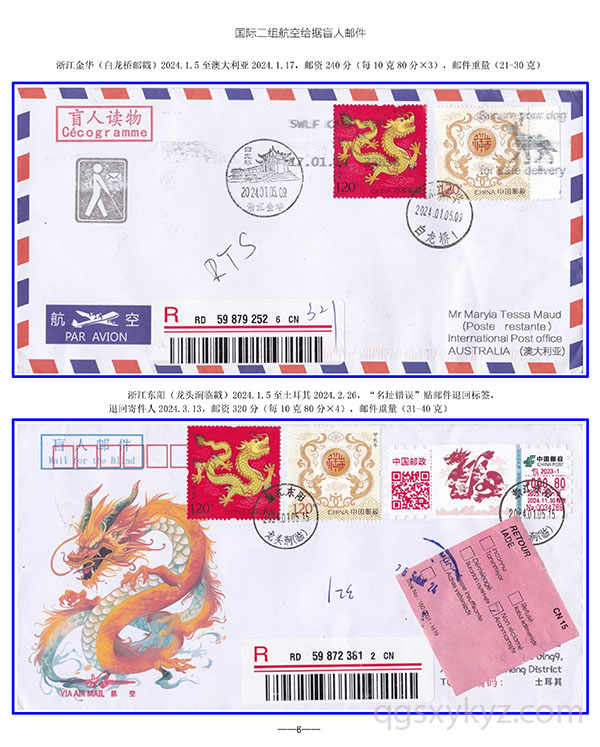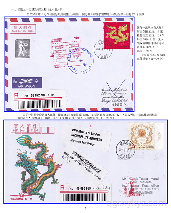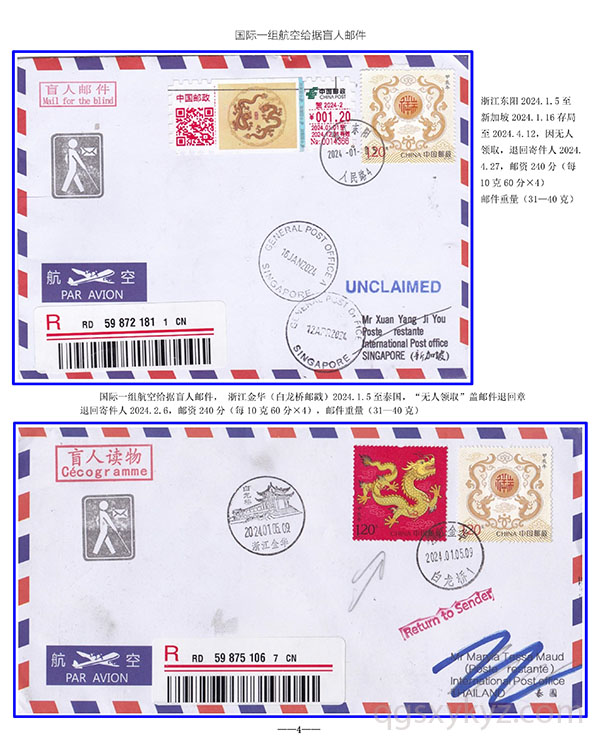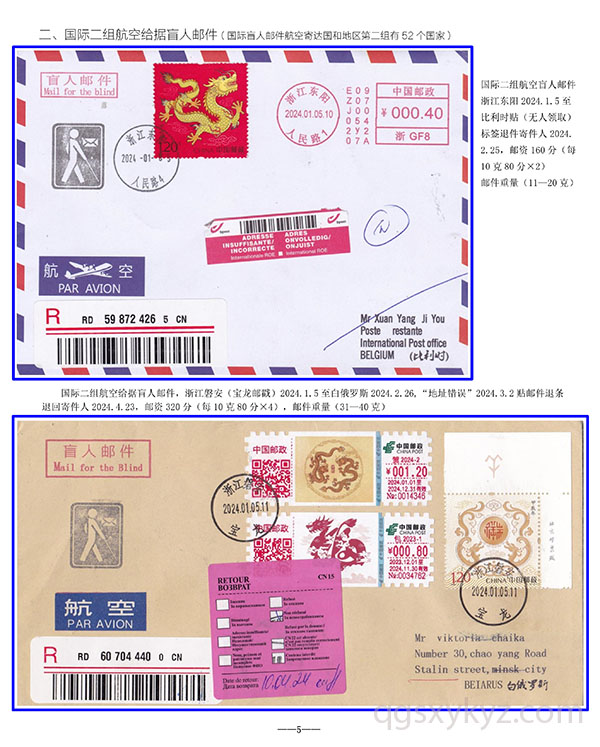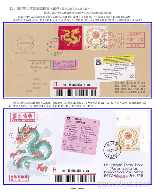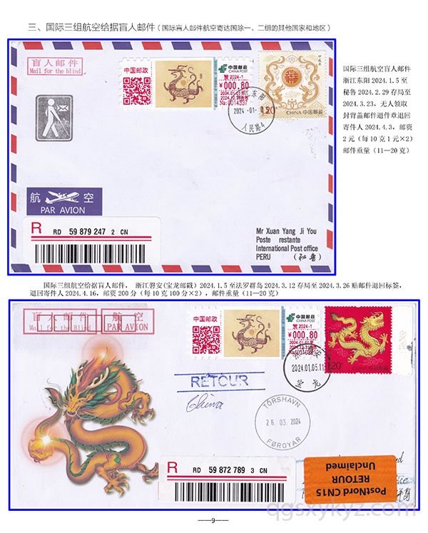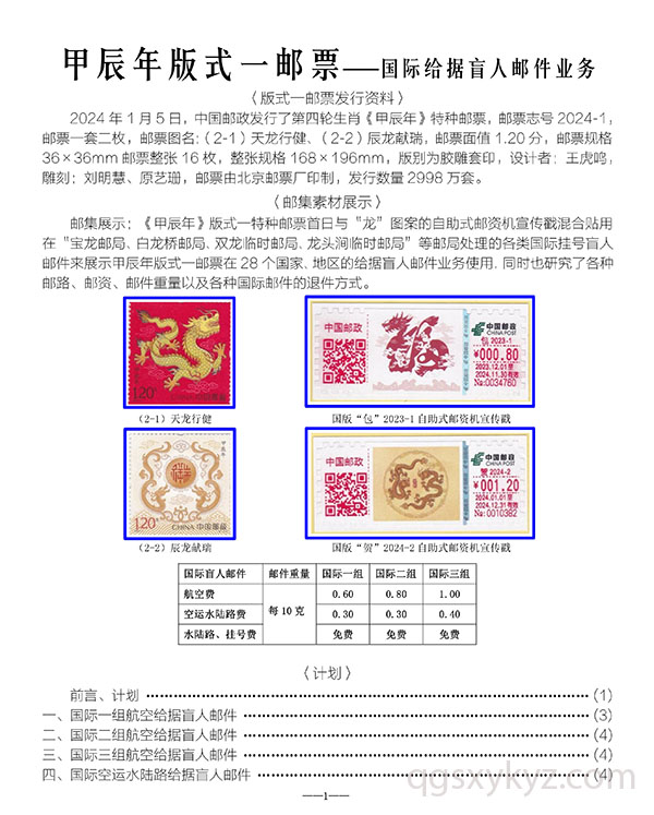 甲辰年版式一邮票--国际给据盲人邮件业务