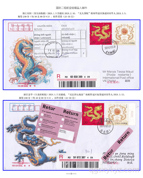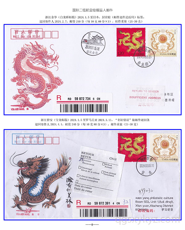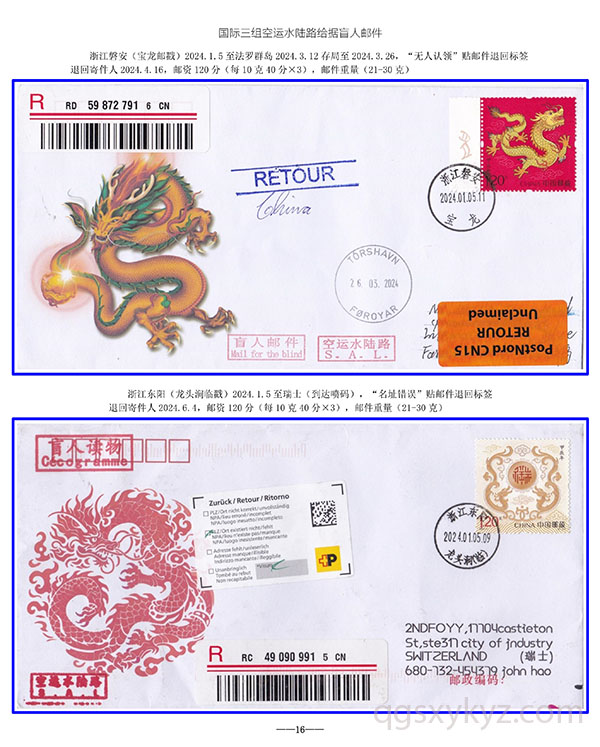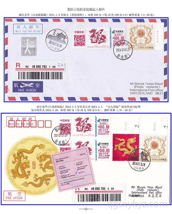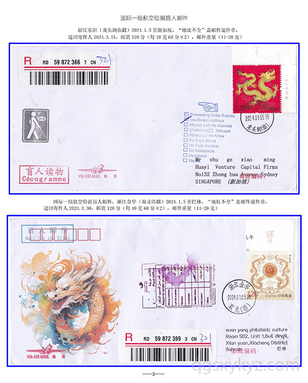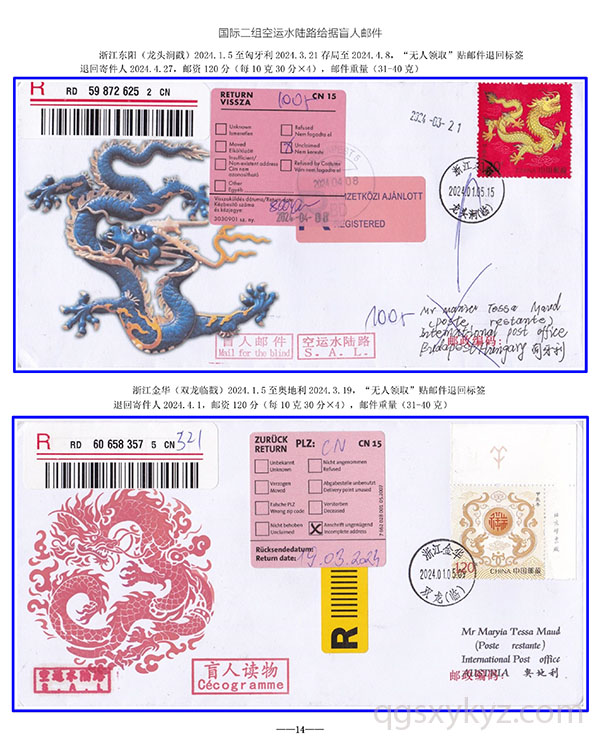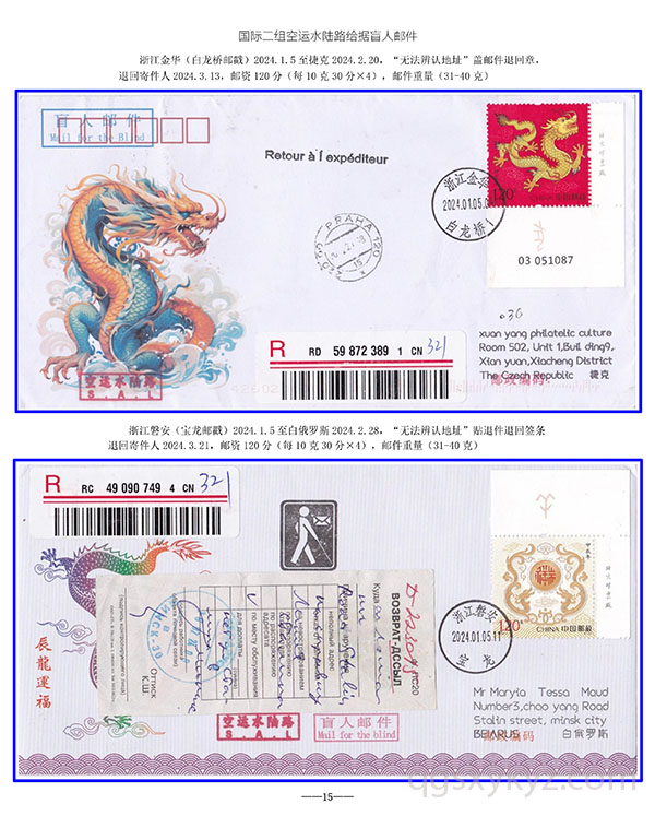 甲辰年版式一邮票--国际给据盲人邮件业务