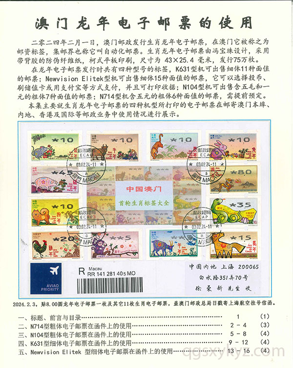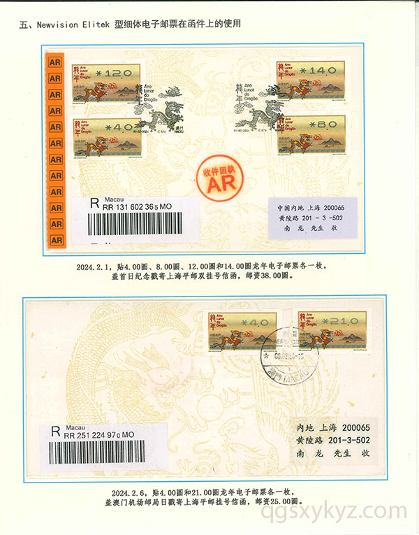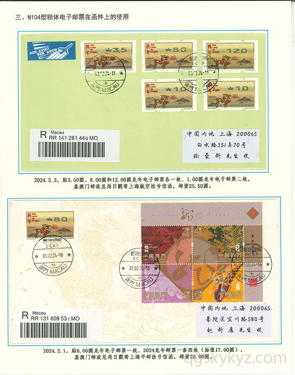 澳门龙年电子邮票的使用