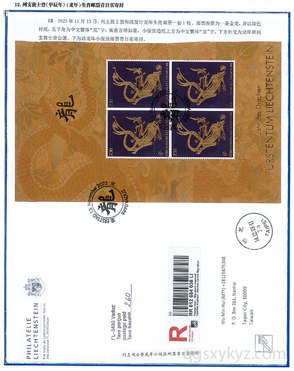 外国甲辰年(龙年)生肖邮票首日实寄封