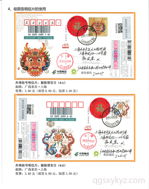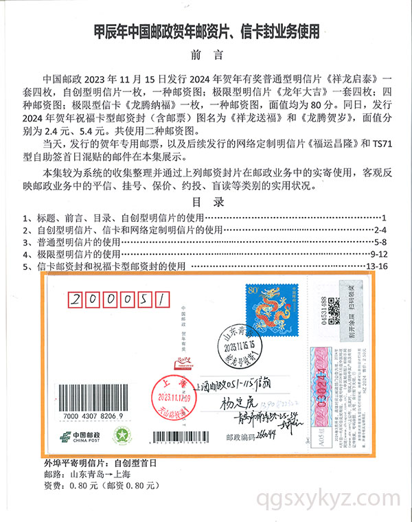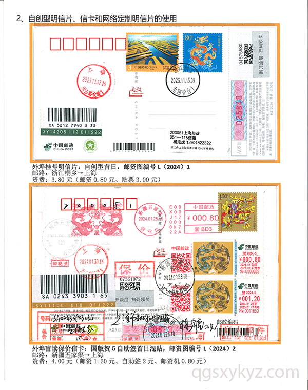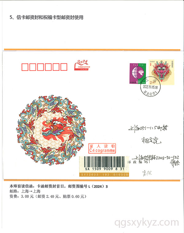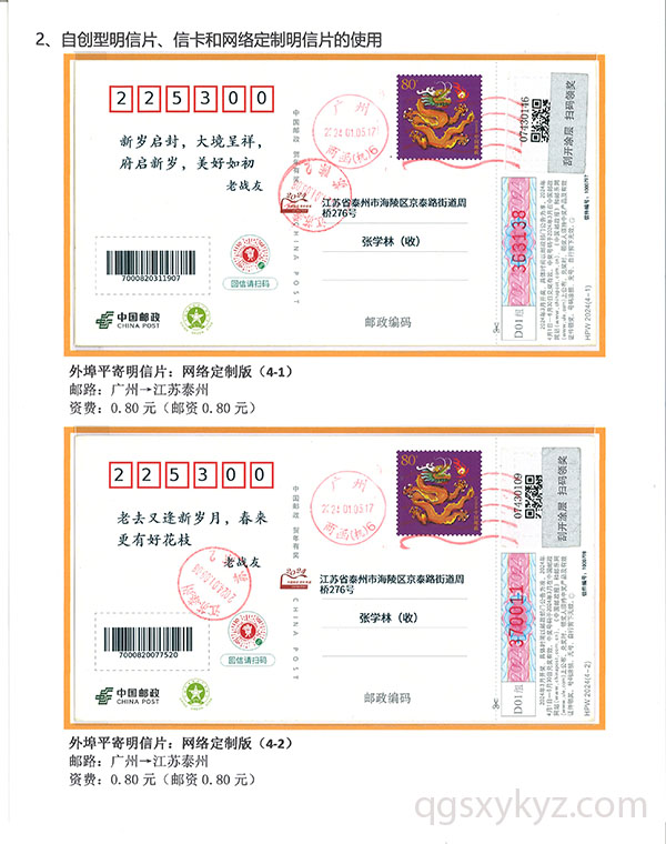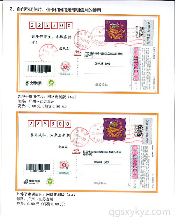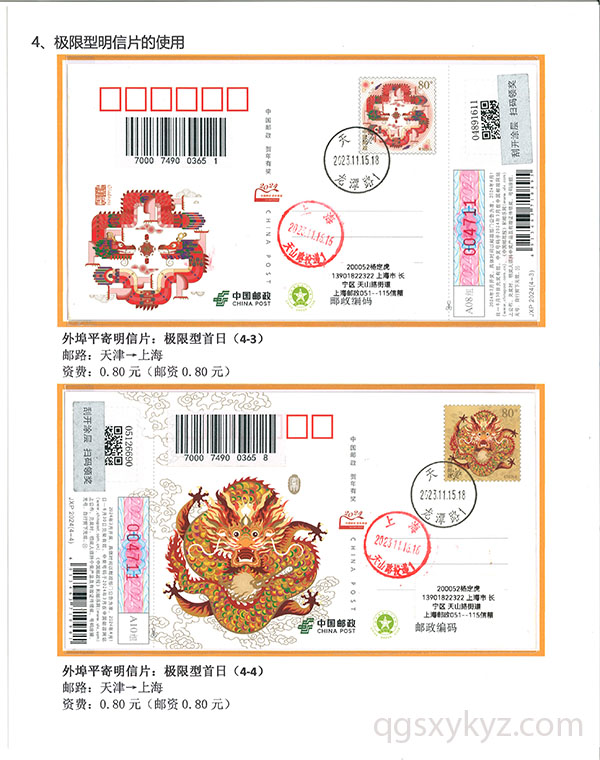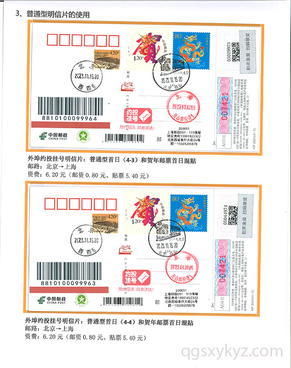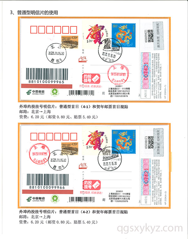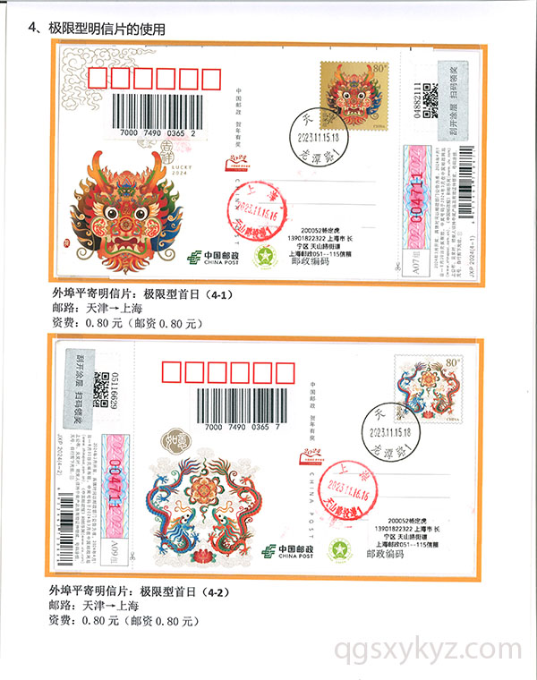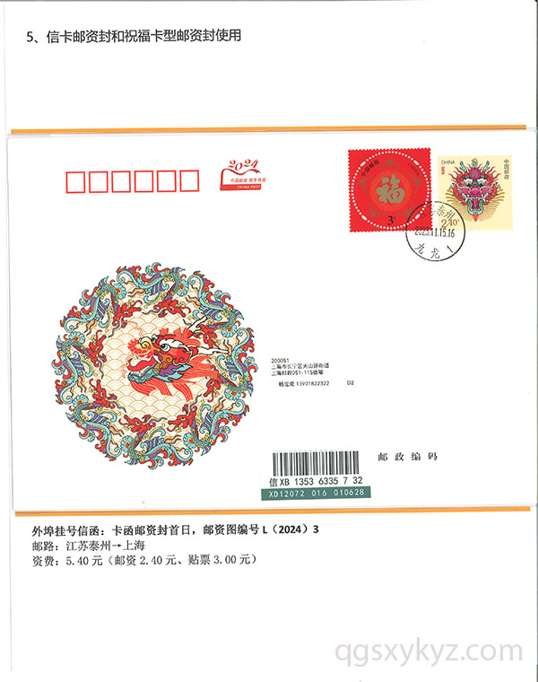甲辰年中国邮政贺年邮资片、信卡封业务使用