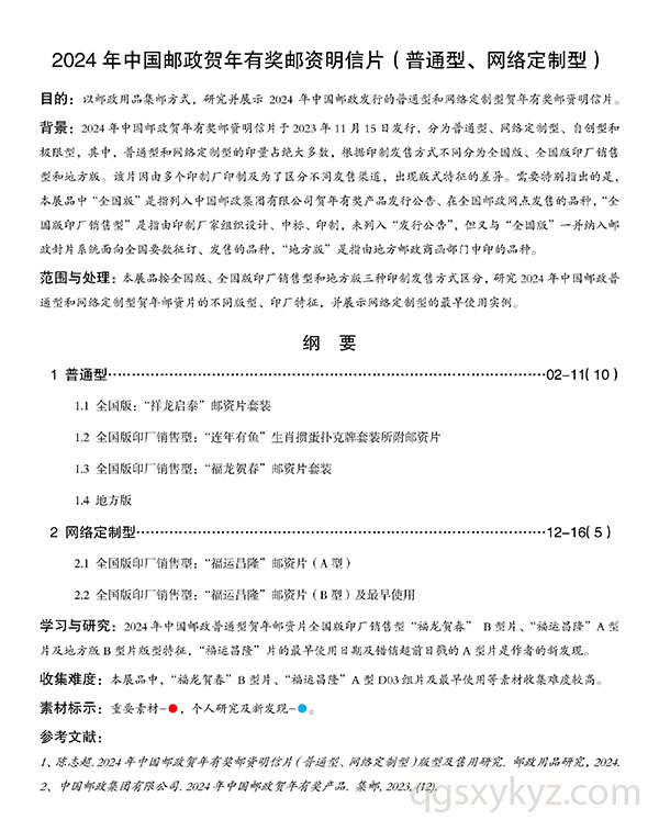 2024年中国邮政贺年有奖邮资明信片(普通型、网络定制型)