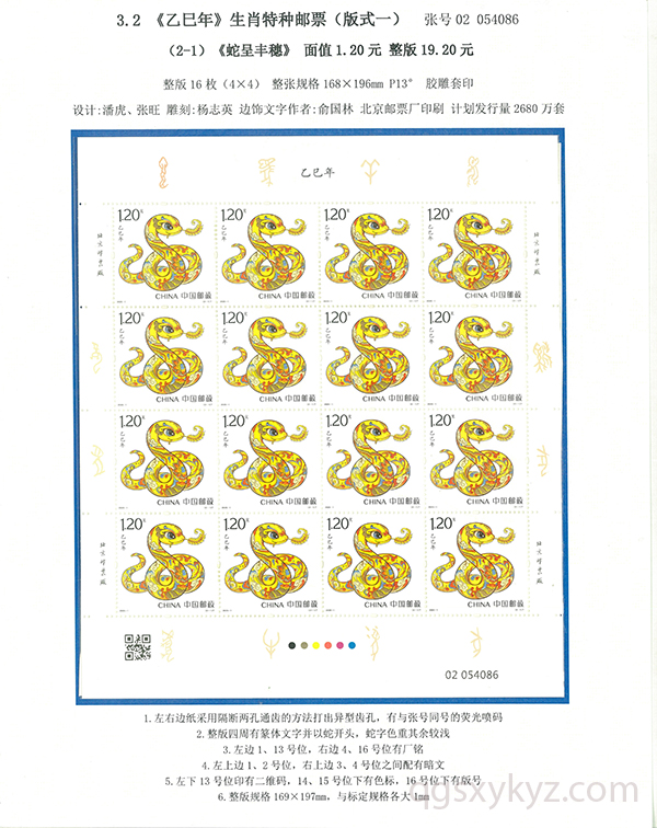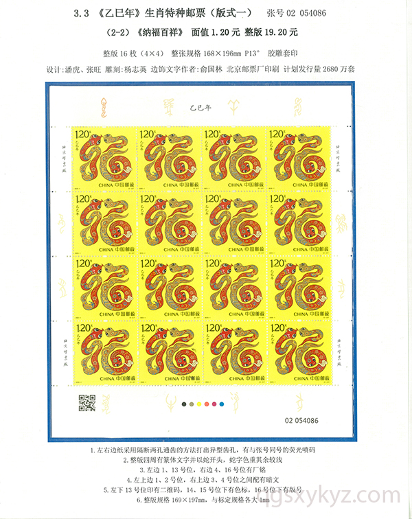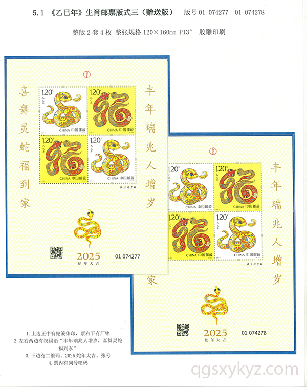 “乙巳如意”《乙巳年》蛇特种邮票
