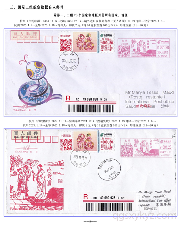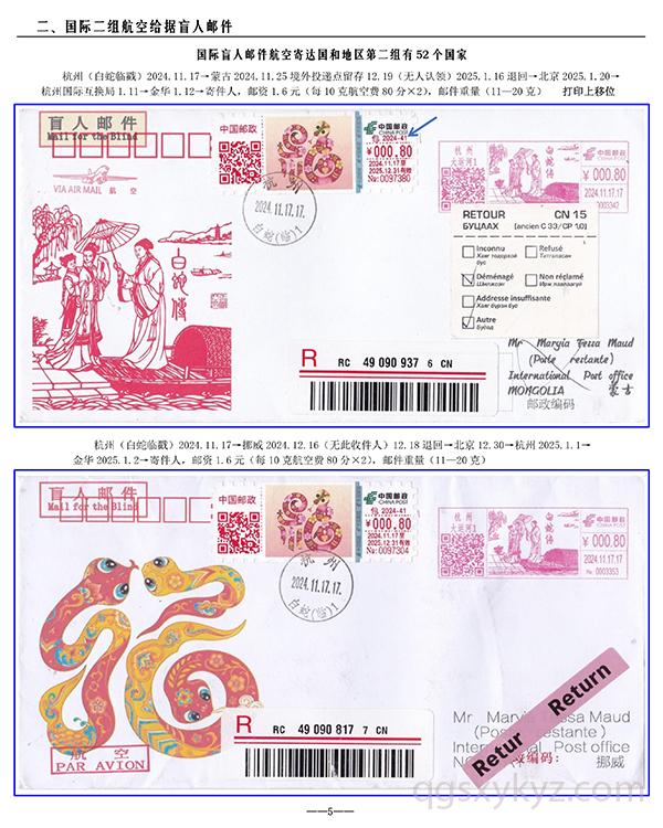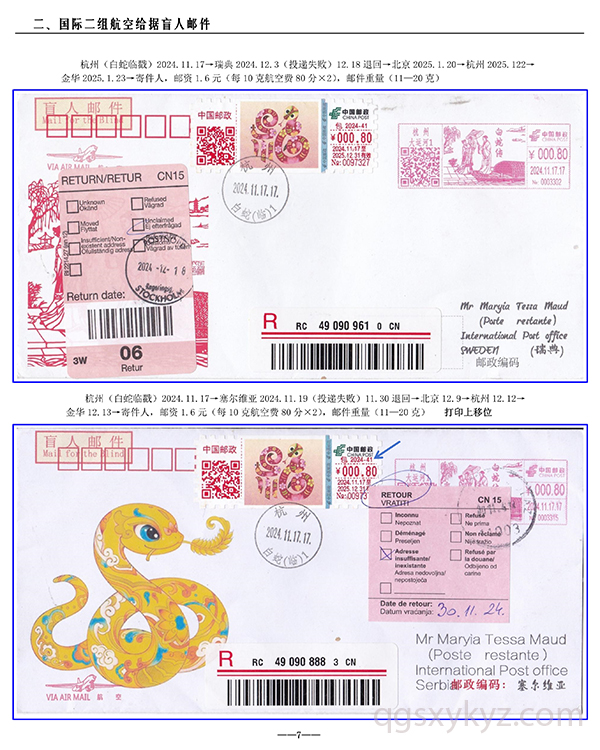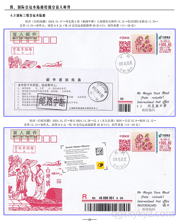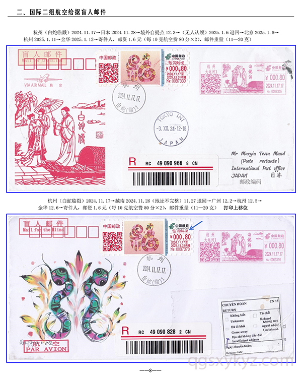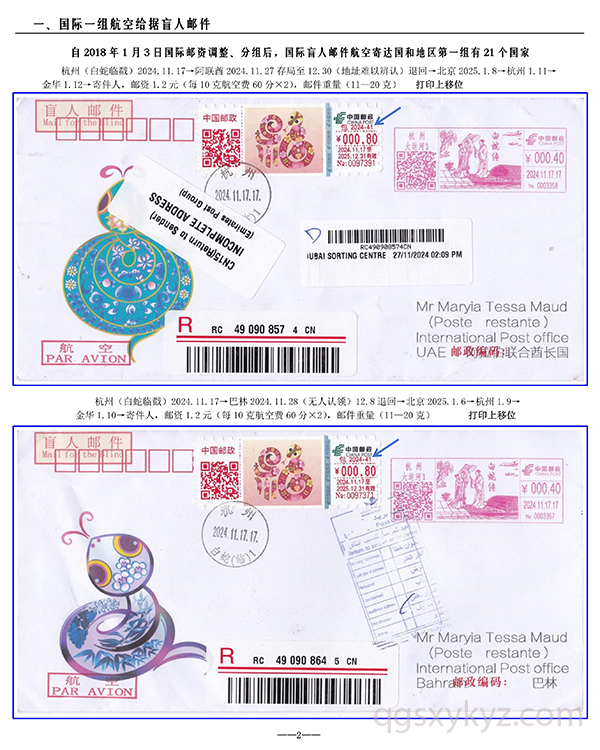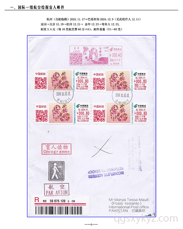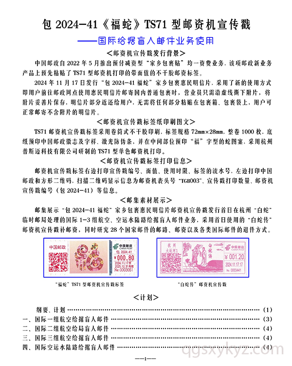包2024-41《福蛇》TS71型邮资机宣传戳—国际给据盲人邮件业务使用