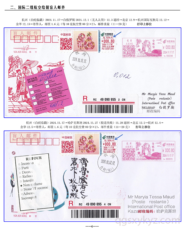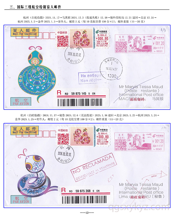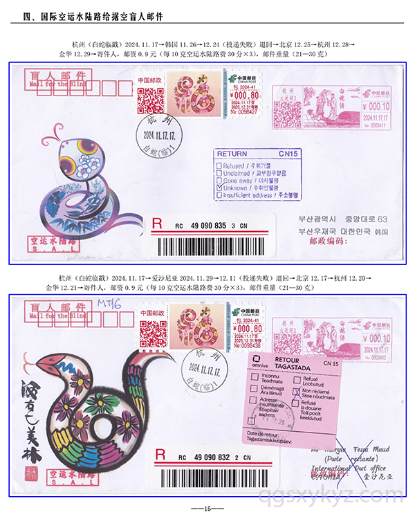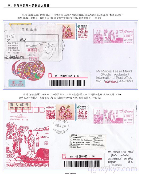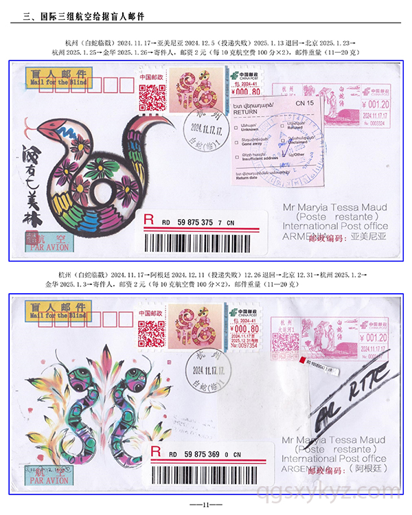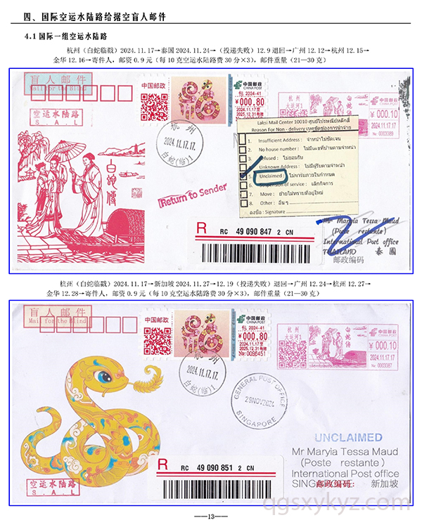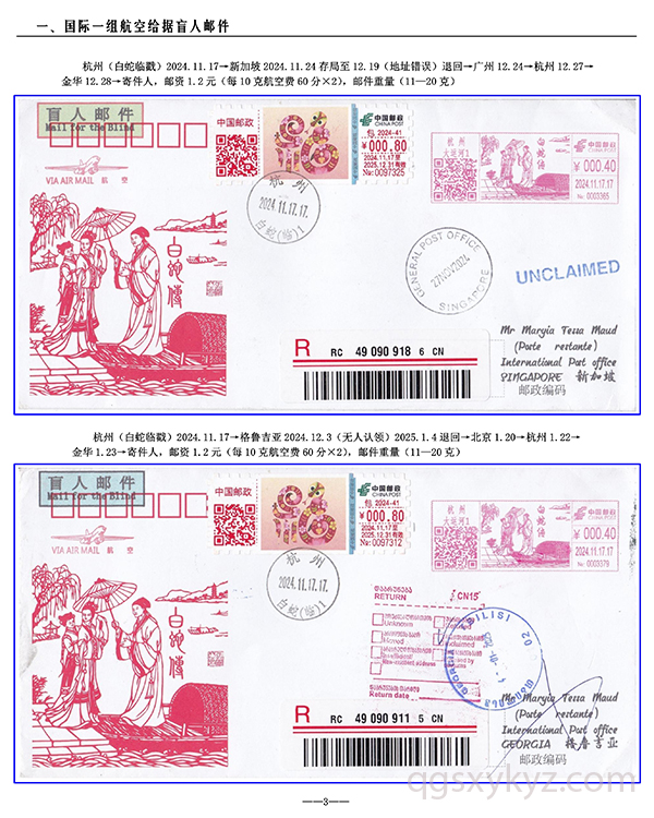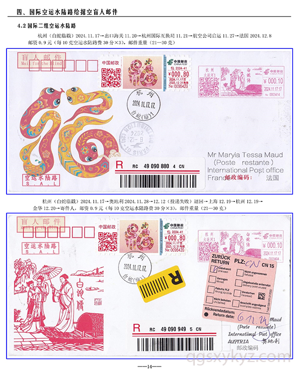 包2024-41《福蛇》TS71型邮资机宣传戳—国际给据盲人邮件业务使用