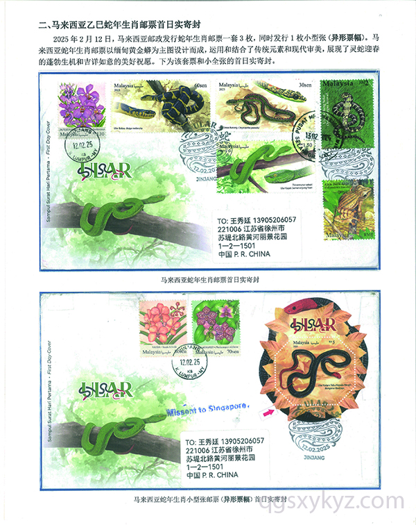 外国《乙巳年》(蛇年)生肖邮票首日实寄封