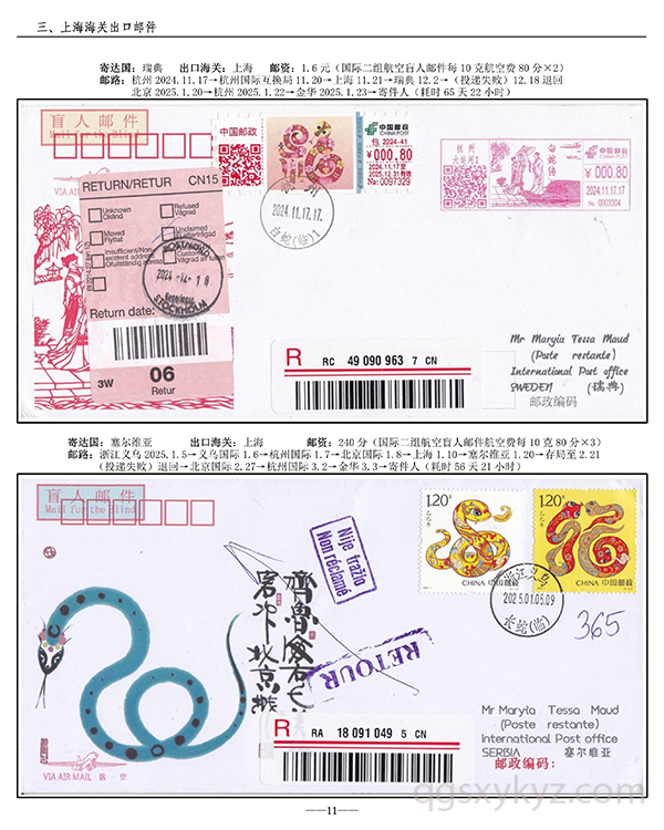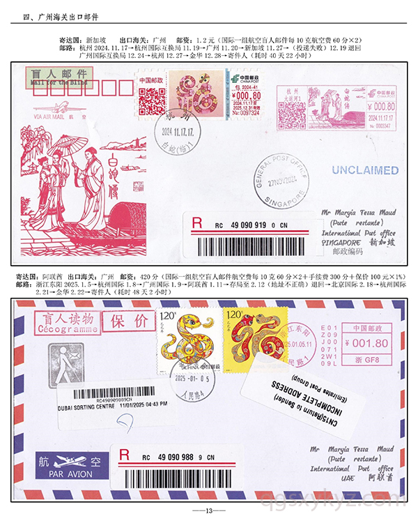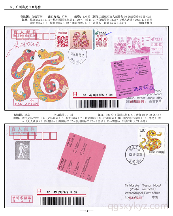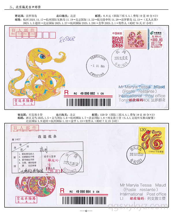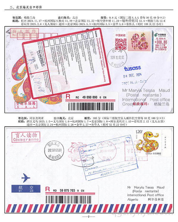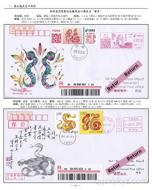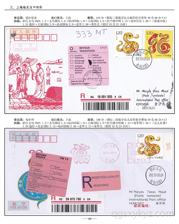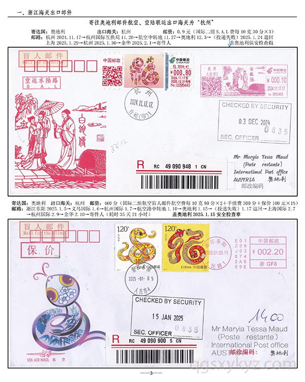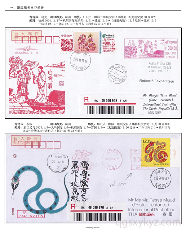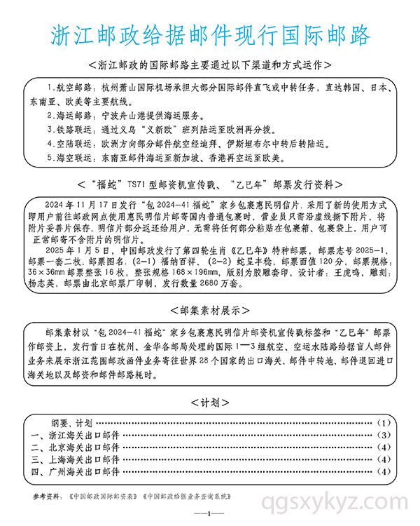 浙江邮政给据邮件现行国际邮路