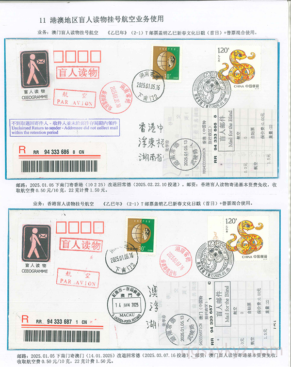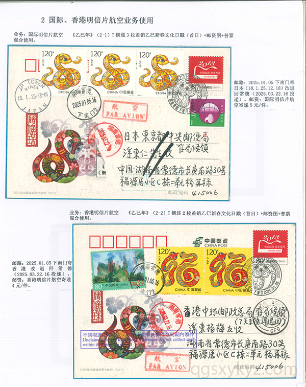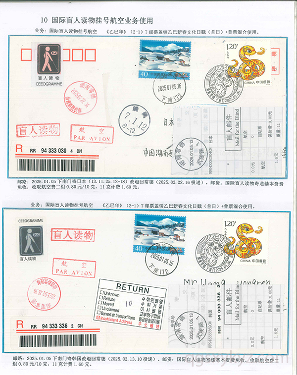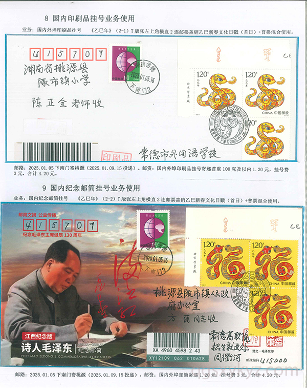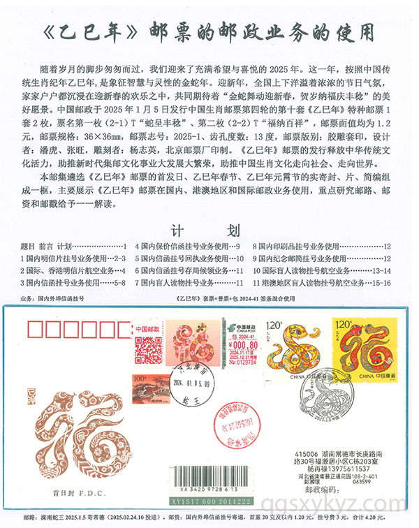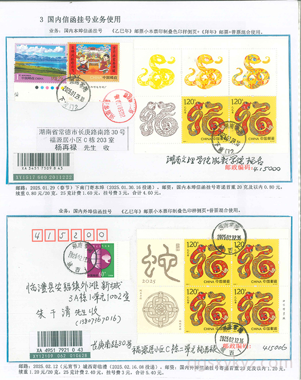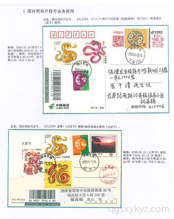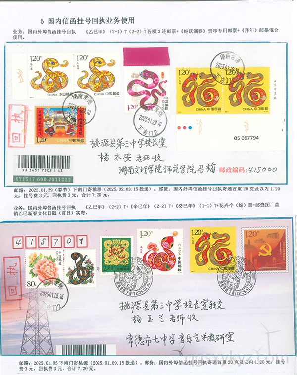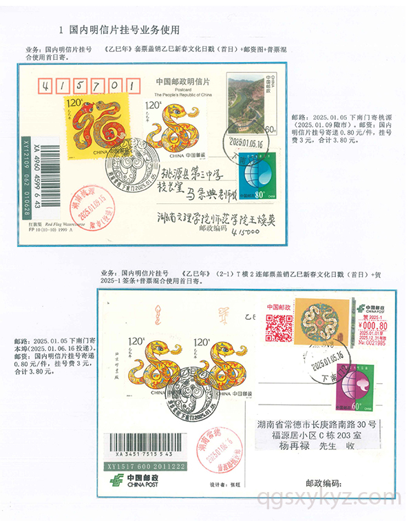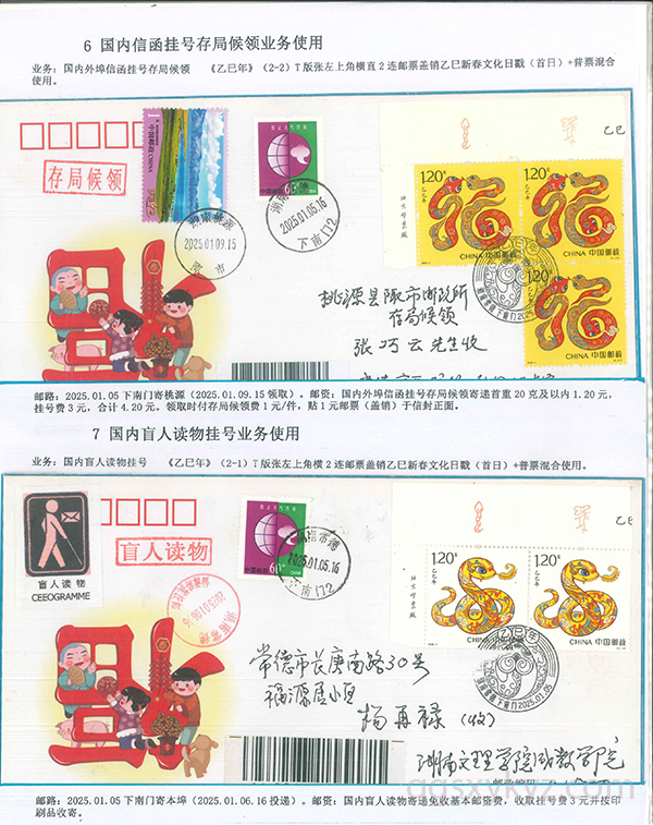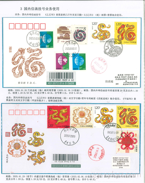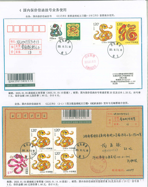 《乙巳年》邮票的邮政业务的使用