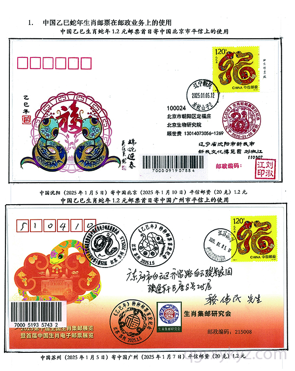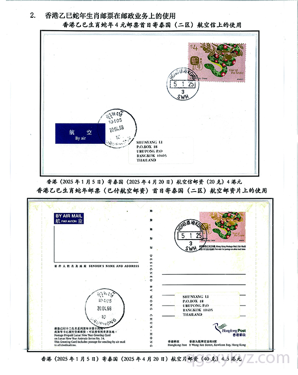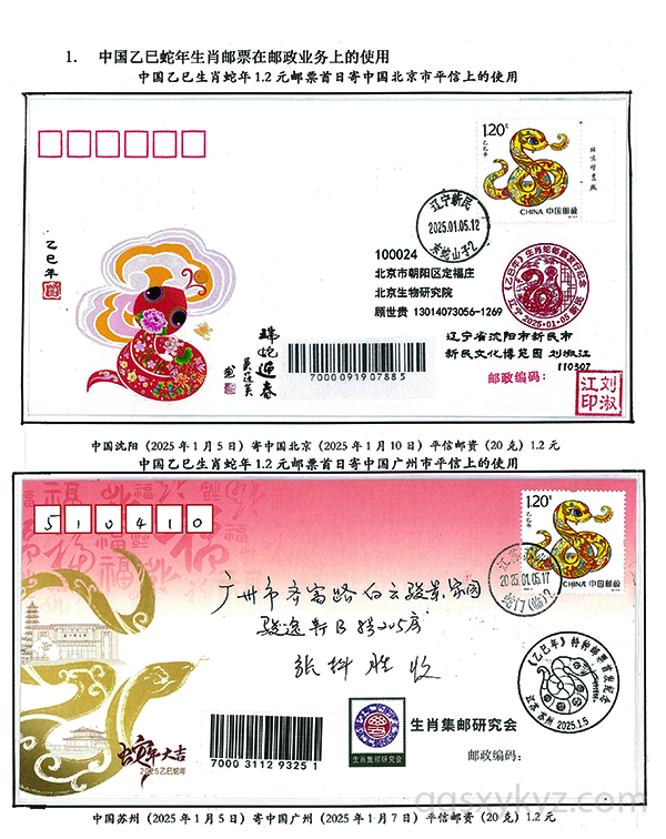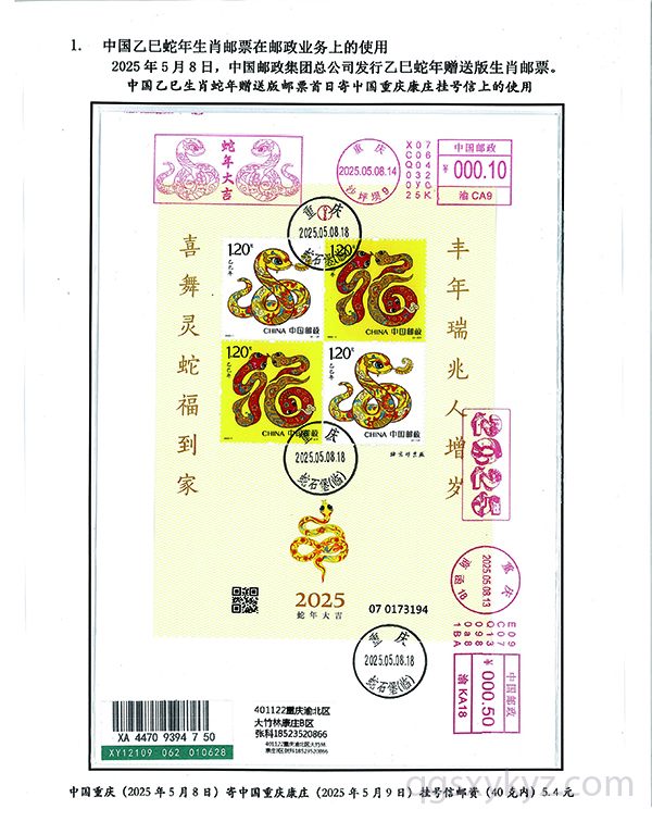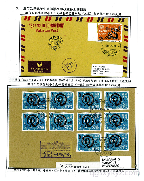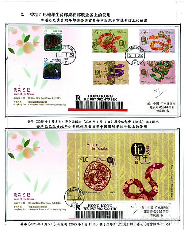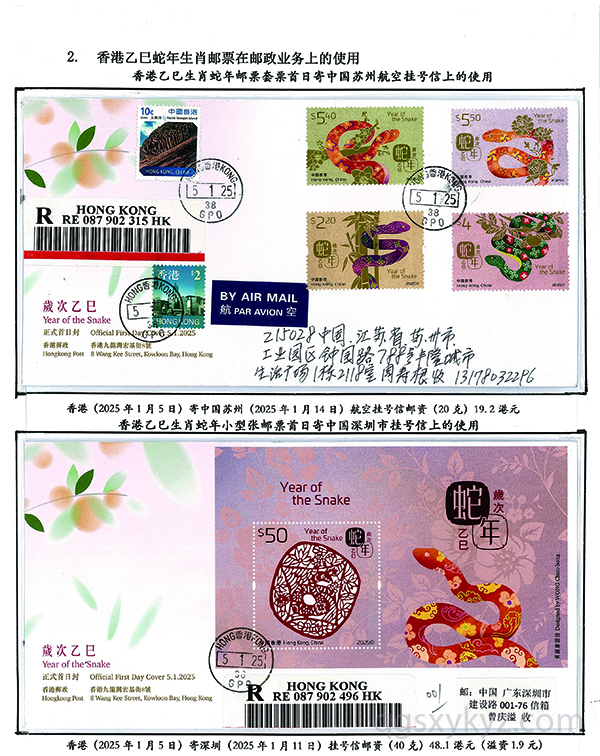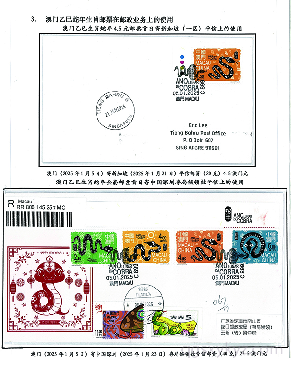 中国、香港、澳门乙巳年蛇邮票在邮政业务上的使用