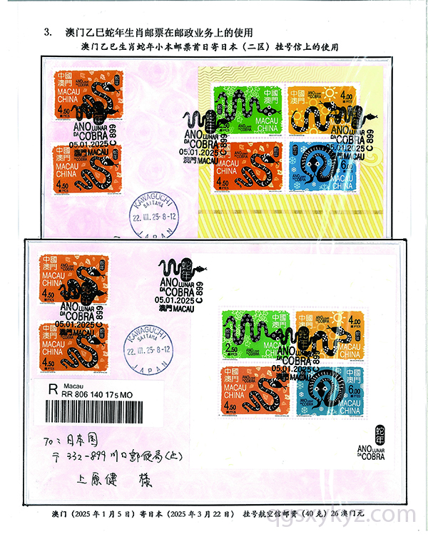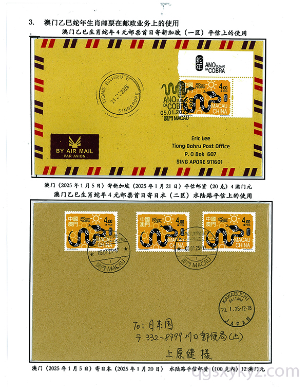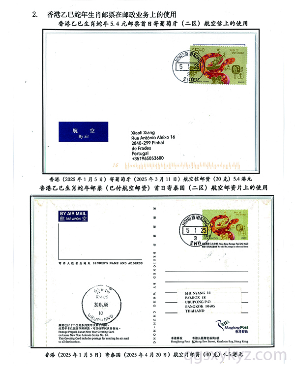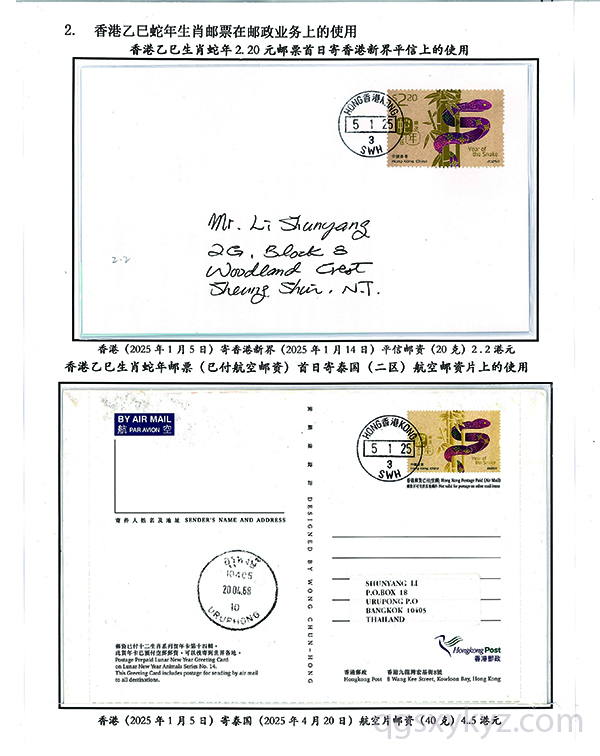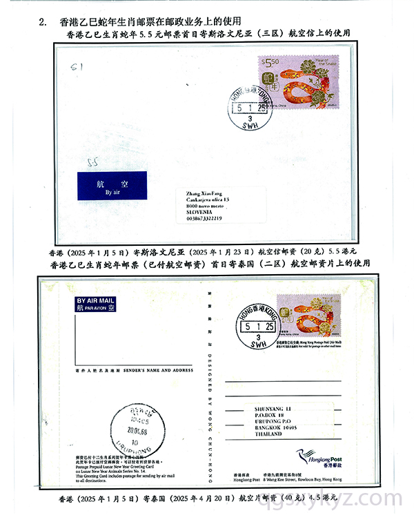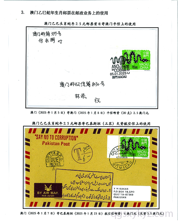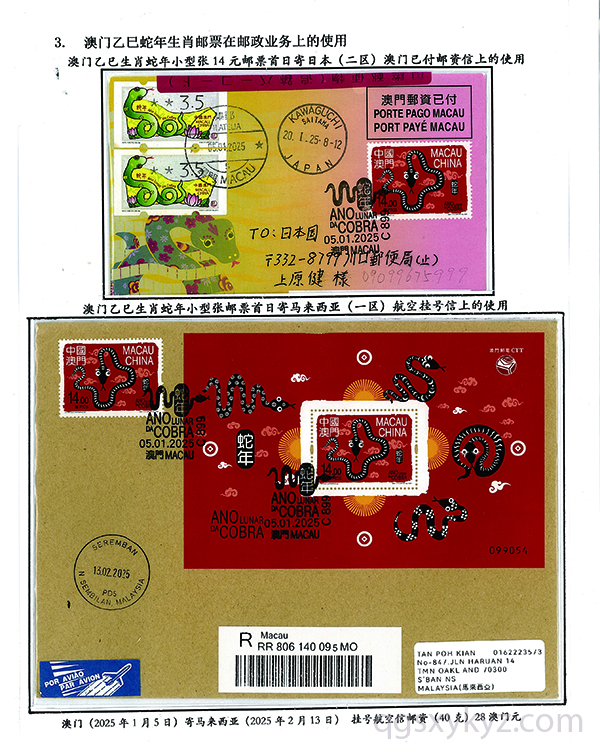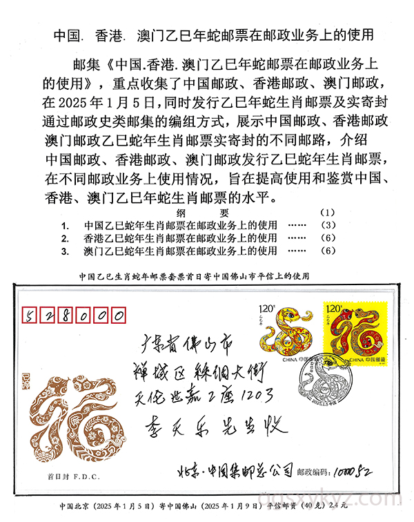 中国、香港、澳门乙巳年蛇邮票在邮政业务上的使用