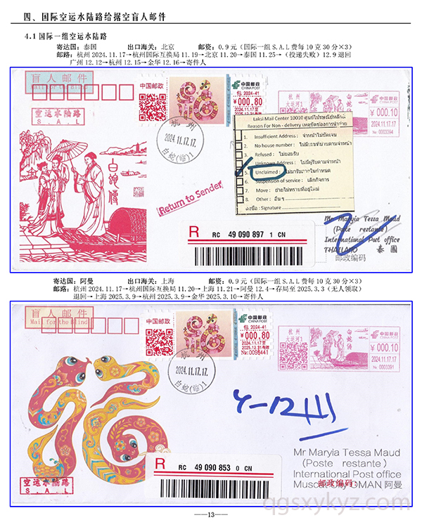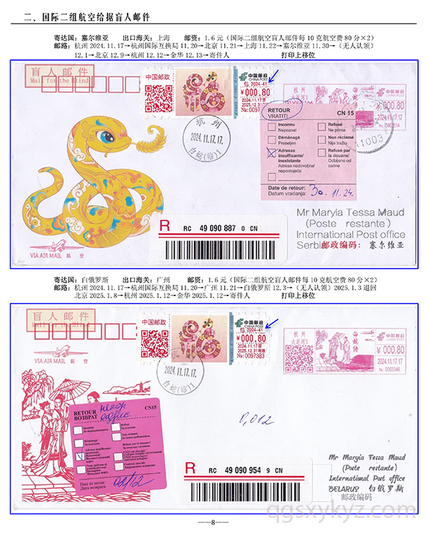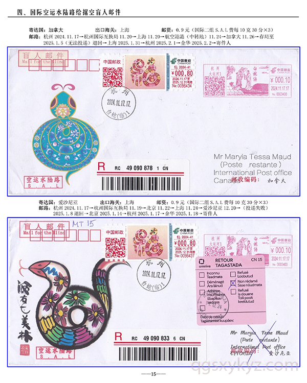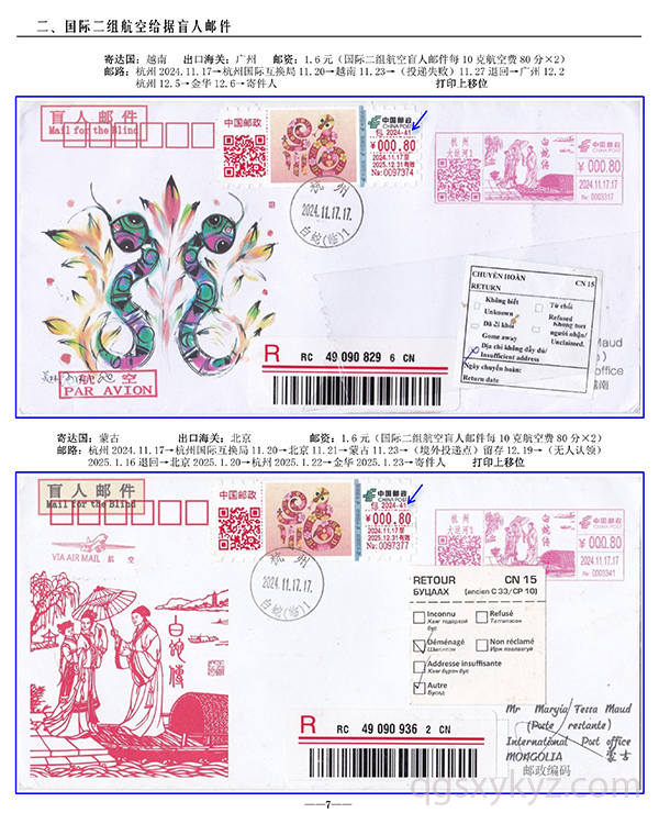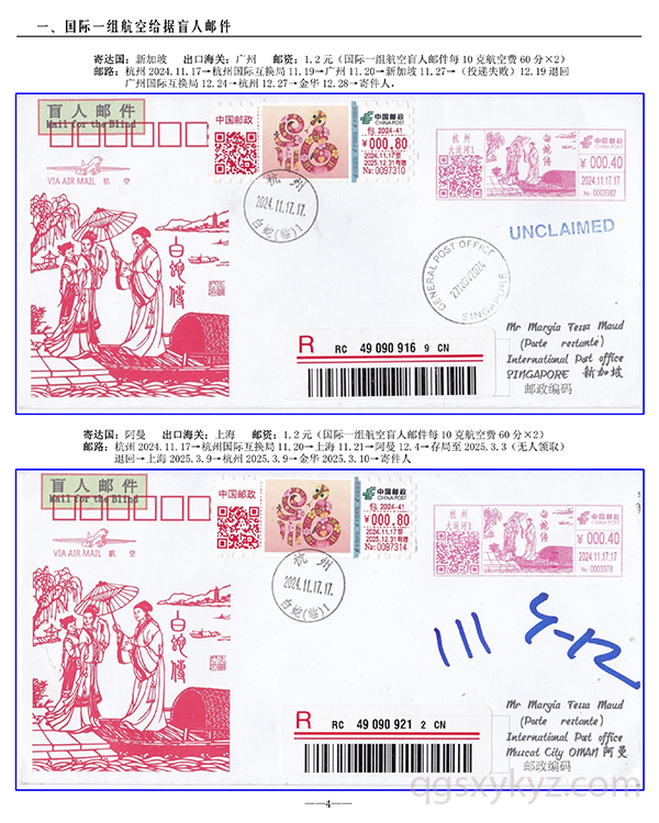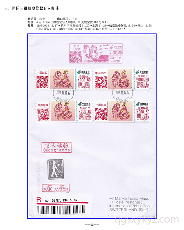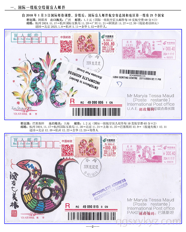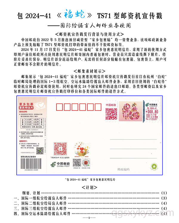 包2024-41《福蛇》TS71型邮资机宣传戳--国际给据盲人邮件业务使用?