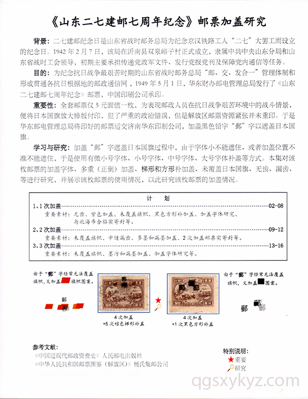 《山东二七建邮七周年纪念》邮票加盖研究