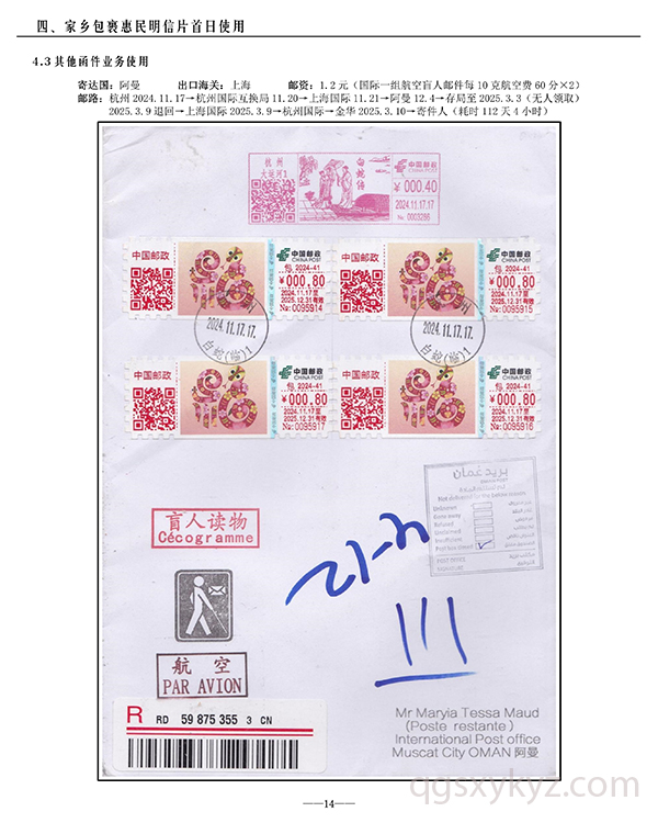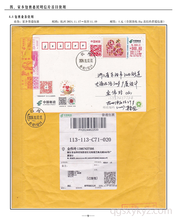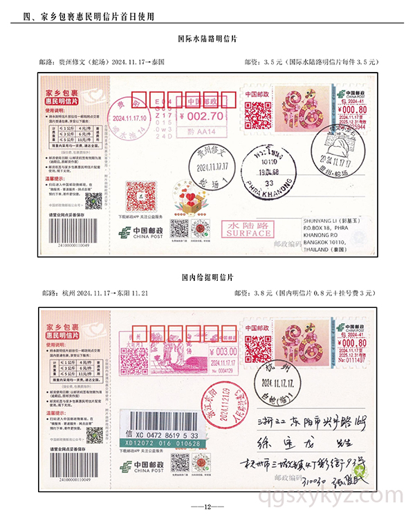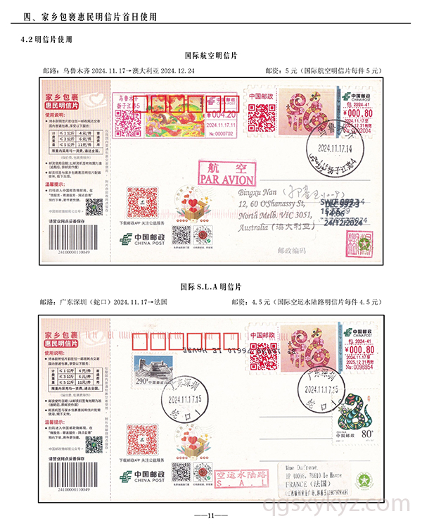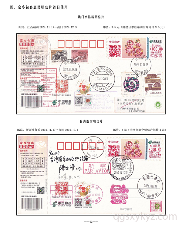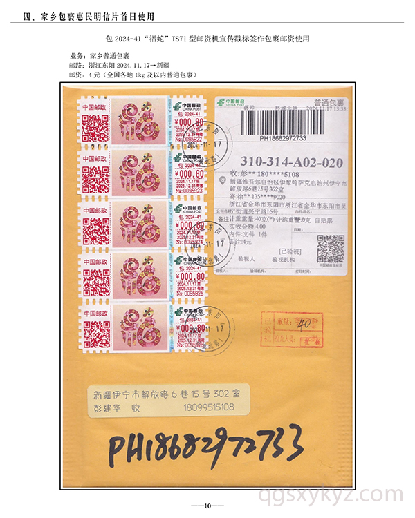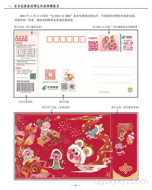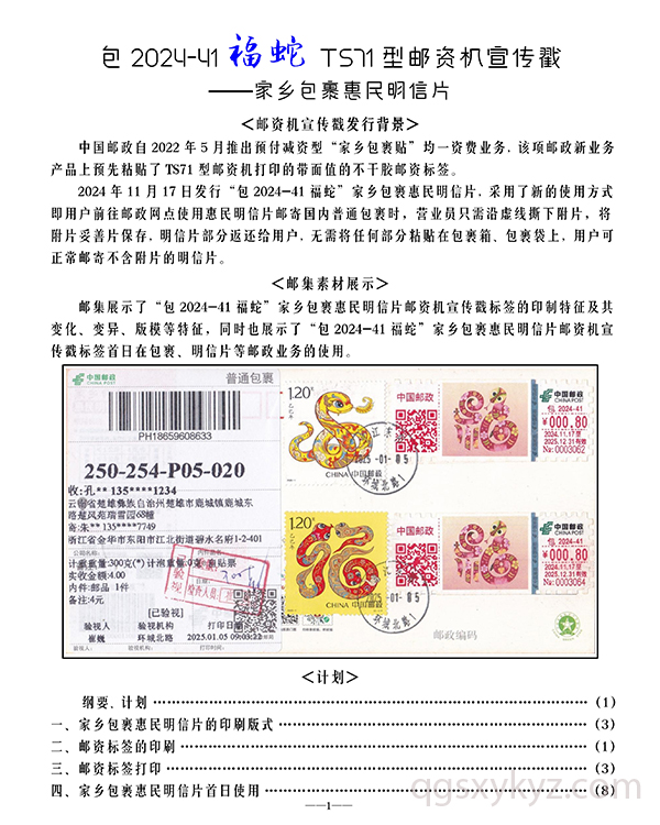 包2024-41福蛇TS71型邮资机宣传戳--家乡包裹惠民明信片