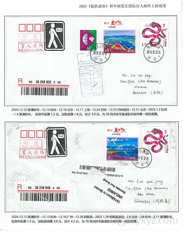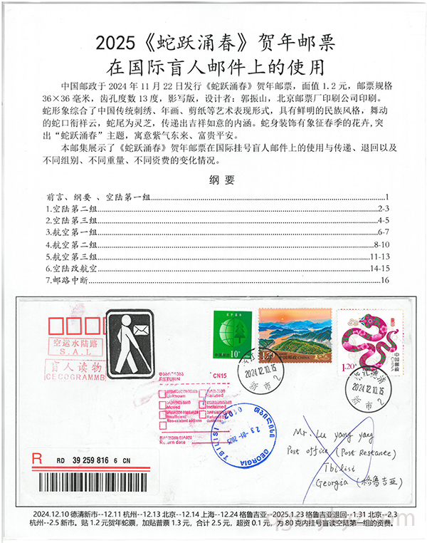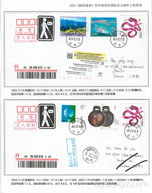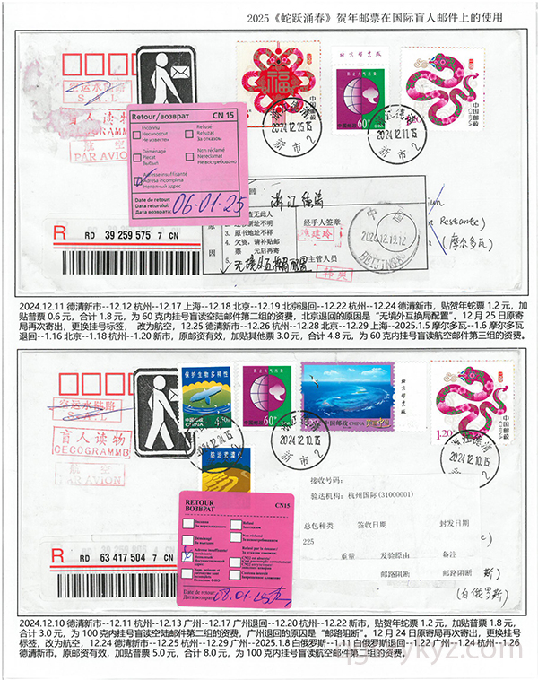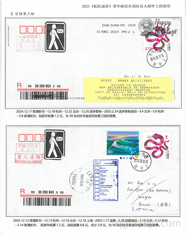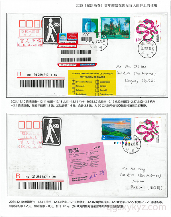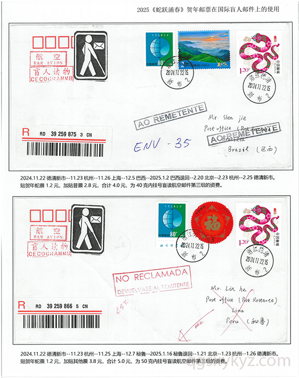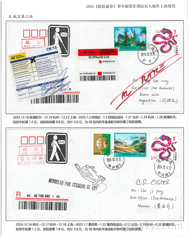2025《蛇跃涌春》贺年邮票在国际盲人邮件上的使用