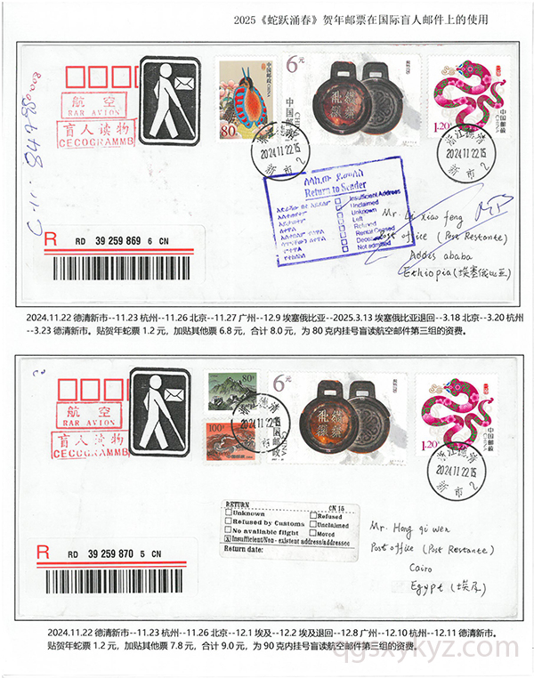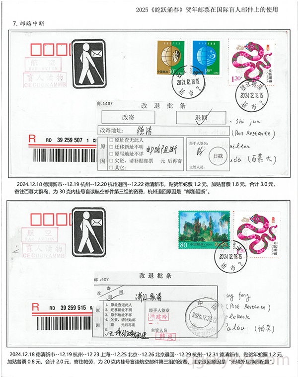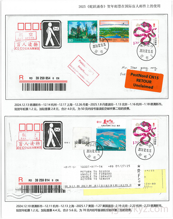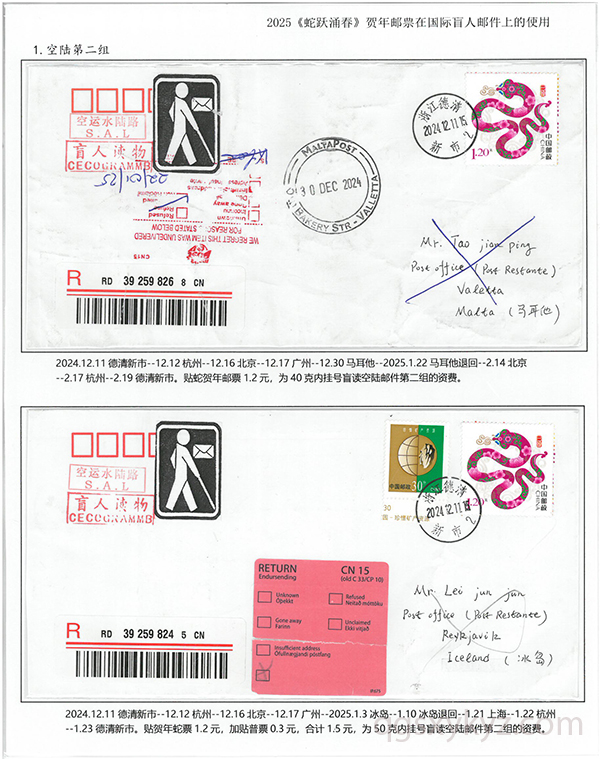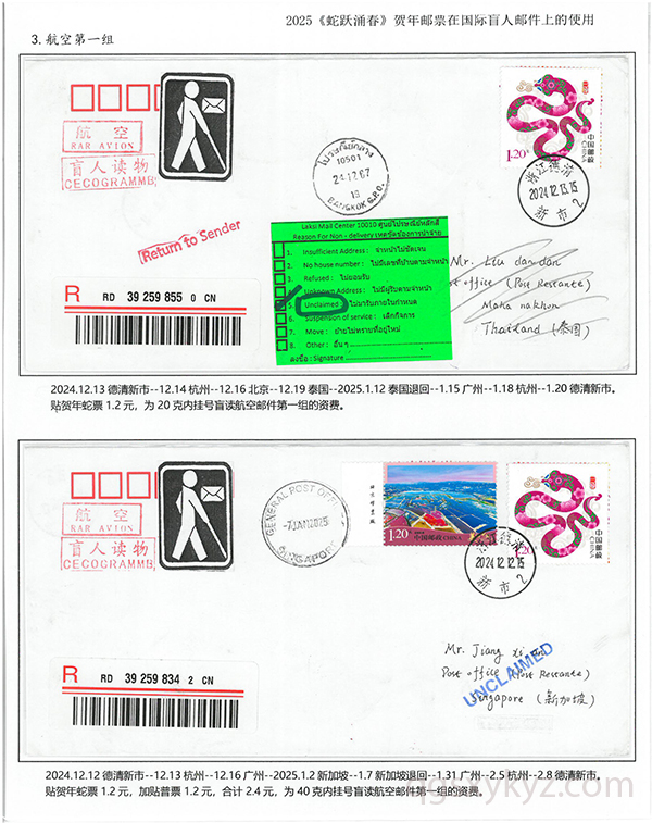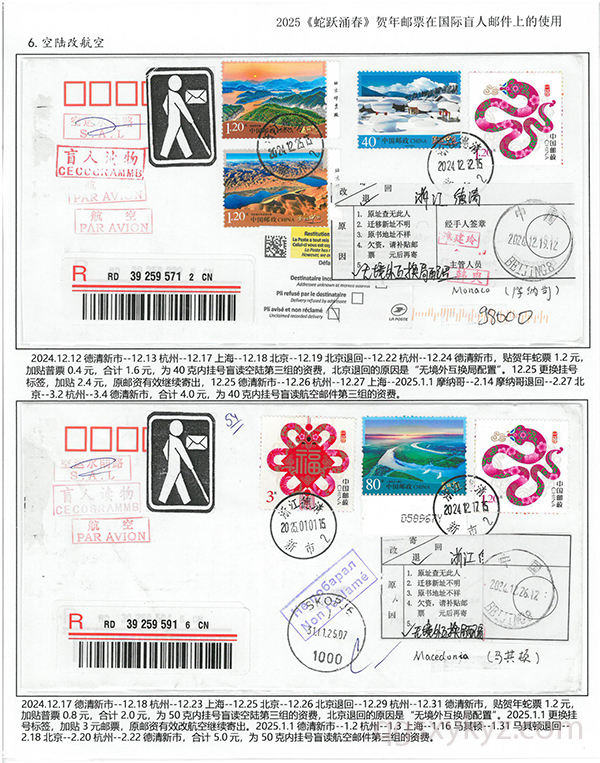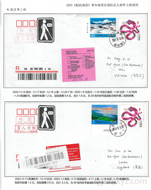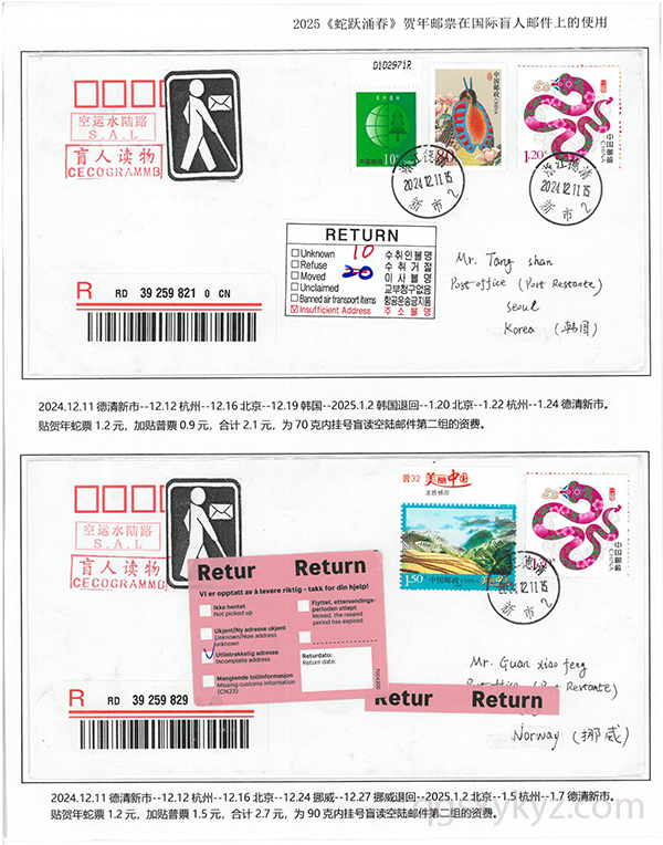 2025《蛇跃涌春》贺年邮票在国际盲人邮件上的使用