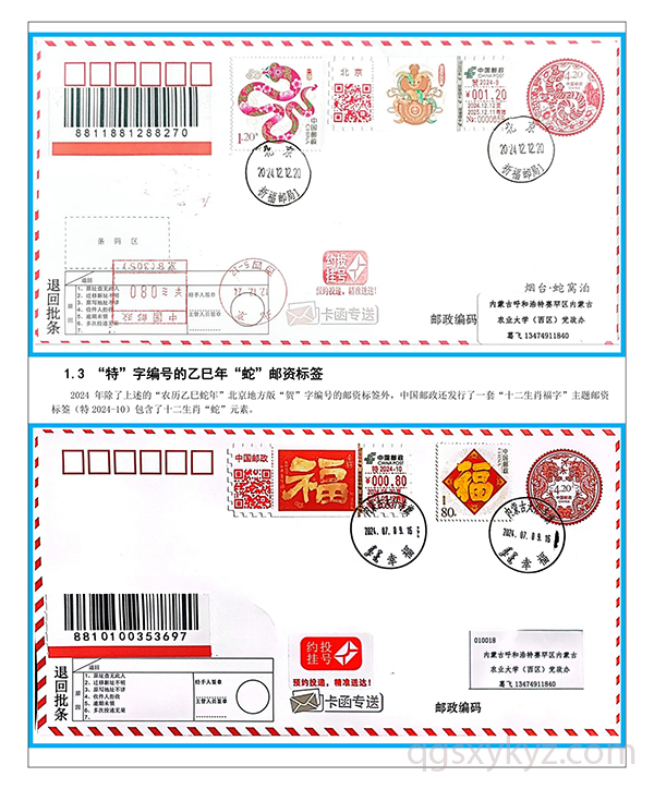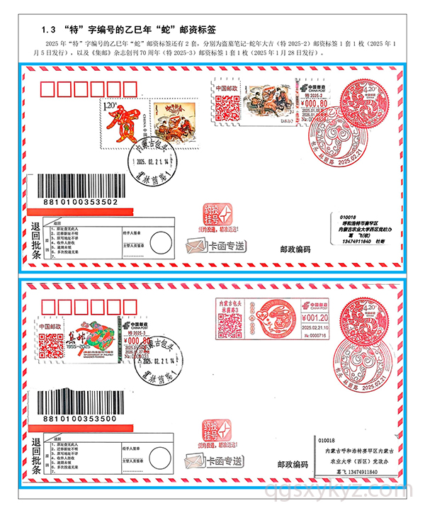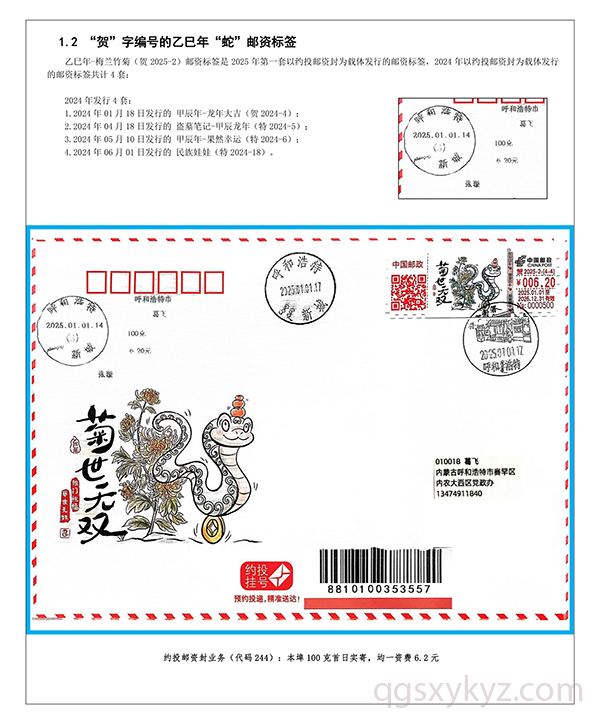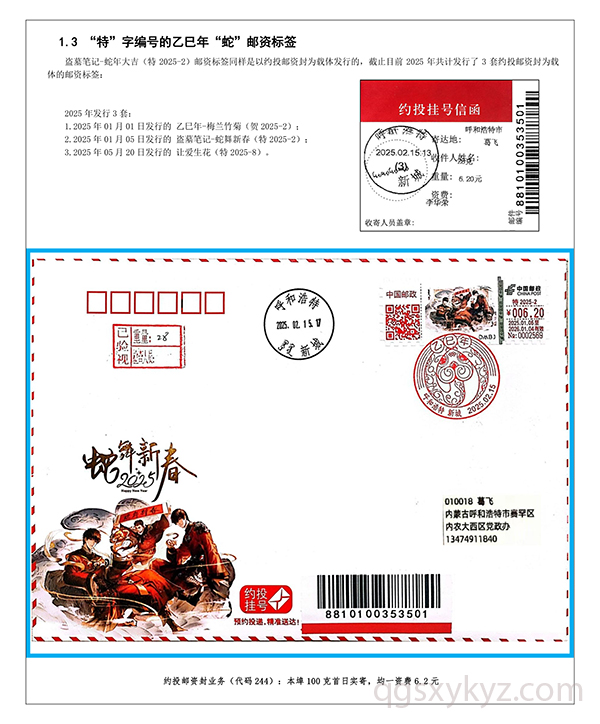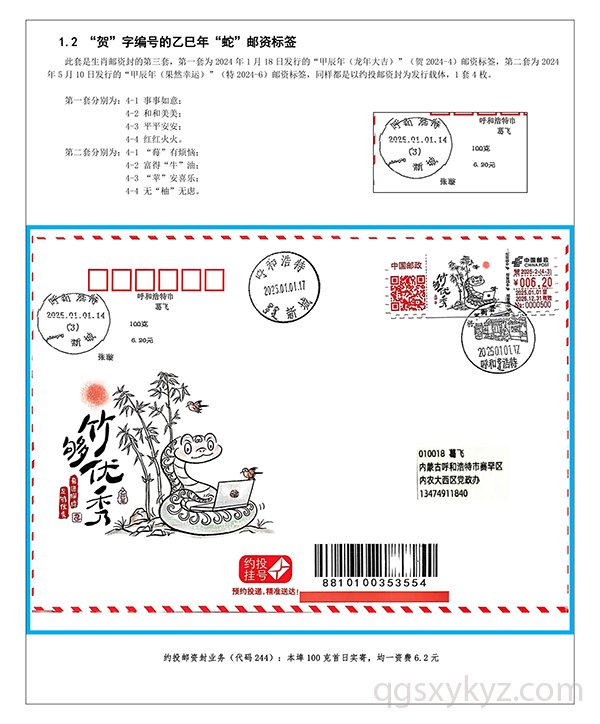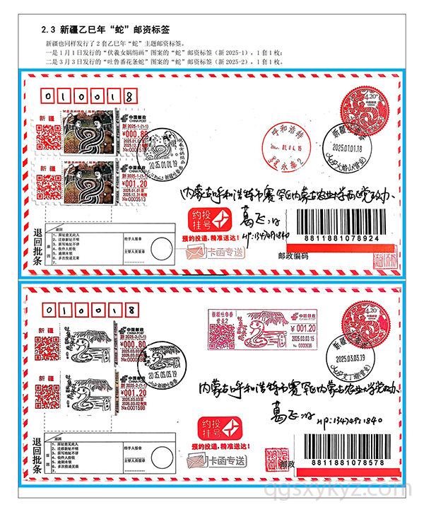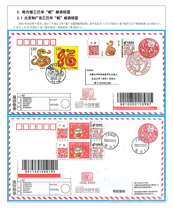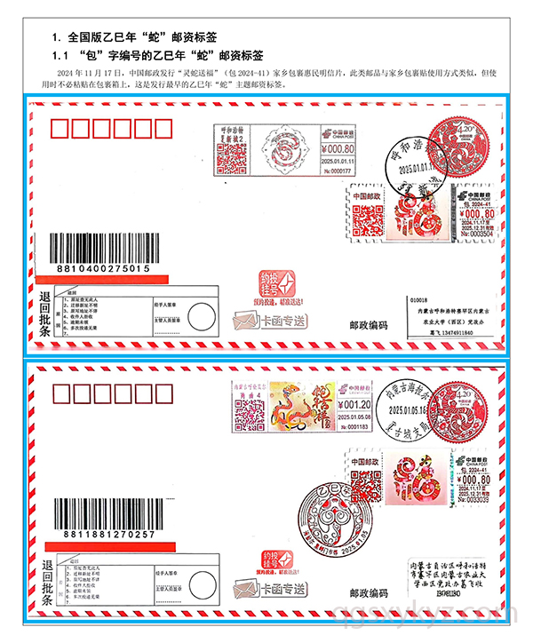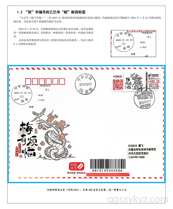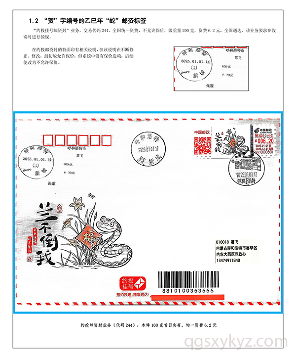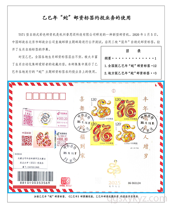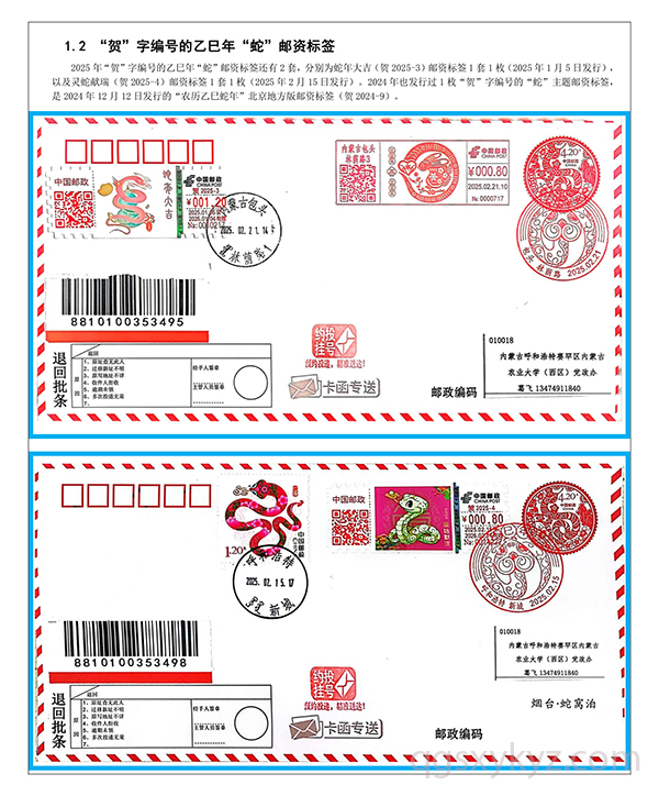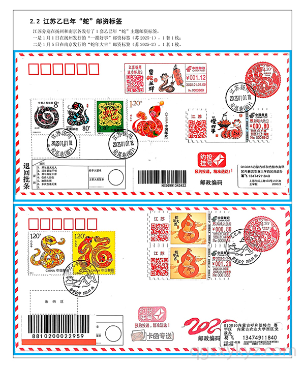 乙巳年“蛇”邮资标签约投业务的使用
