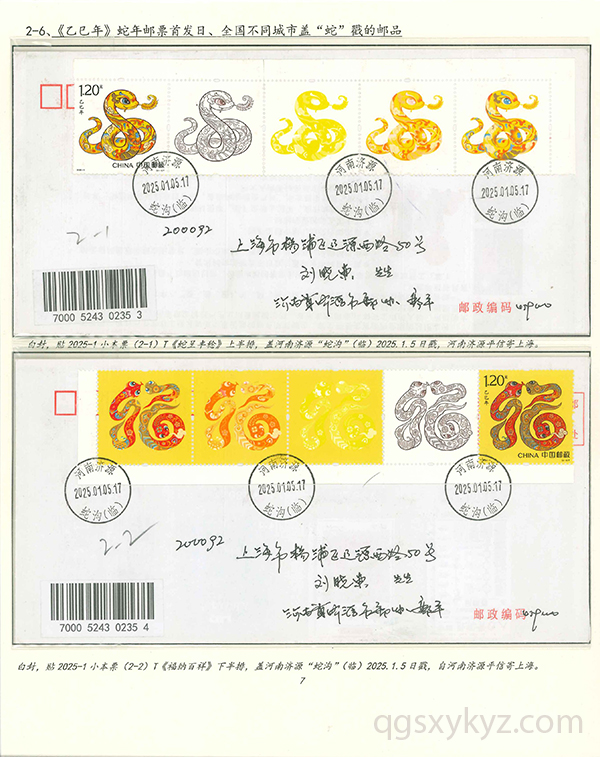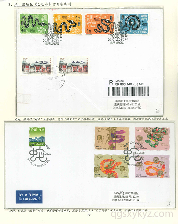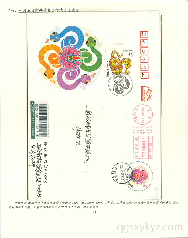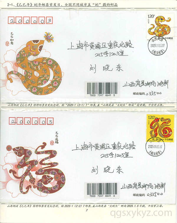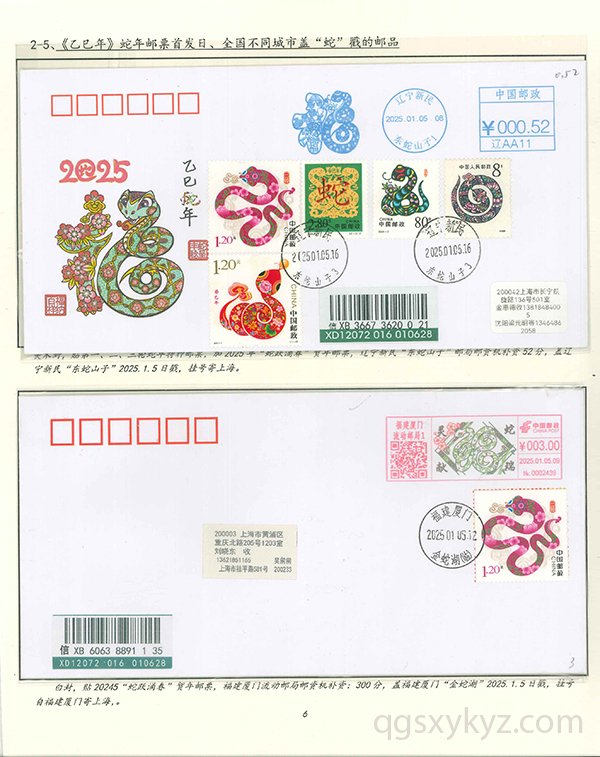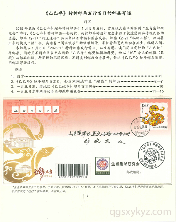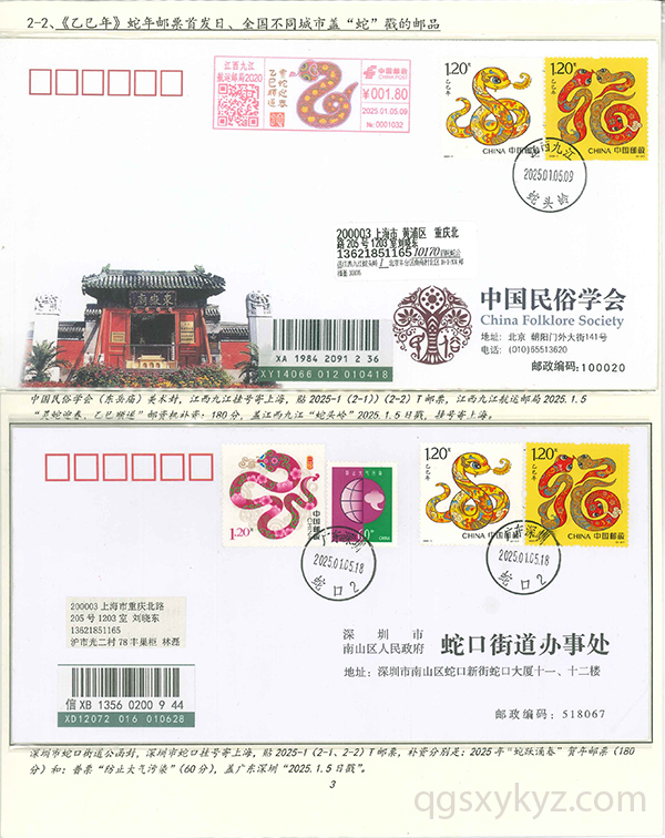 《乙巳年》特种邮票发行首日的邮品寄递