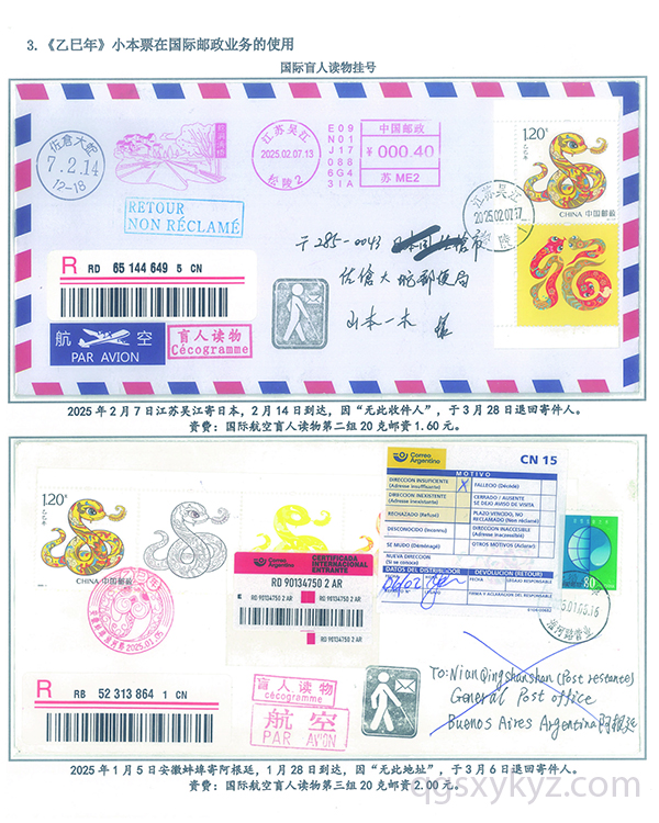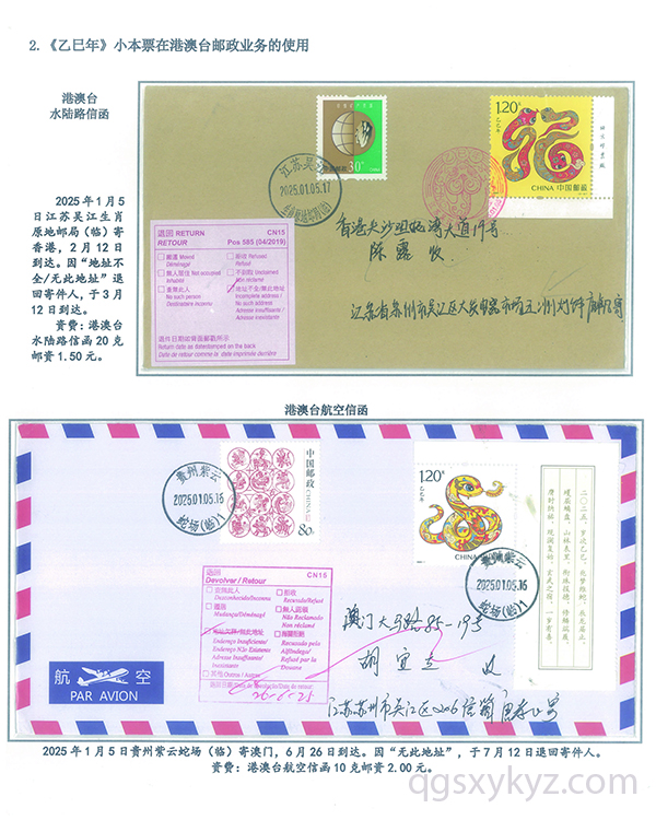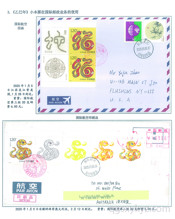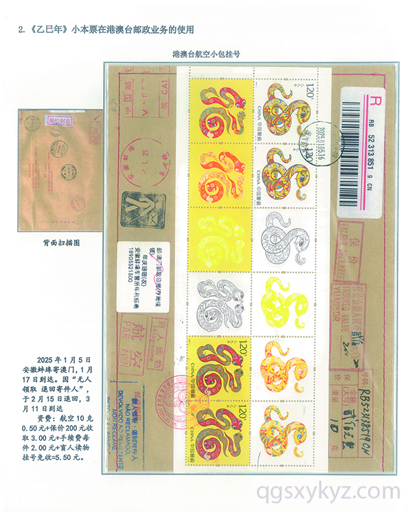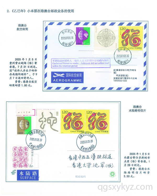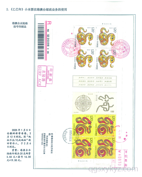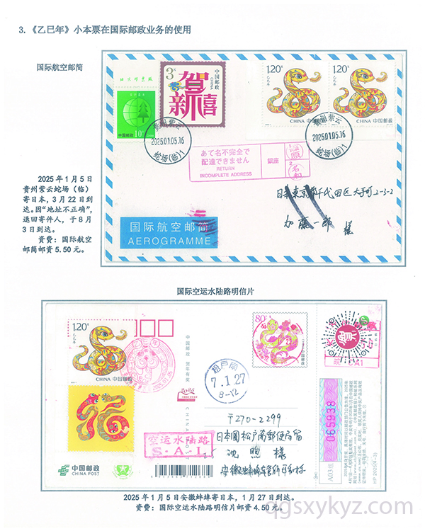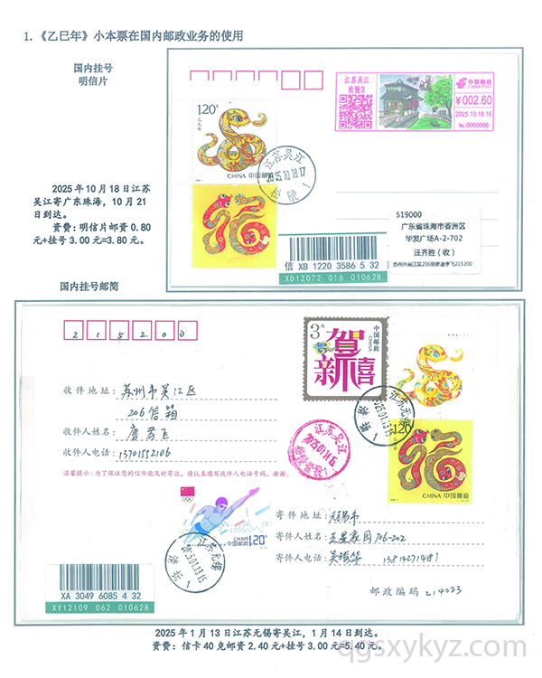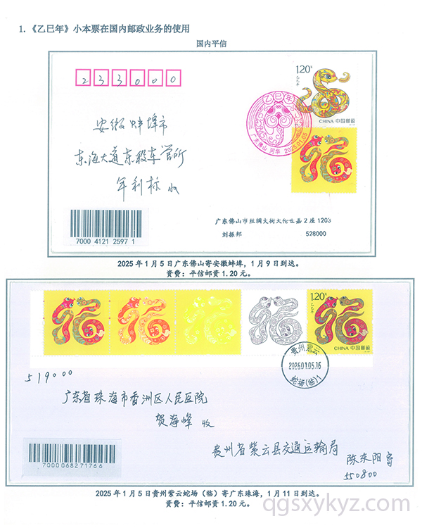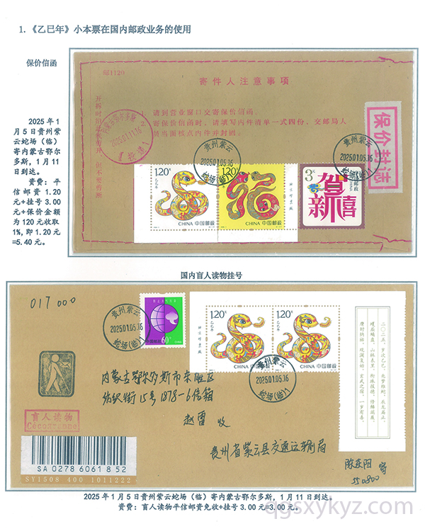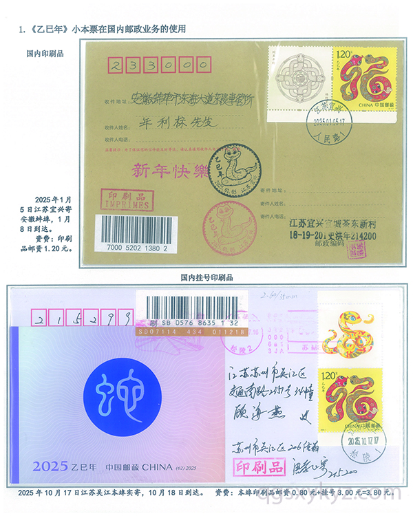 《乙巳年》小本票的邮政使用