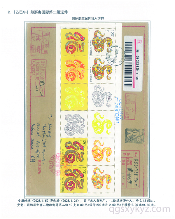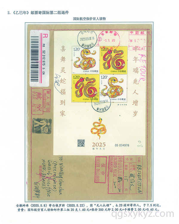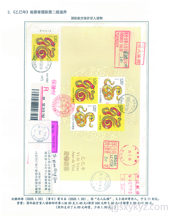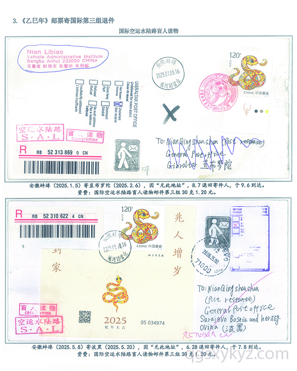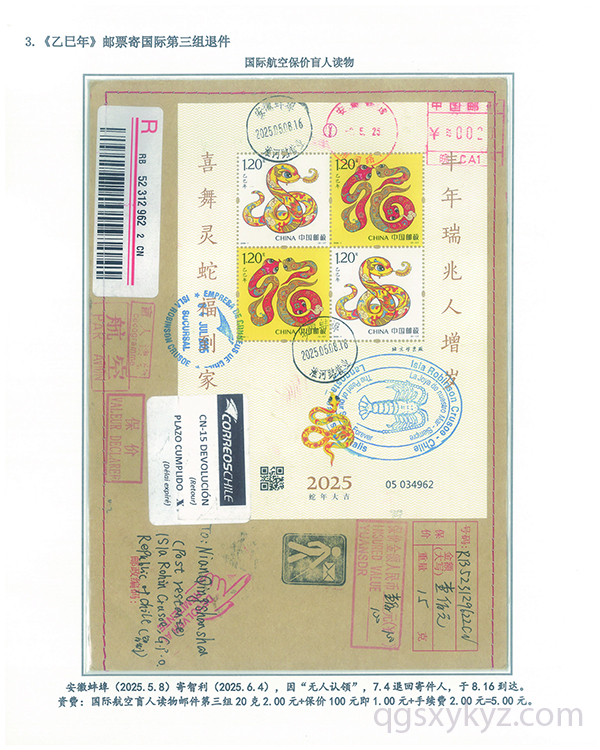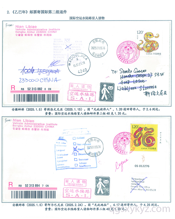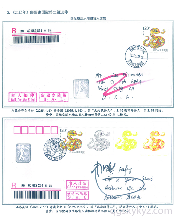 《乙巳年》邮票国际盲人读物退件