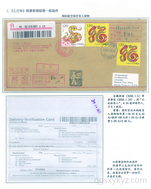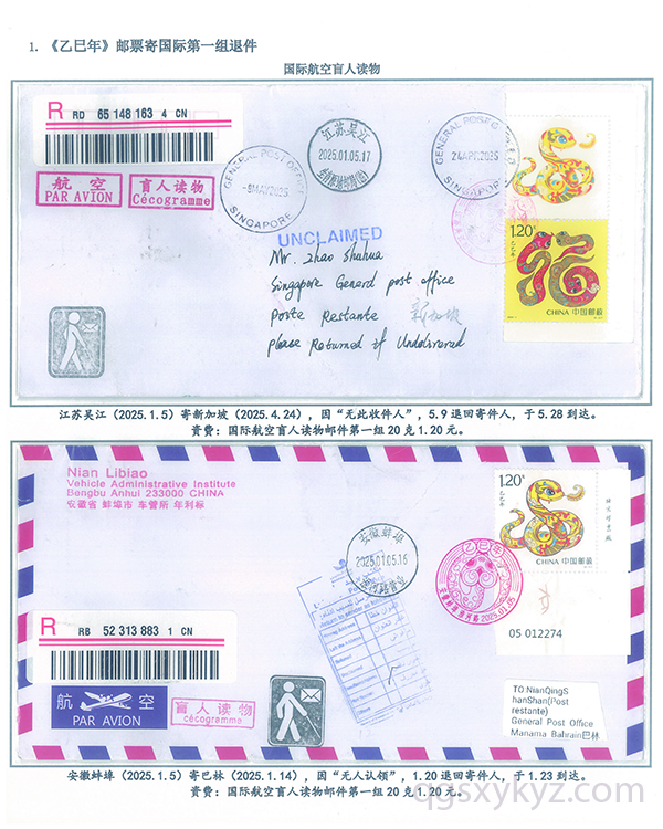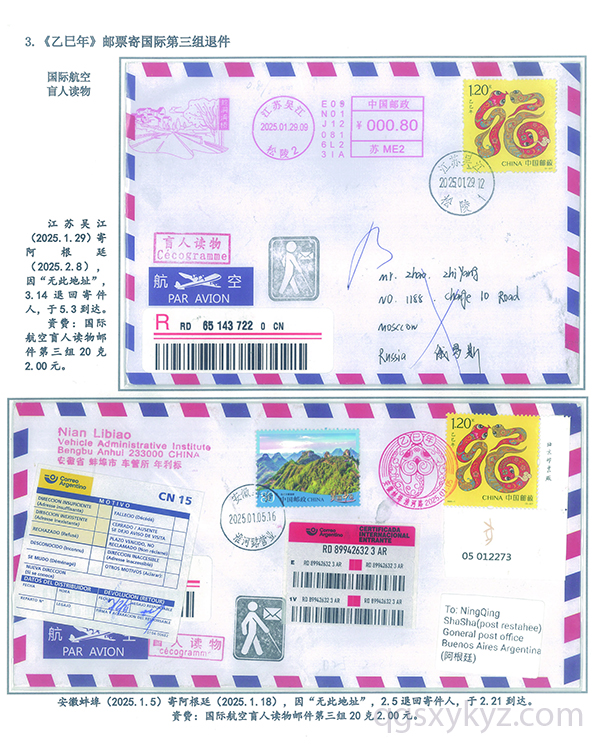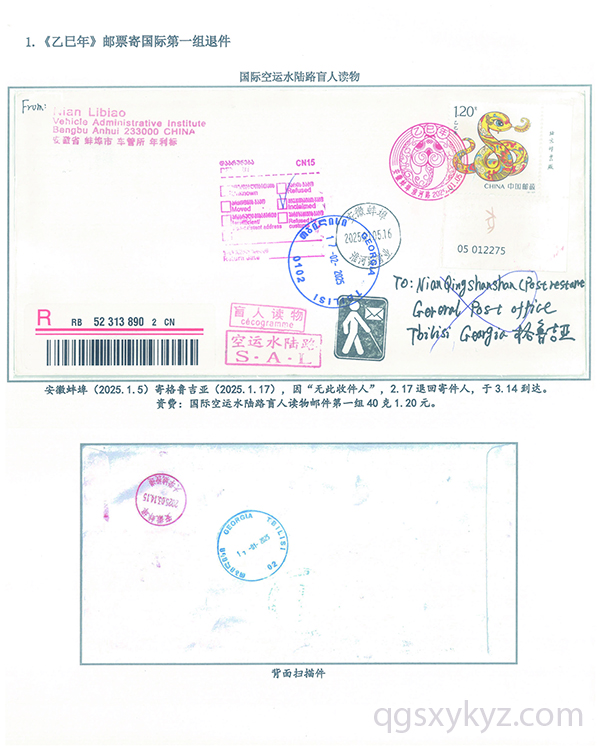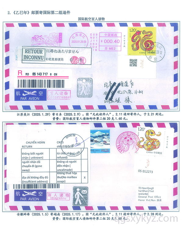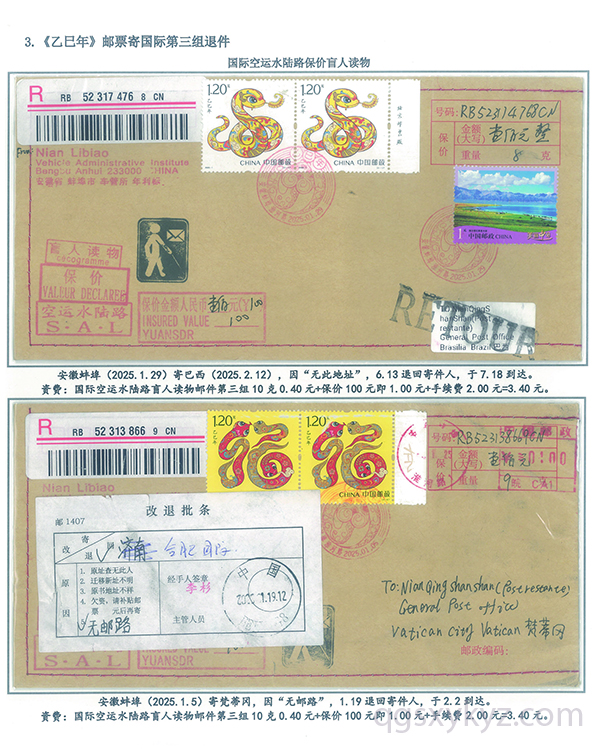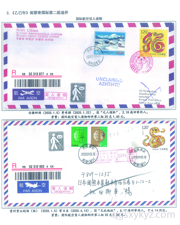 《乙巳年》邮票国际盲人读物退件