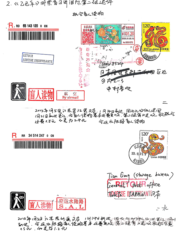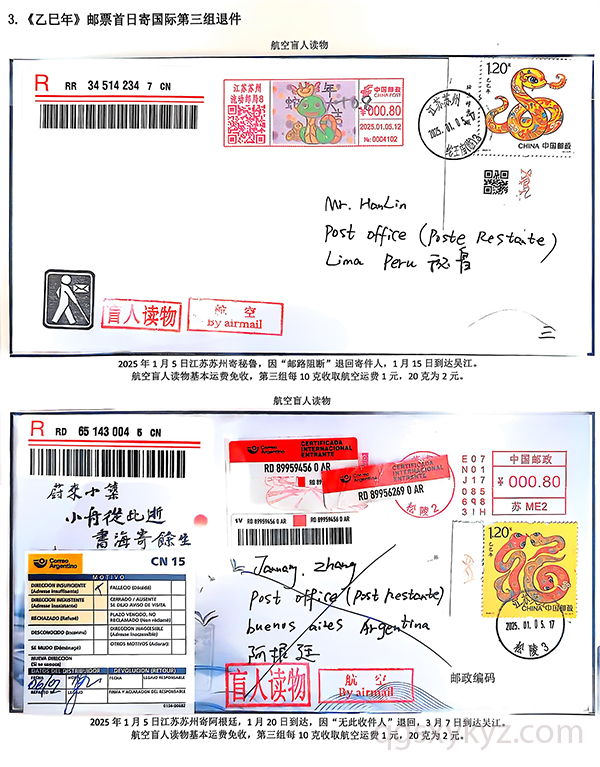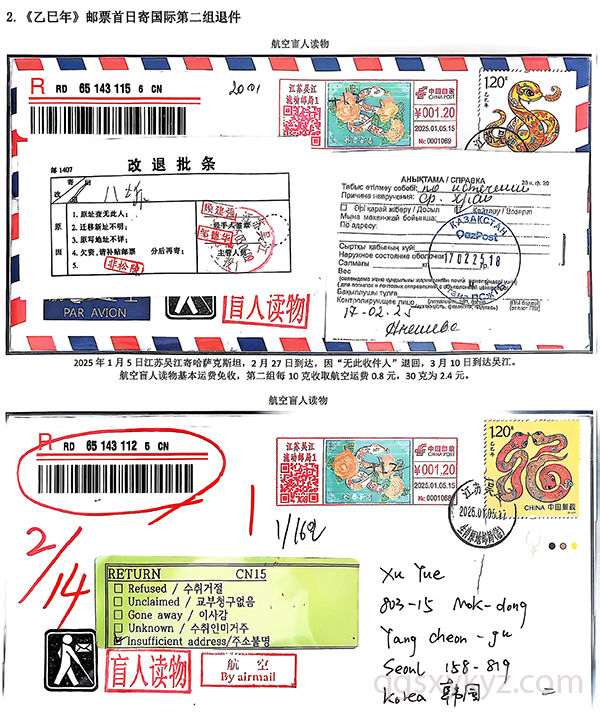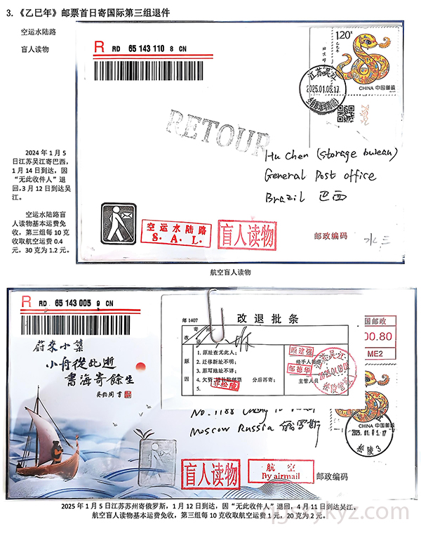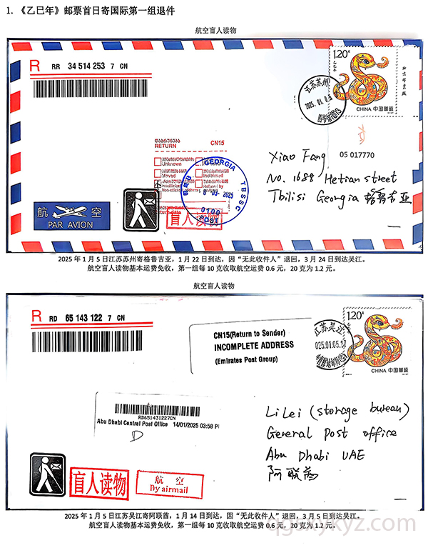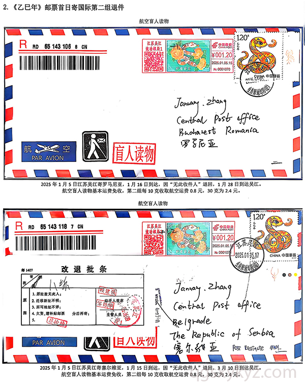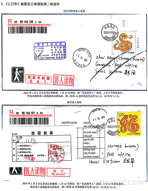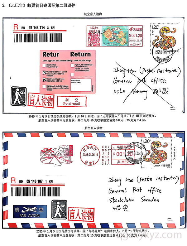 《乙巳年》邮票首日国际盲人读物退件
