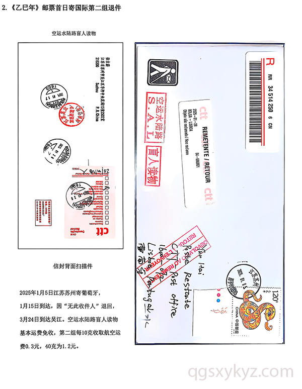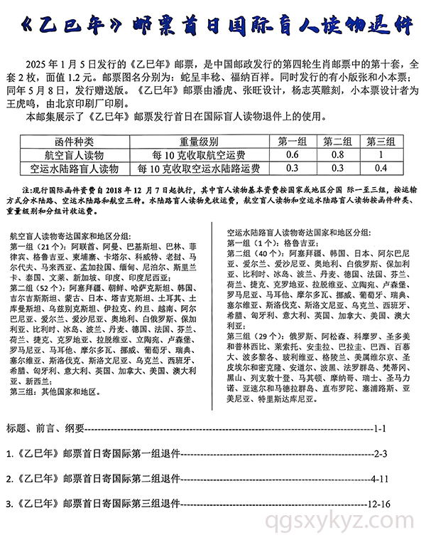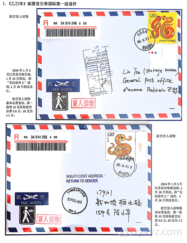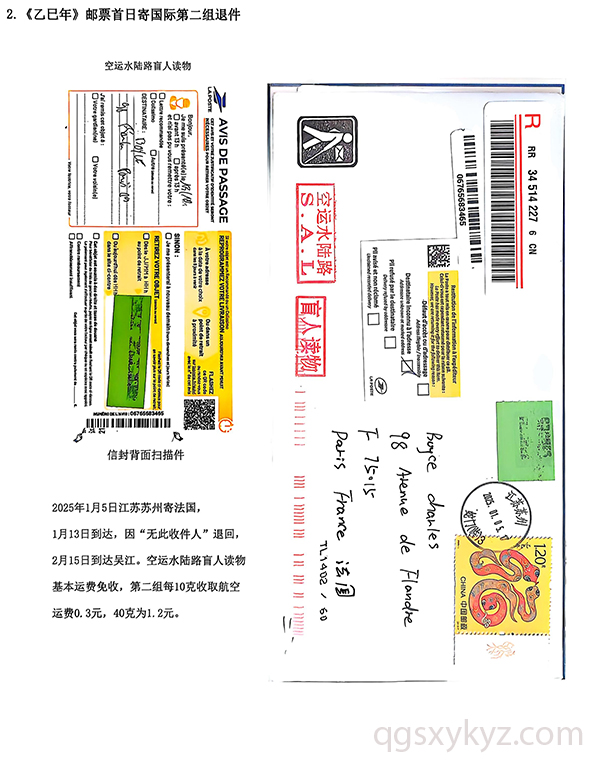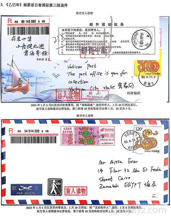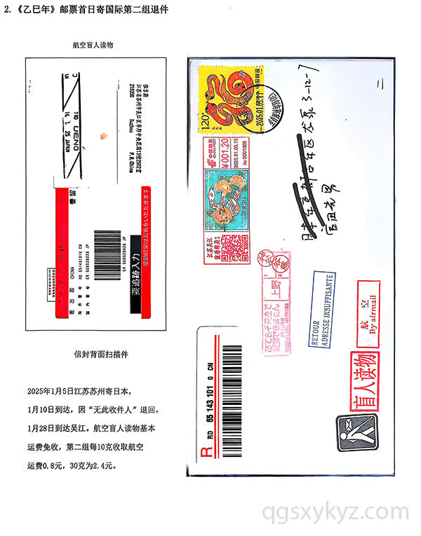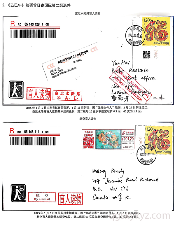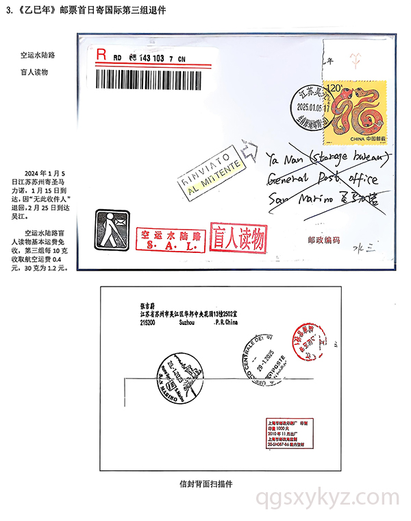 《乙巳年》邮票首日国际盲人读物退件