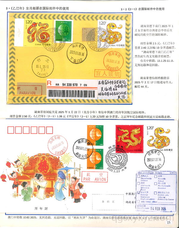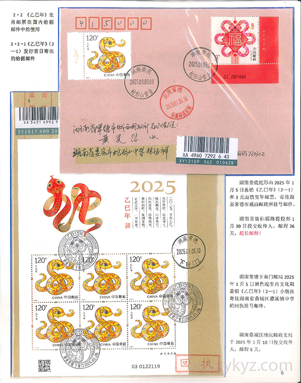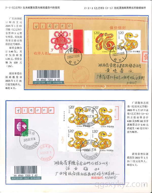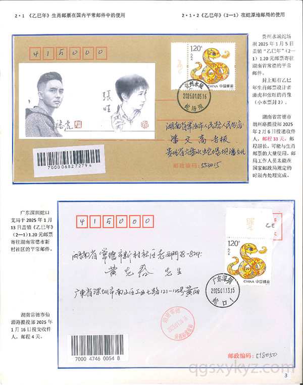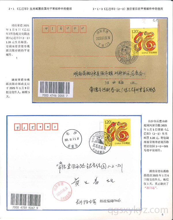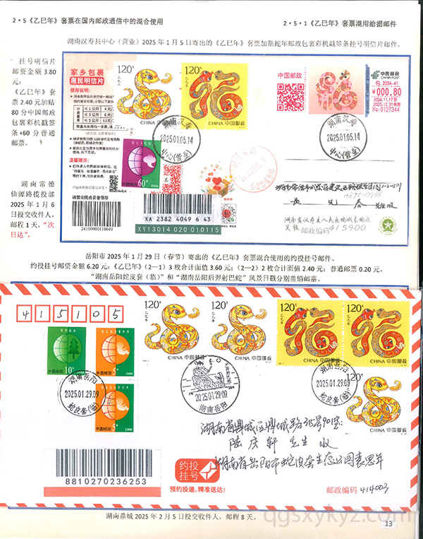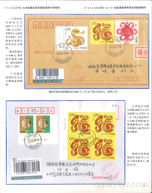 《乙巳年》生肖邮票在邮政通信中的使用
