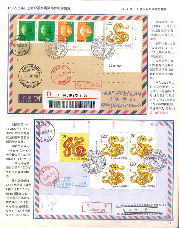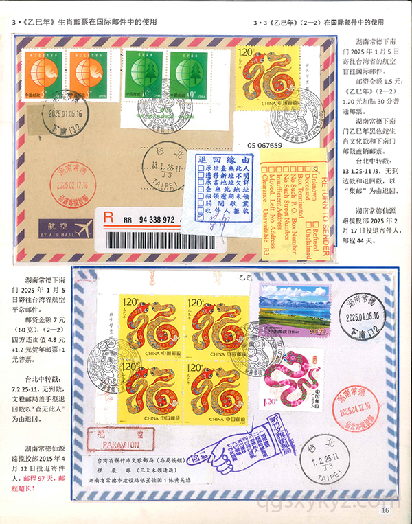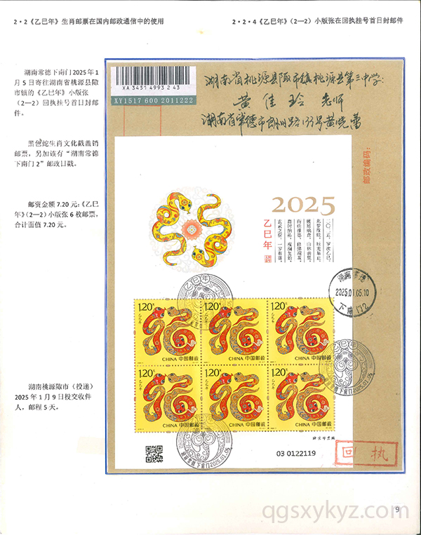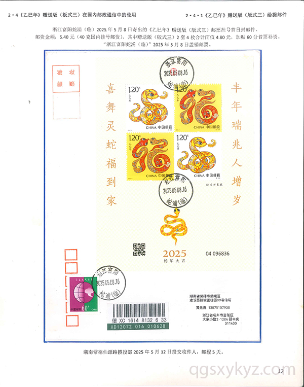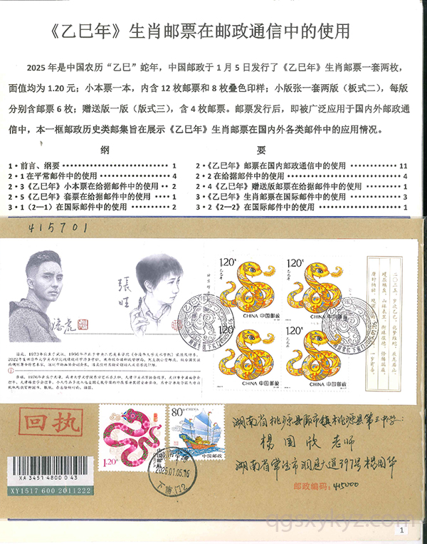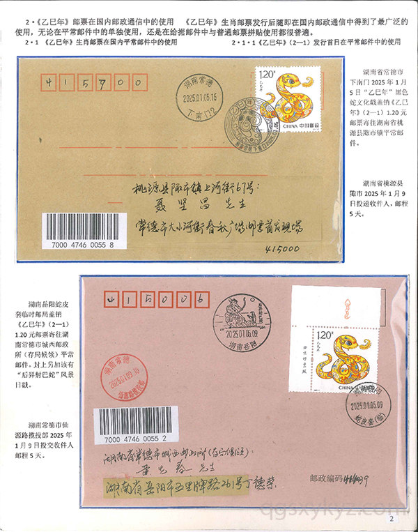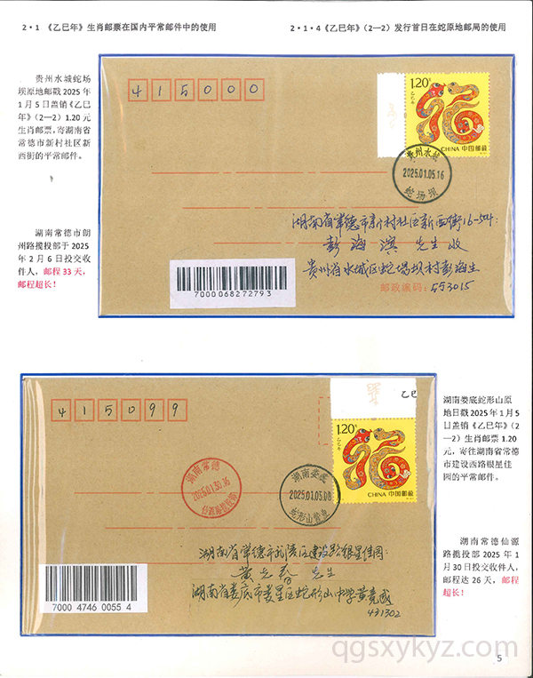 《乙巳年》生肖邮票在邮政通信中的使用