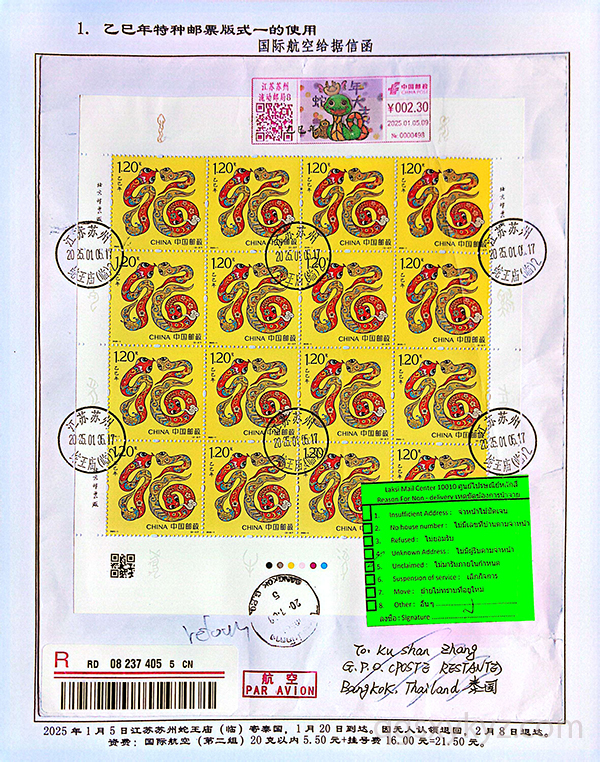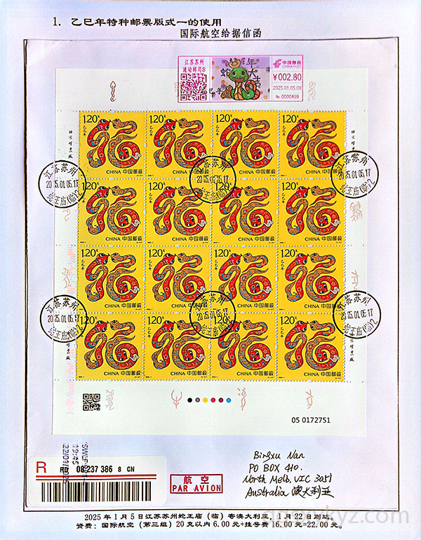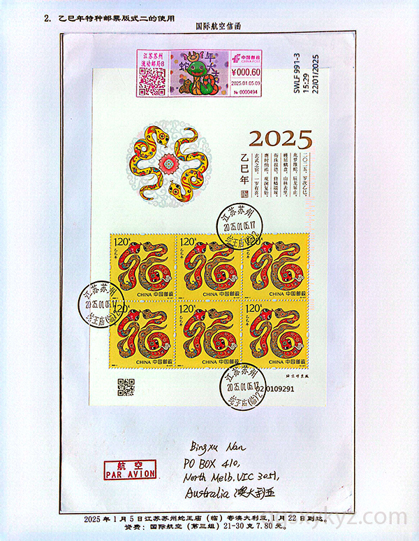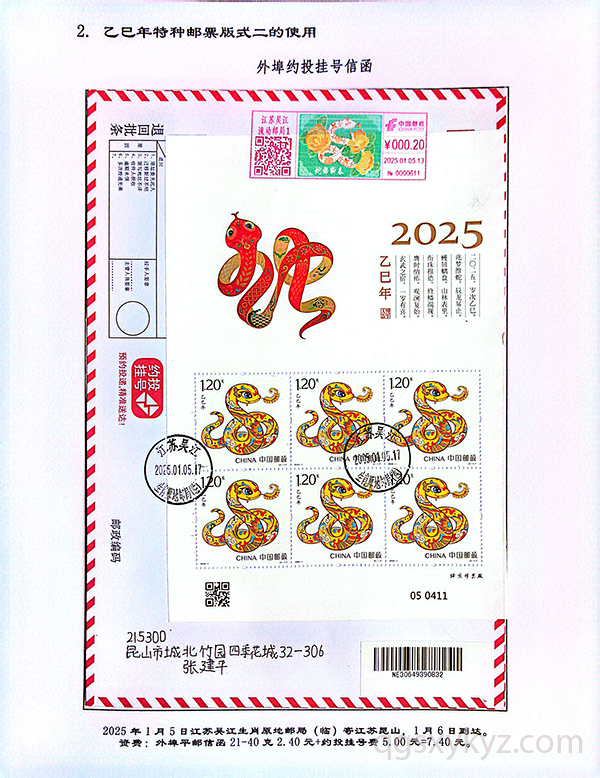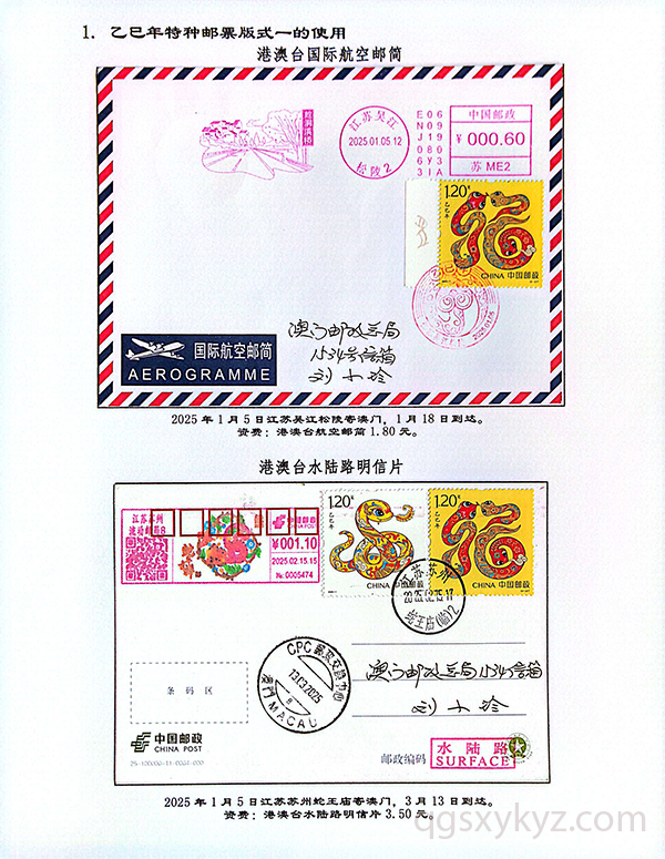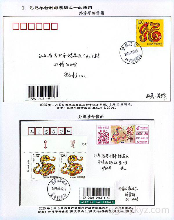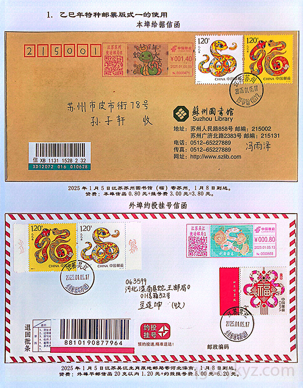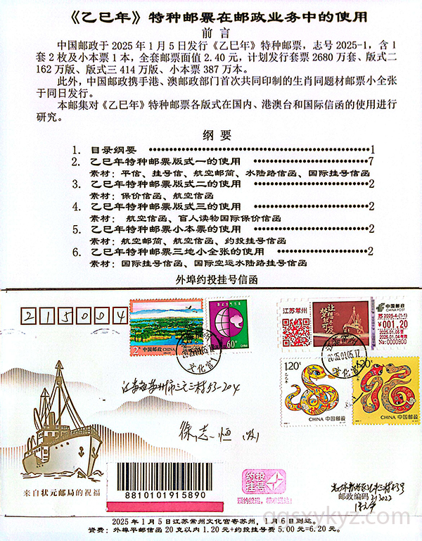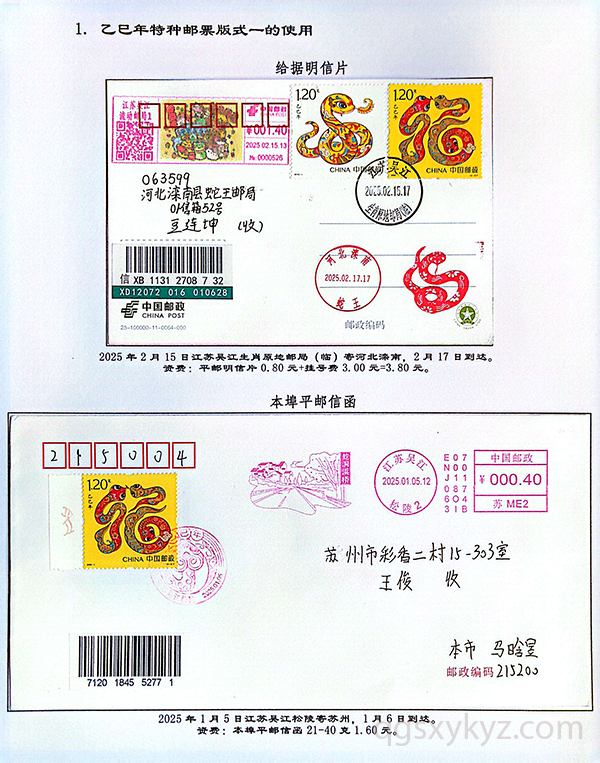 《乙巳年》特种邮票在邮政业务中的使用