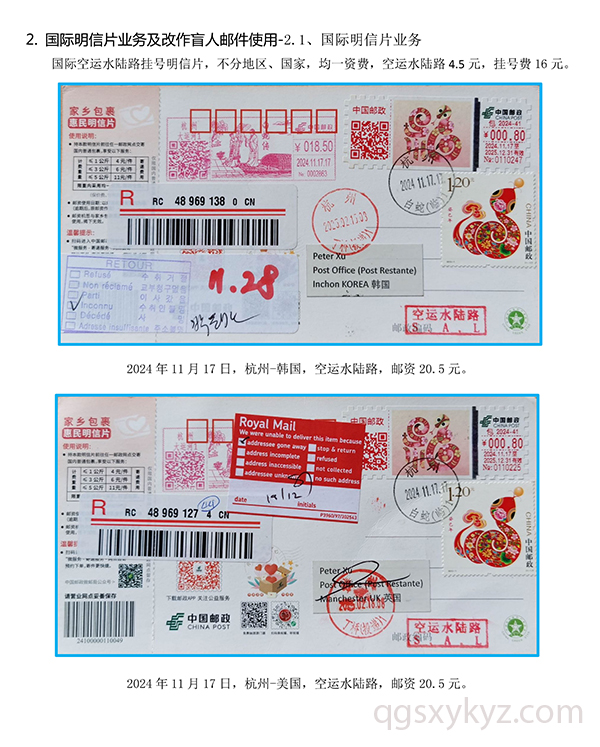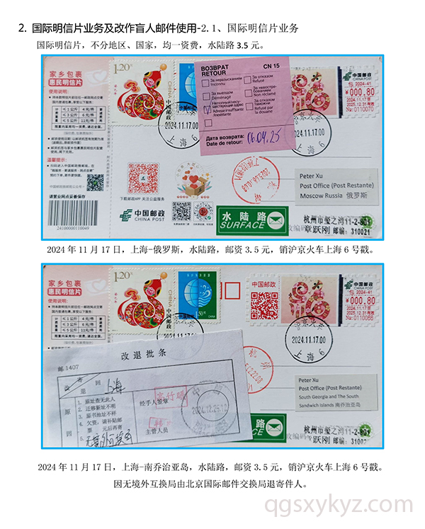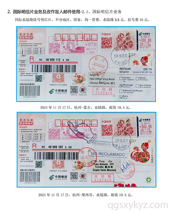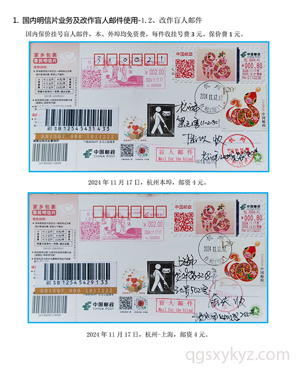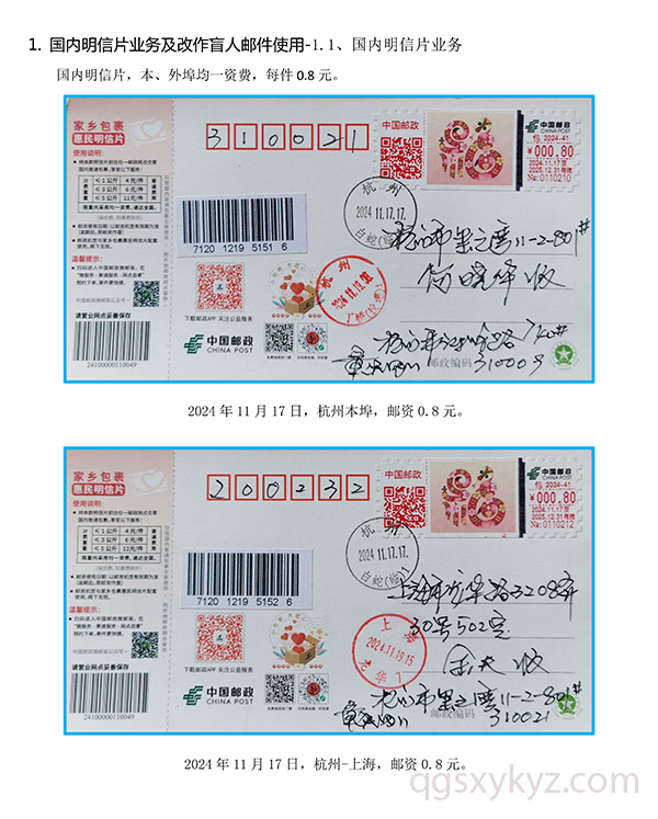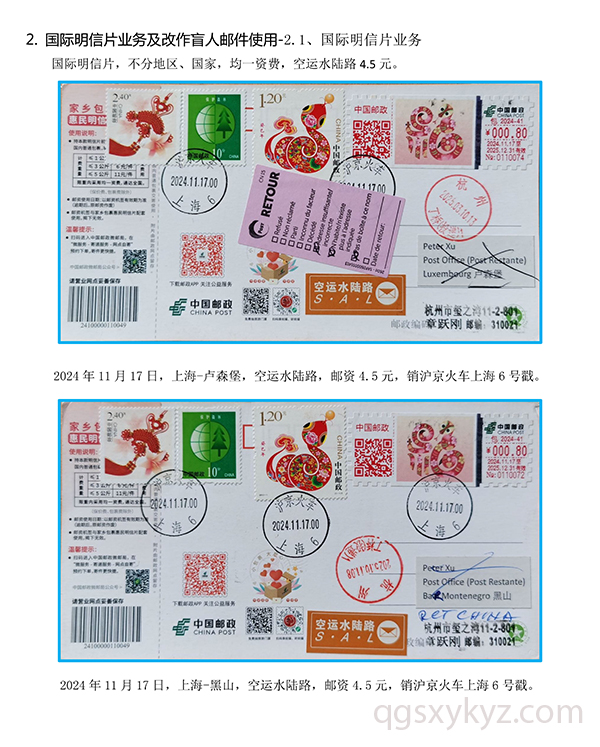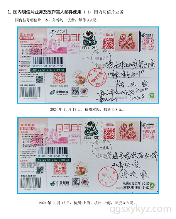 “灵蛇送福”家乡包裹惠民明信片的实际使用