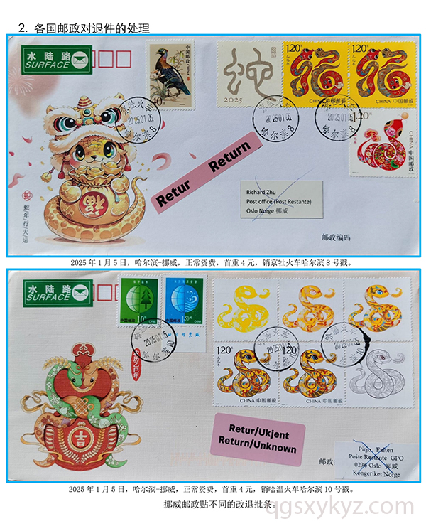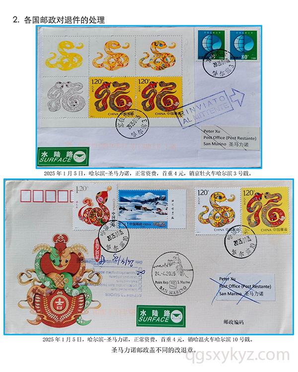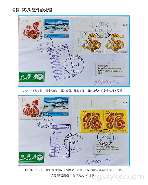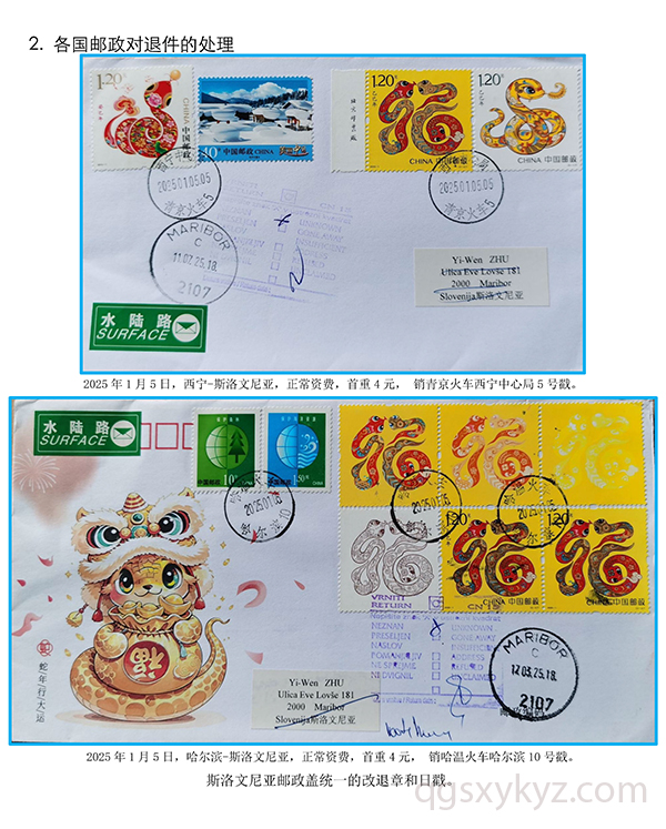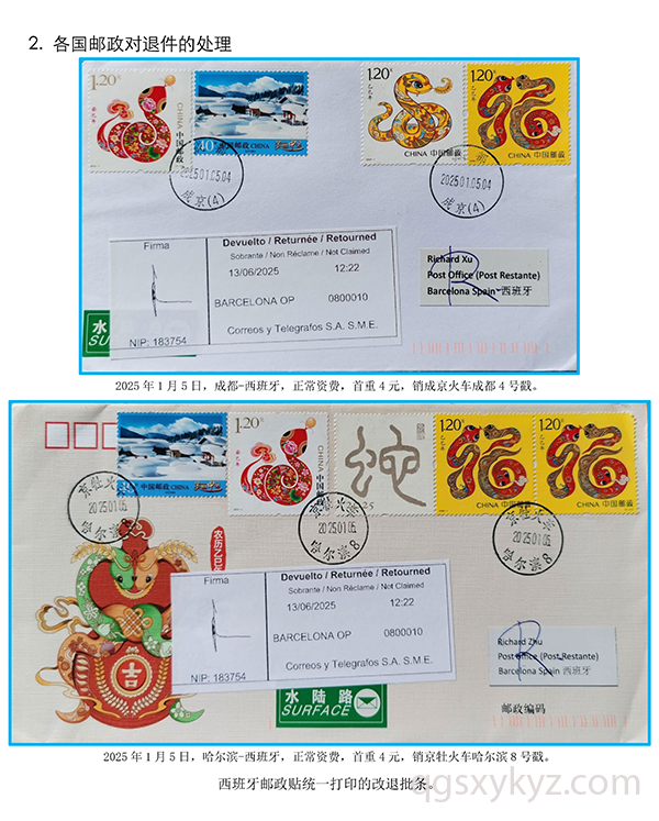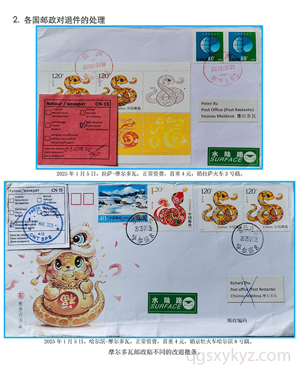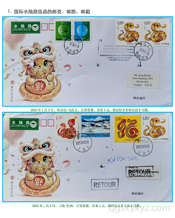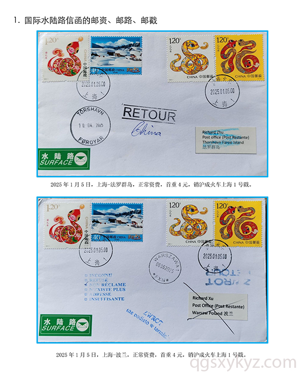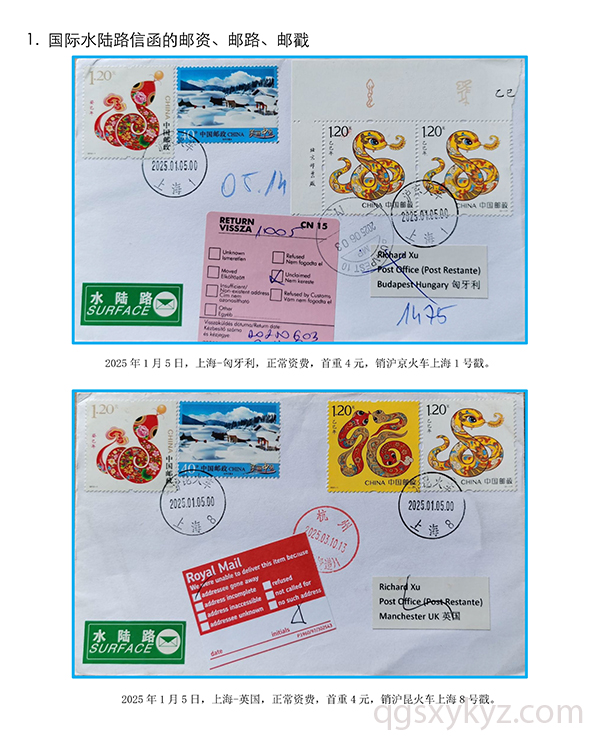 贴乙巳年邮票的国际水陆路退件研究
