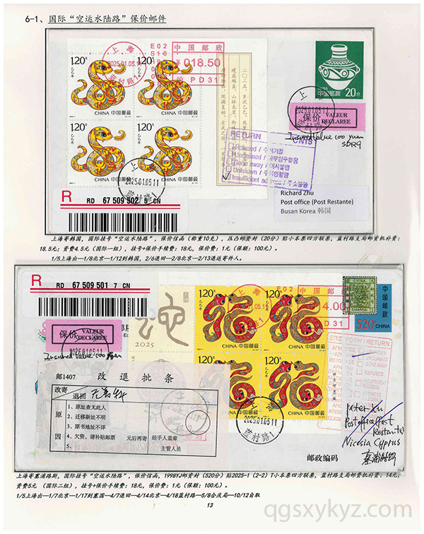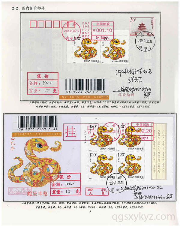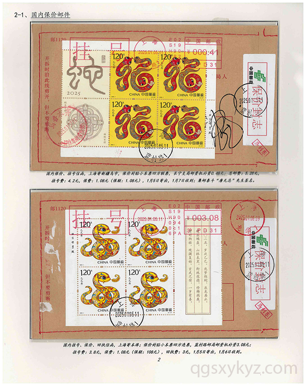 邮政保价业务与2025-1特种邮票“小本票”在发行首日中的应用